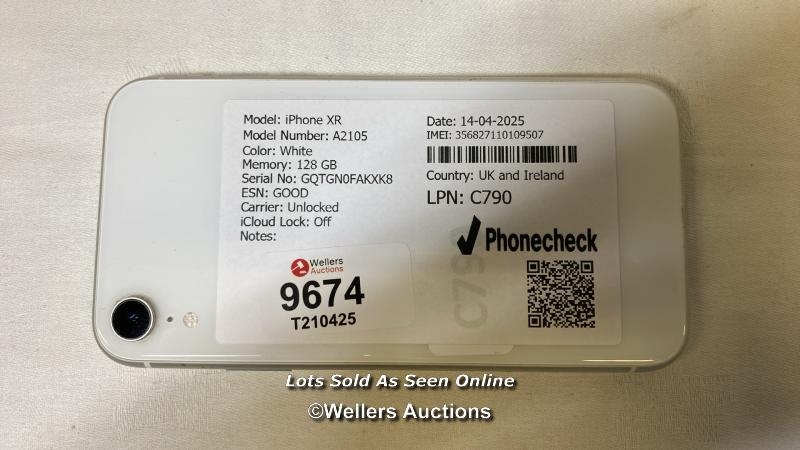 IPHONE XR/ A2105/ WHITE/128GB/ IMEI-356827110109507 (I-CLOUD...