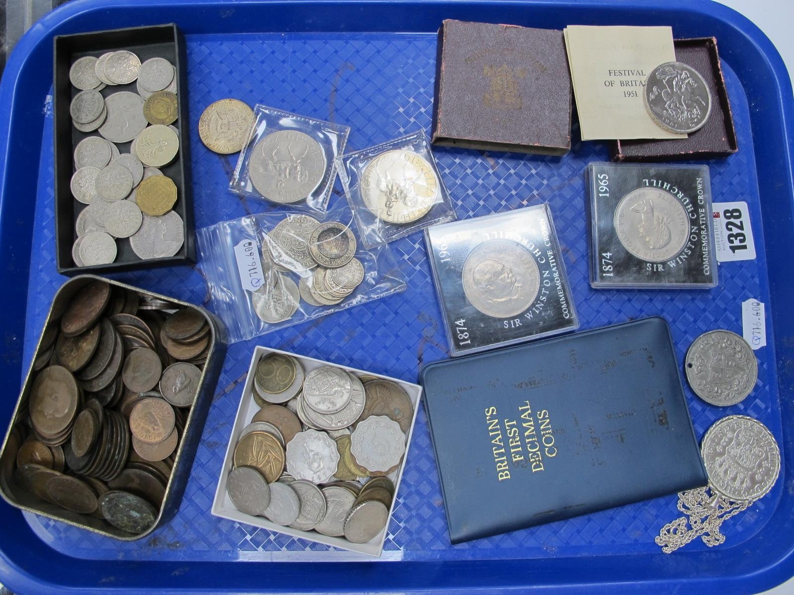 A Collection of GB and World Coins, includes 50g GB pre 1947 silver coins, 1968 Kennedy Silver half dollar, various World coinage, etc.