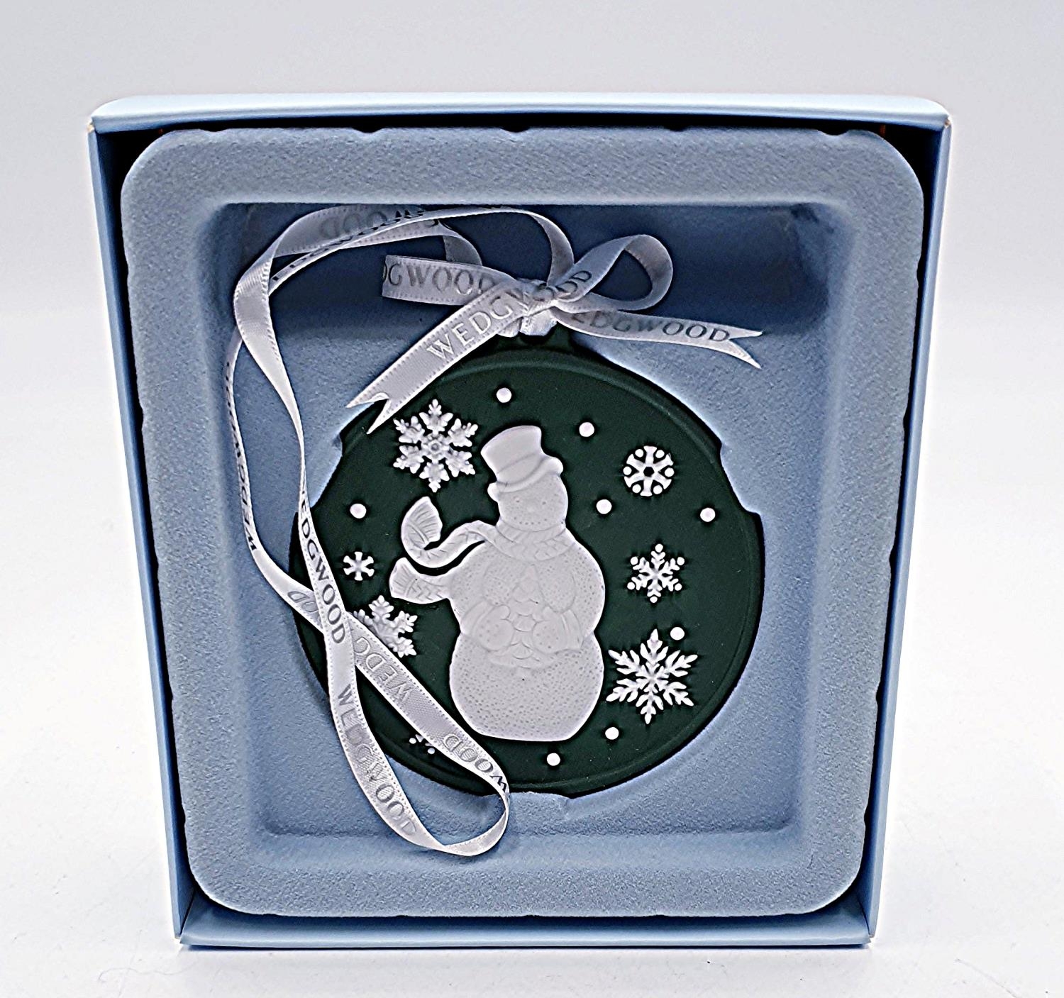 WEDGWOOD GREEN JASPER WARE SNOWMAN CHRISTMAS TREE DECORATION (Boxed)