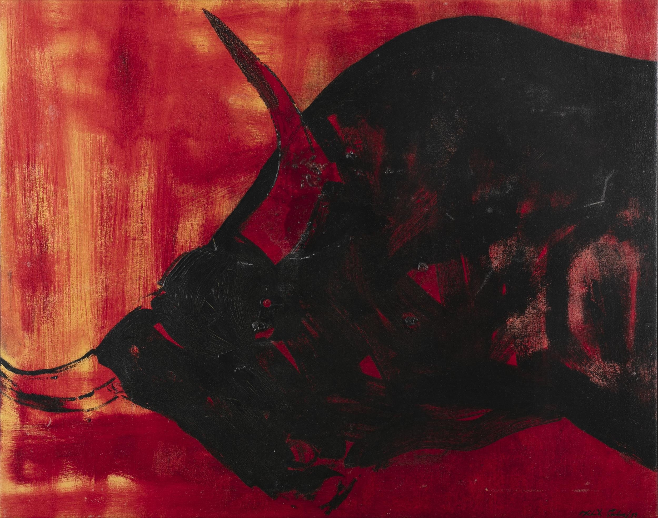 Michele Souter (b.1956) Bull Fight - Death Series Spirits Neutrality Oil on canvas, 73 x 91cm Signed and inscribed verso