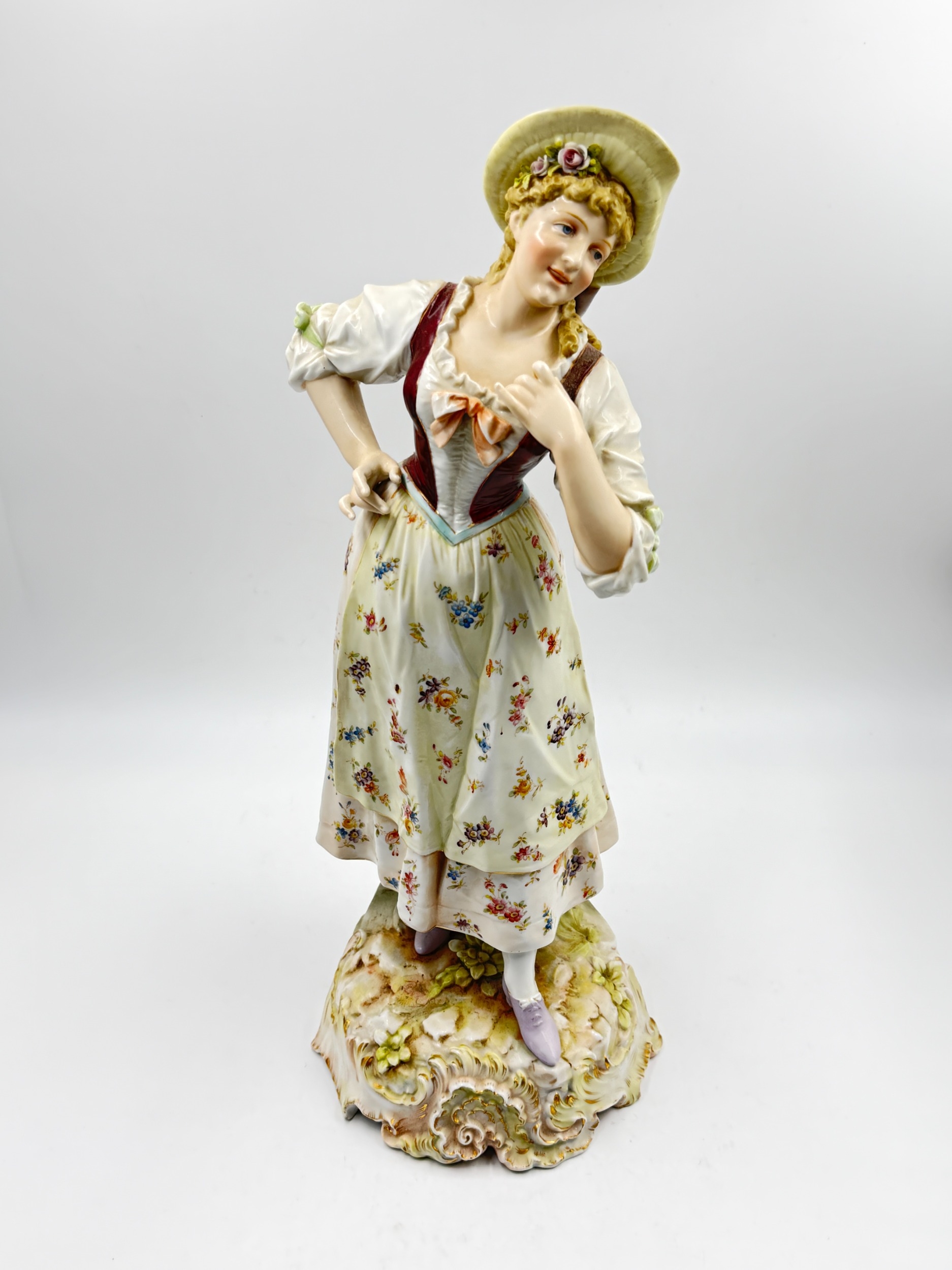 A 19th century Volkstedt-Rudolstadt hand painted porcelain figurine of a lady, numbered 5227 to base - approx. 41cm high