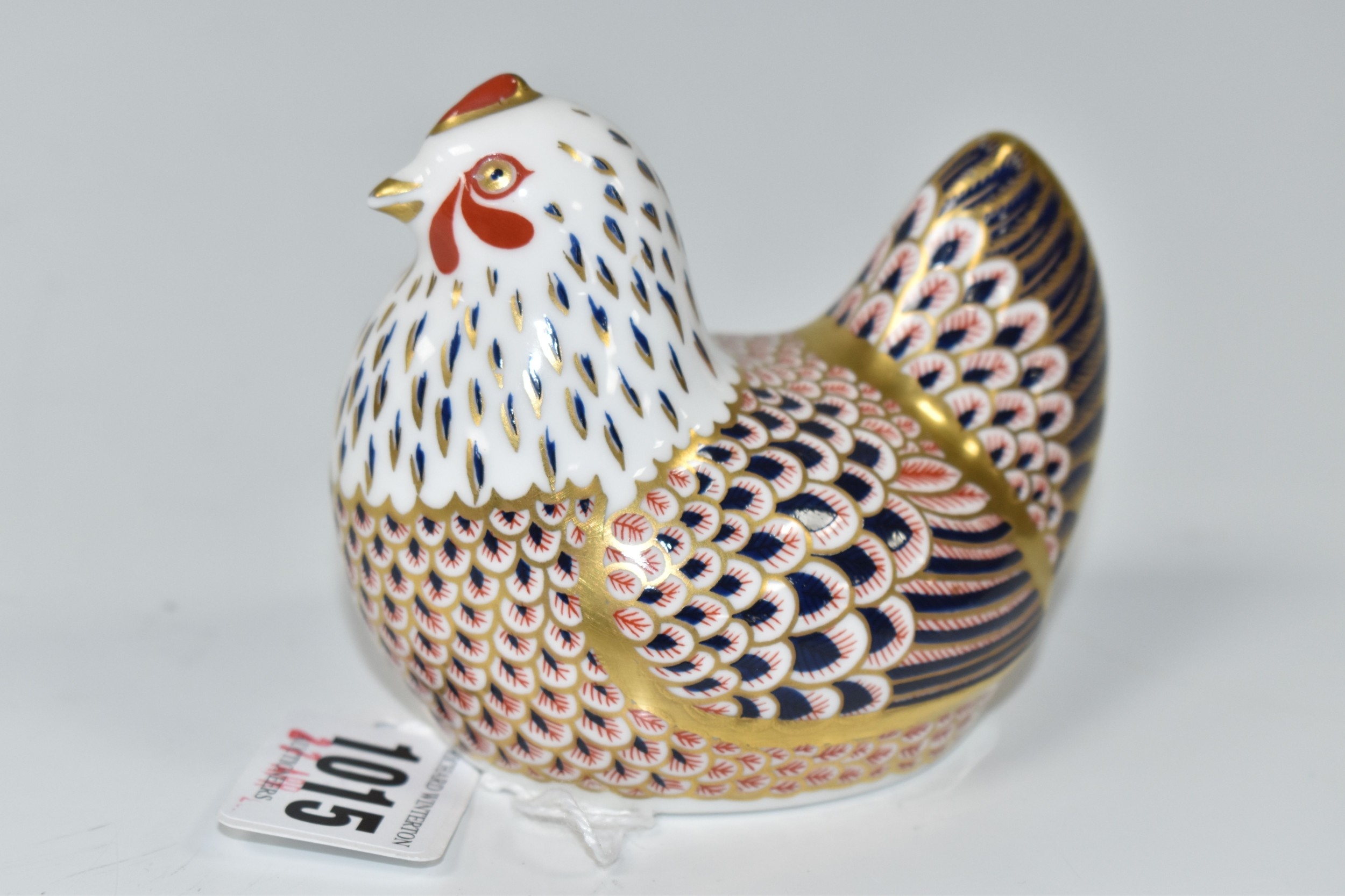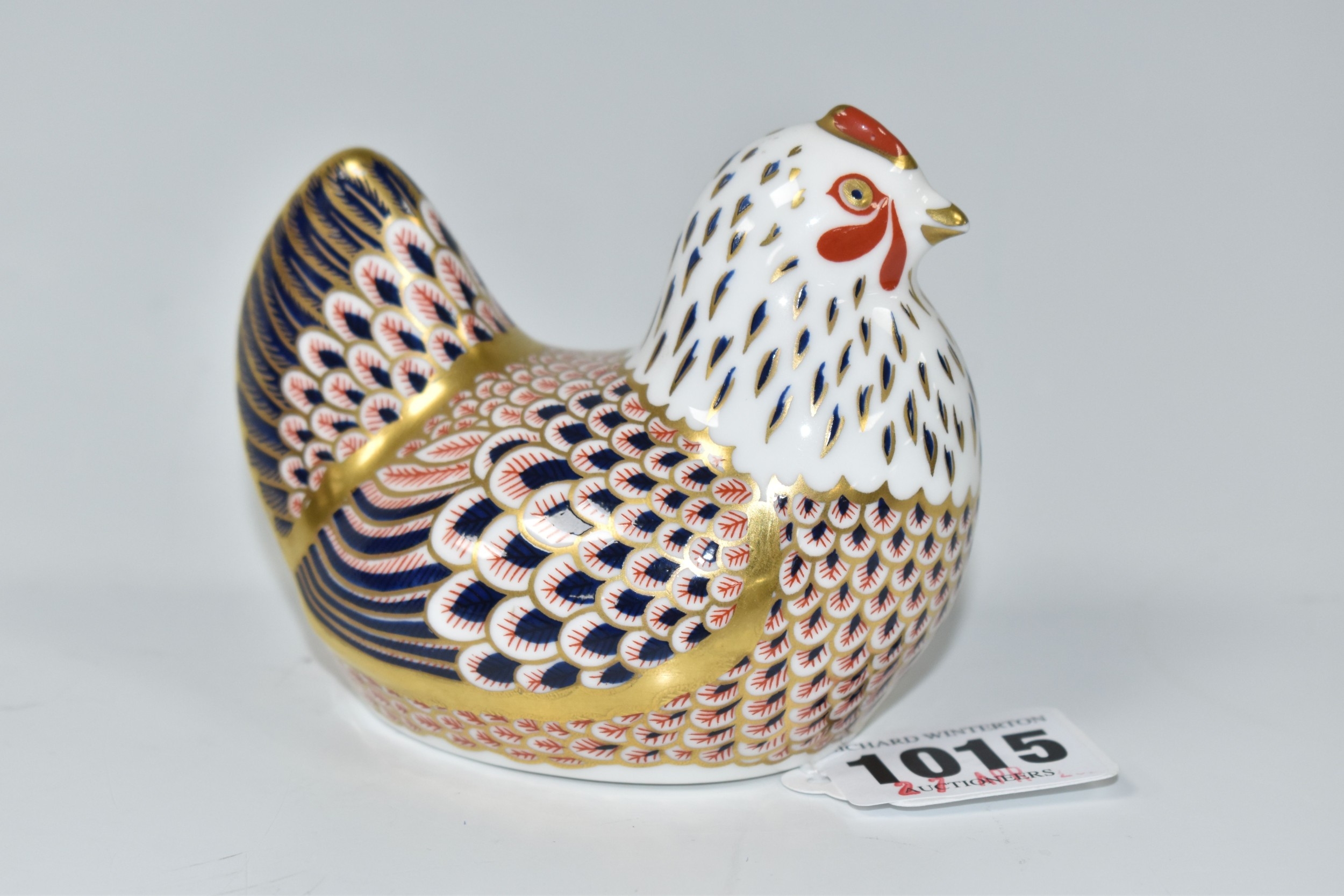 A ROYAL CROWN DERBY 'HEN' PAPERWEIGHT, bearing gold stopper, but this is a second quality piece with scratched through backstamp (1) (Condition Report: appears ok, some printing inconsistencies, tiny scratches, second quality)