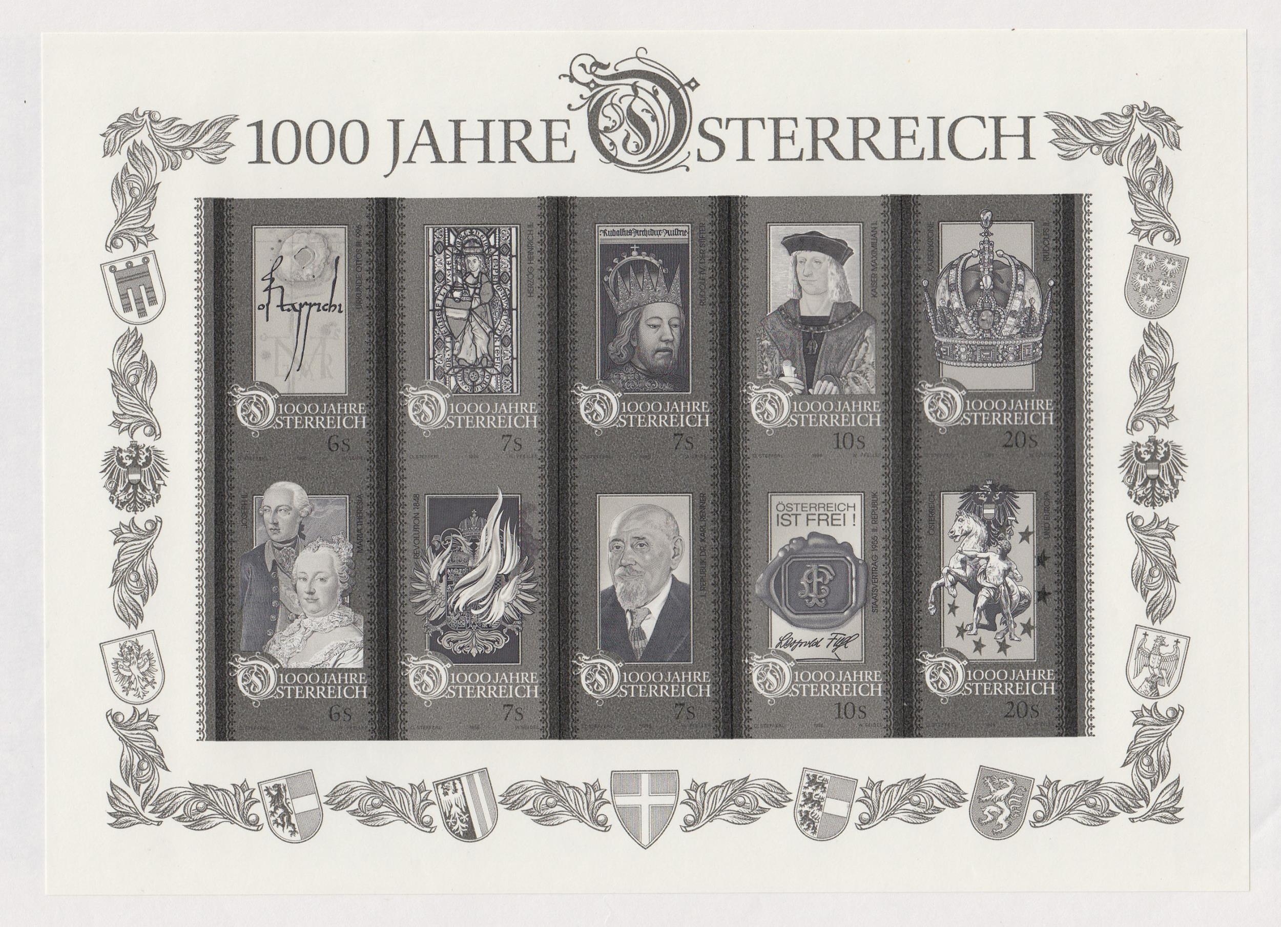 1996 1000th Anniversary sheet used and black stamp sheet, in presentation folder