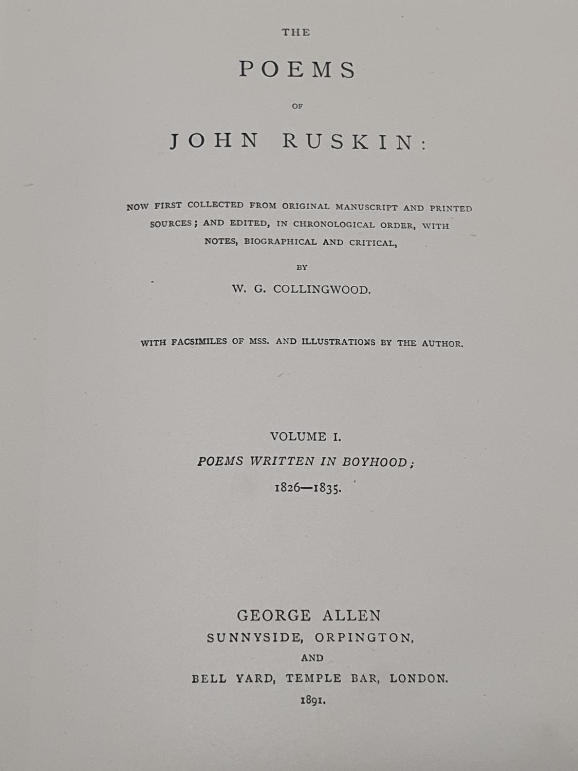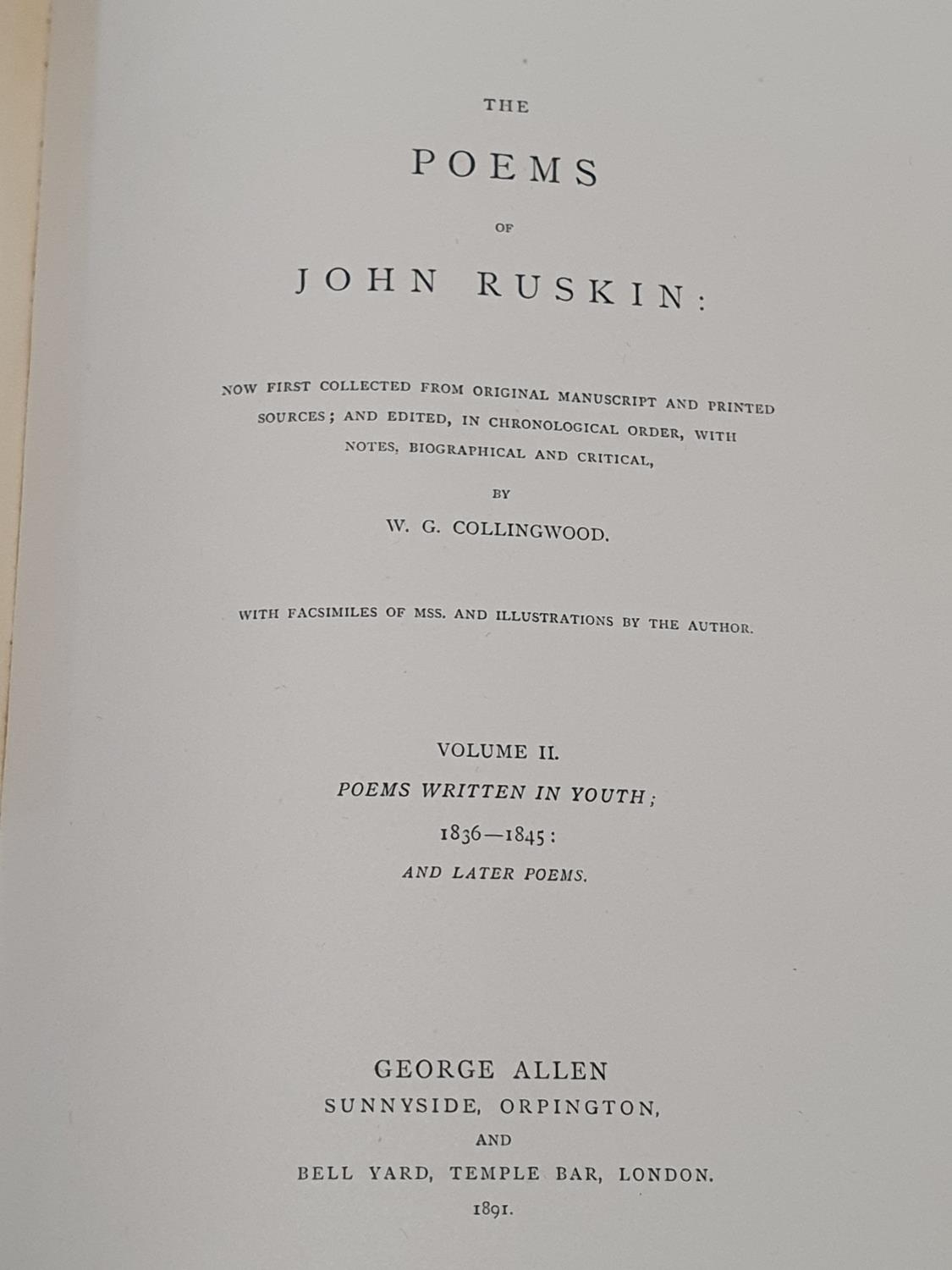 Two volumes 'The Poems of John Ruskin' published in 1891 with illustrations