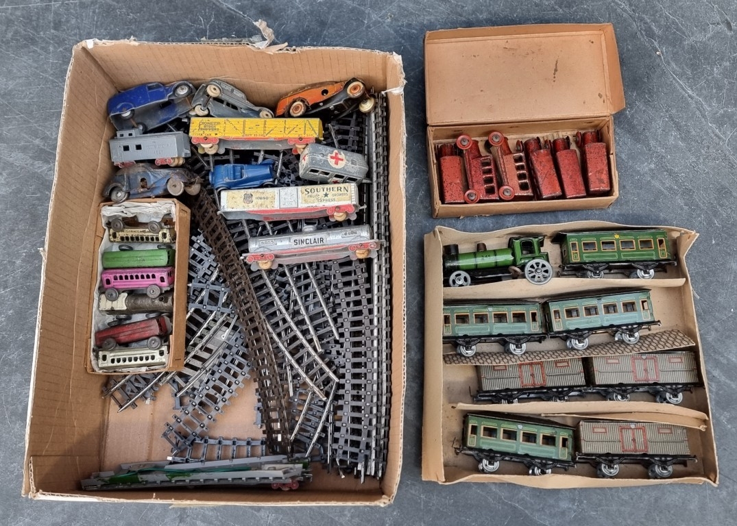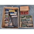 A collection of N-Gauge and other items, to include: locos; carriages; track and other vehicles.