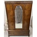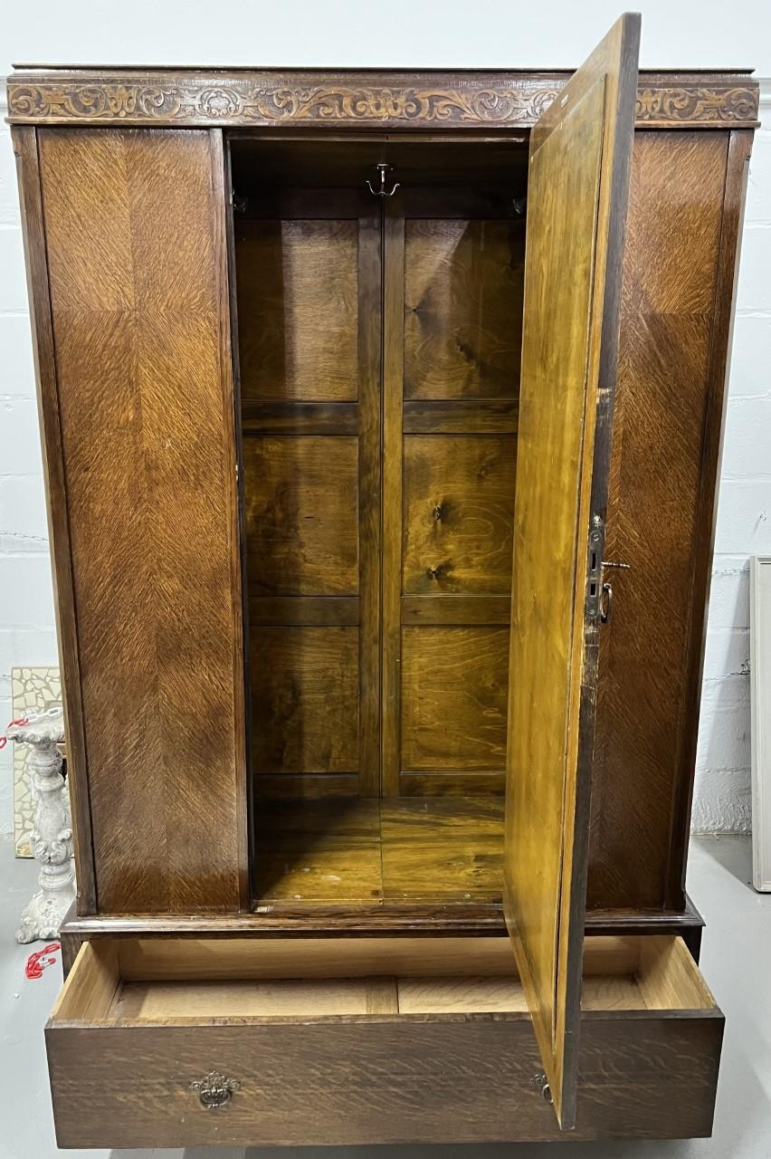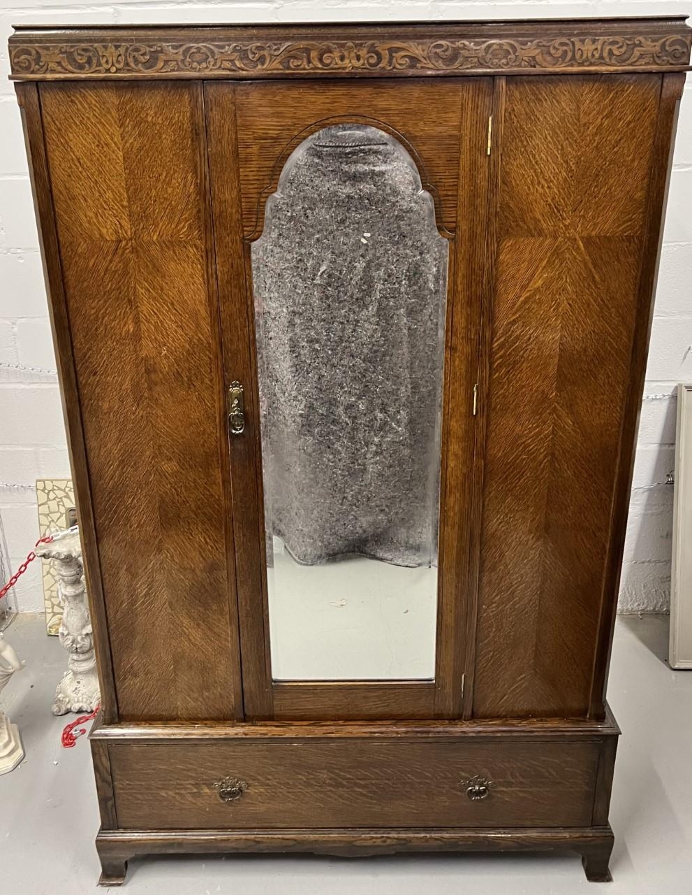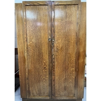A vintage, oak double wardrobe. Internal clothes rail, and mirrored door. Dimensions(cm) H193, W122, D49.