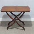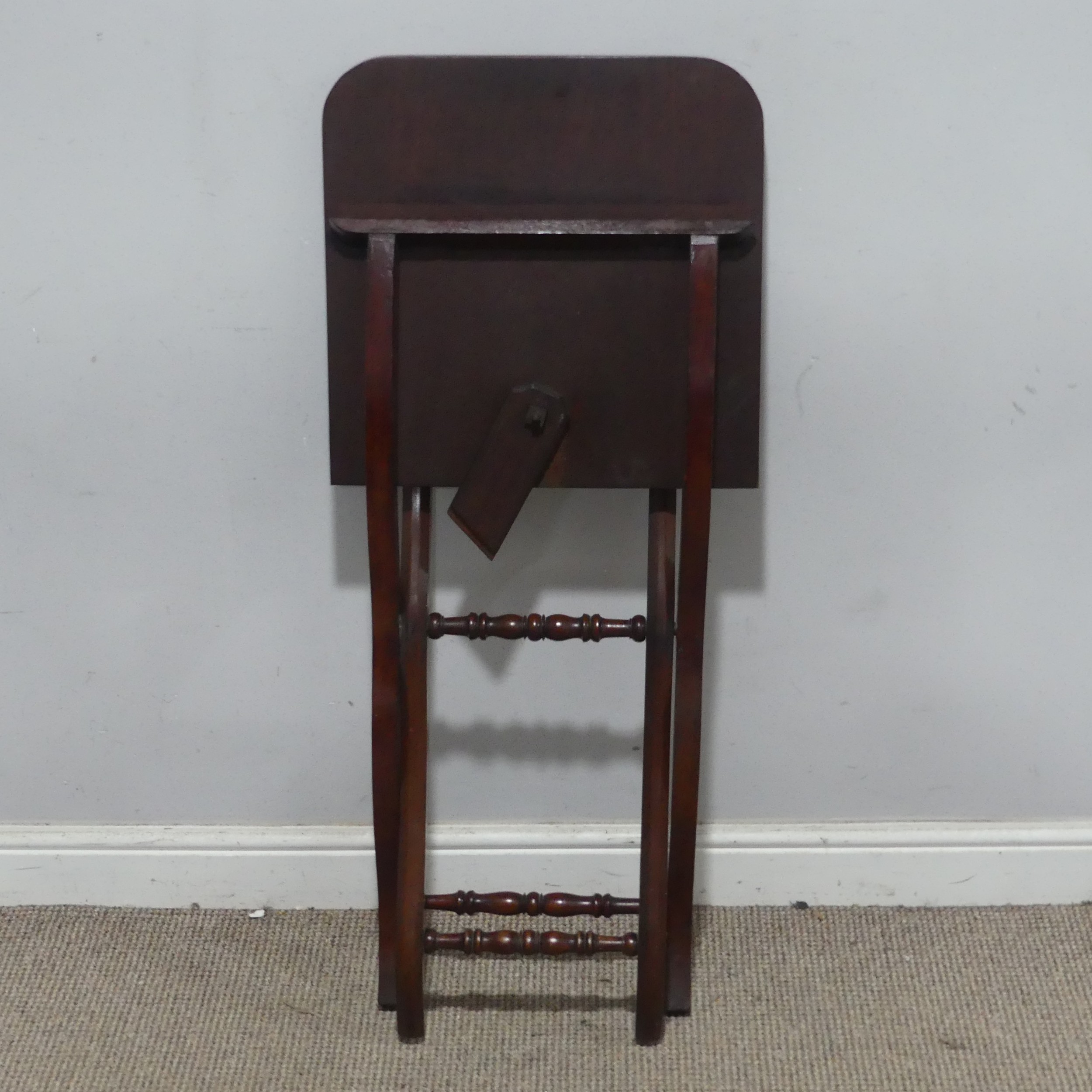 A Victorian mahogany coaching Table, the folding ‘X’ shaped stand joined by turned stretchers, W 86 cm x H 70 cm x D 43 cm.