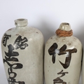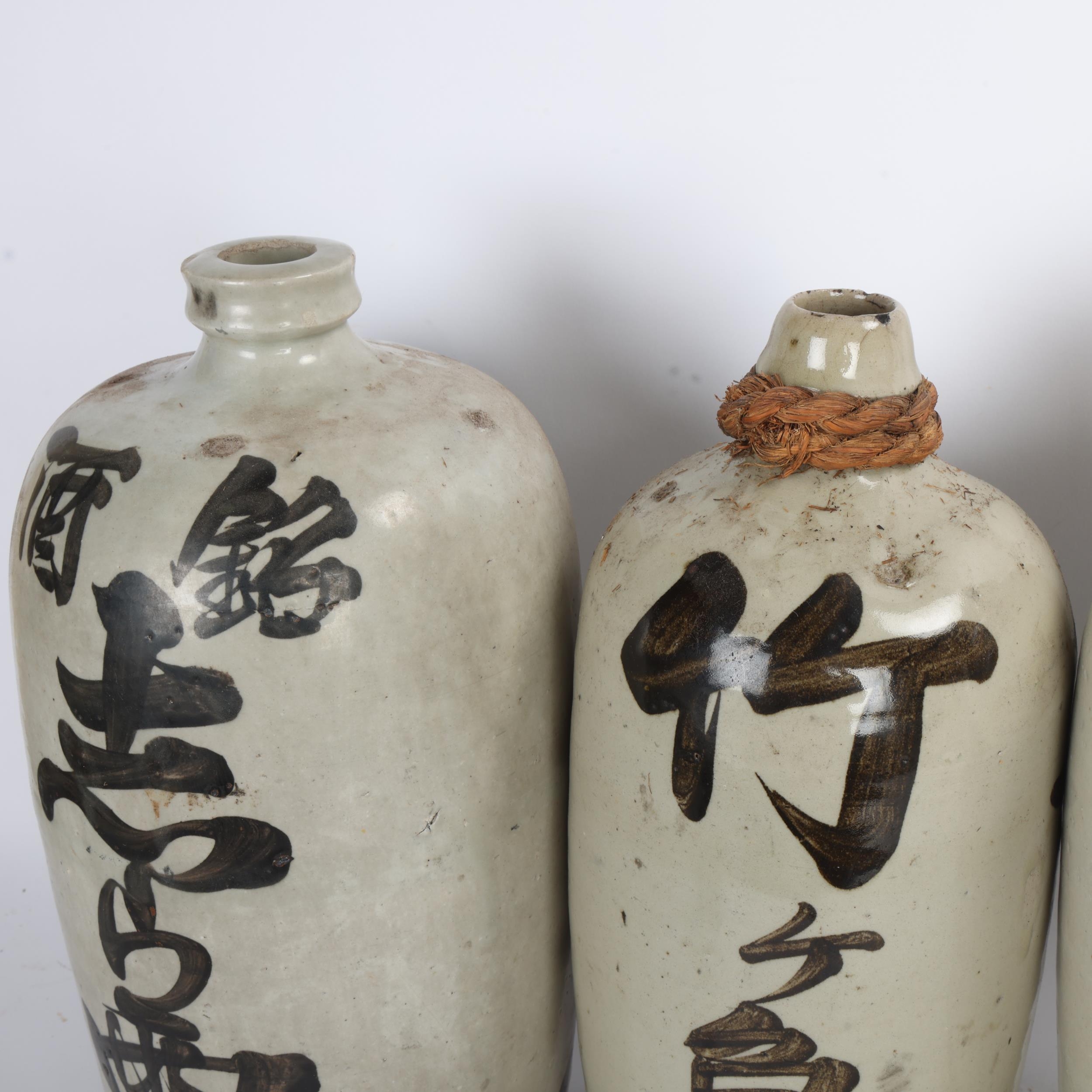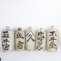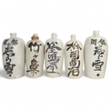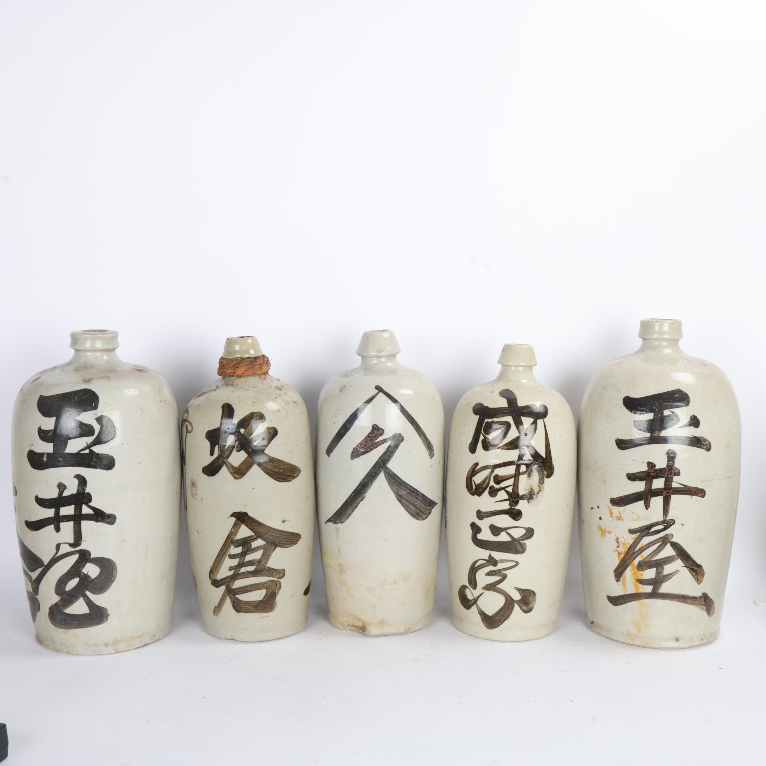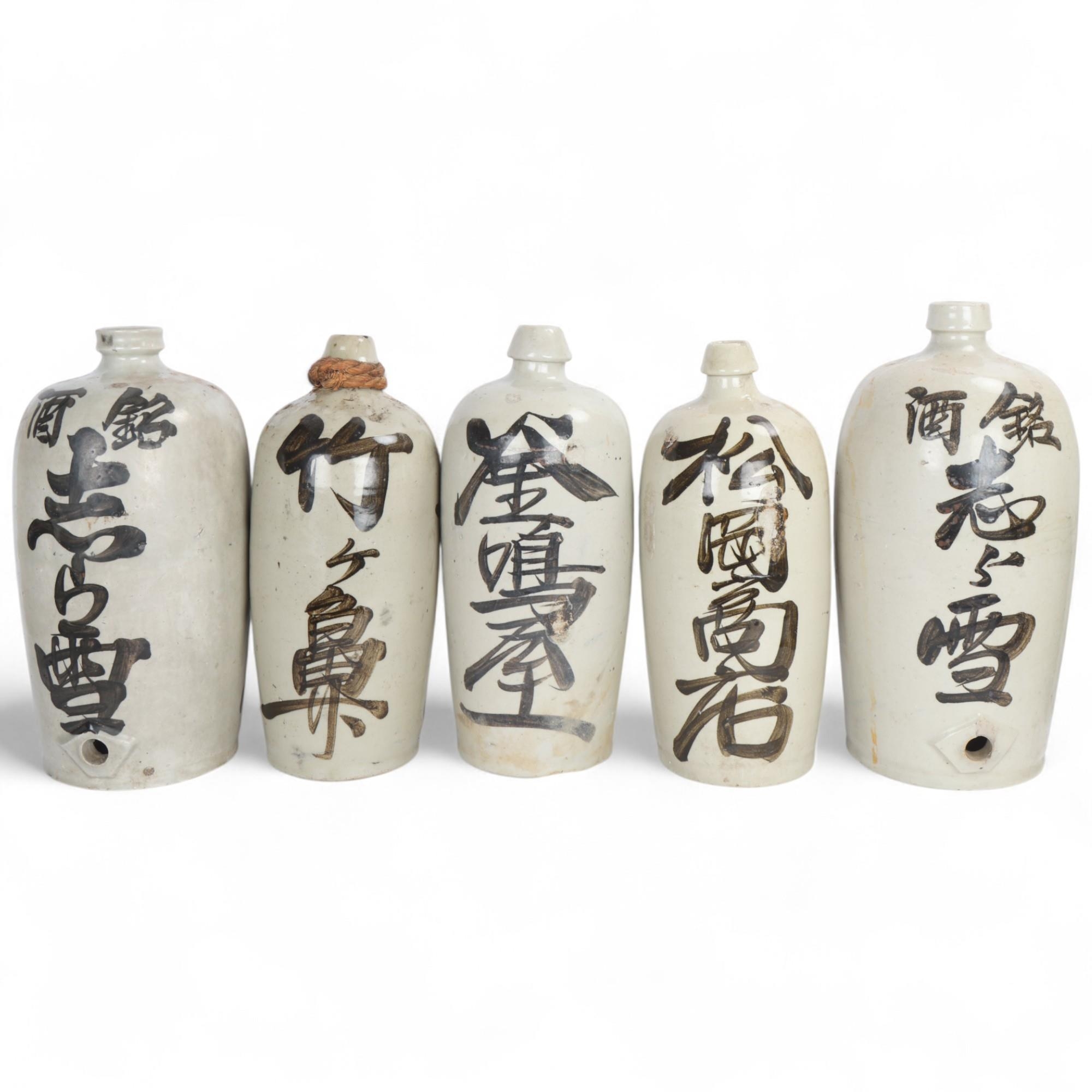 5 similar Japanese glazed pottery Sake flasks, with text inscriptions, tallest height 38cm (5)