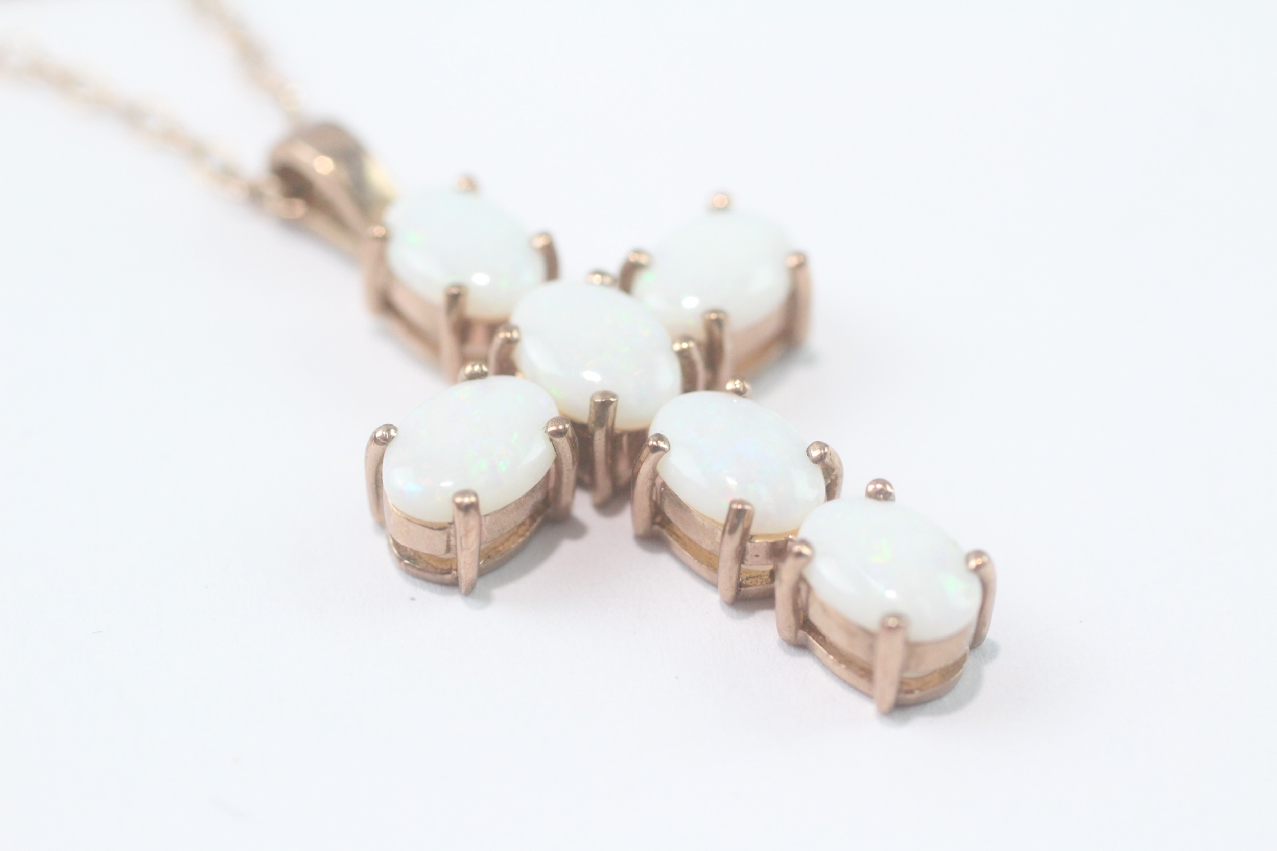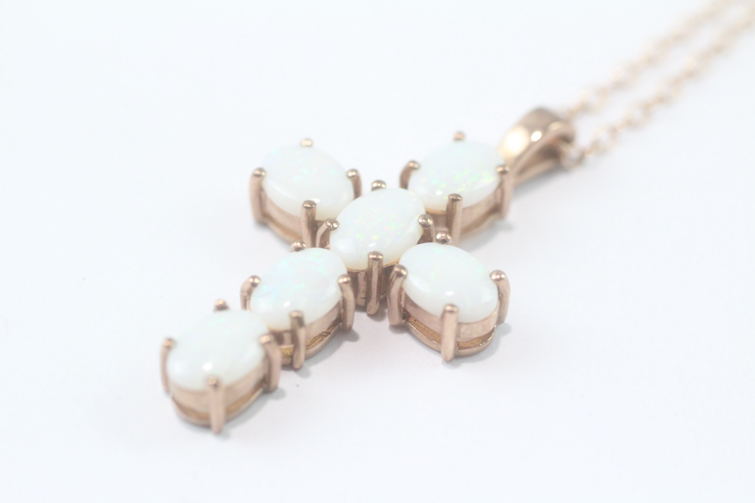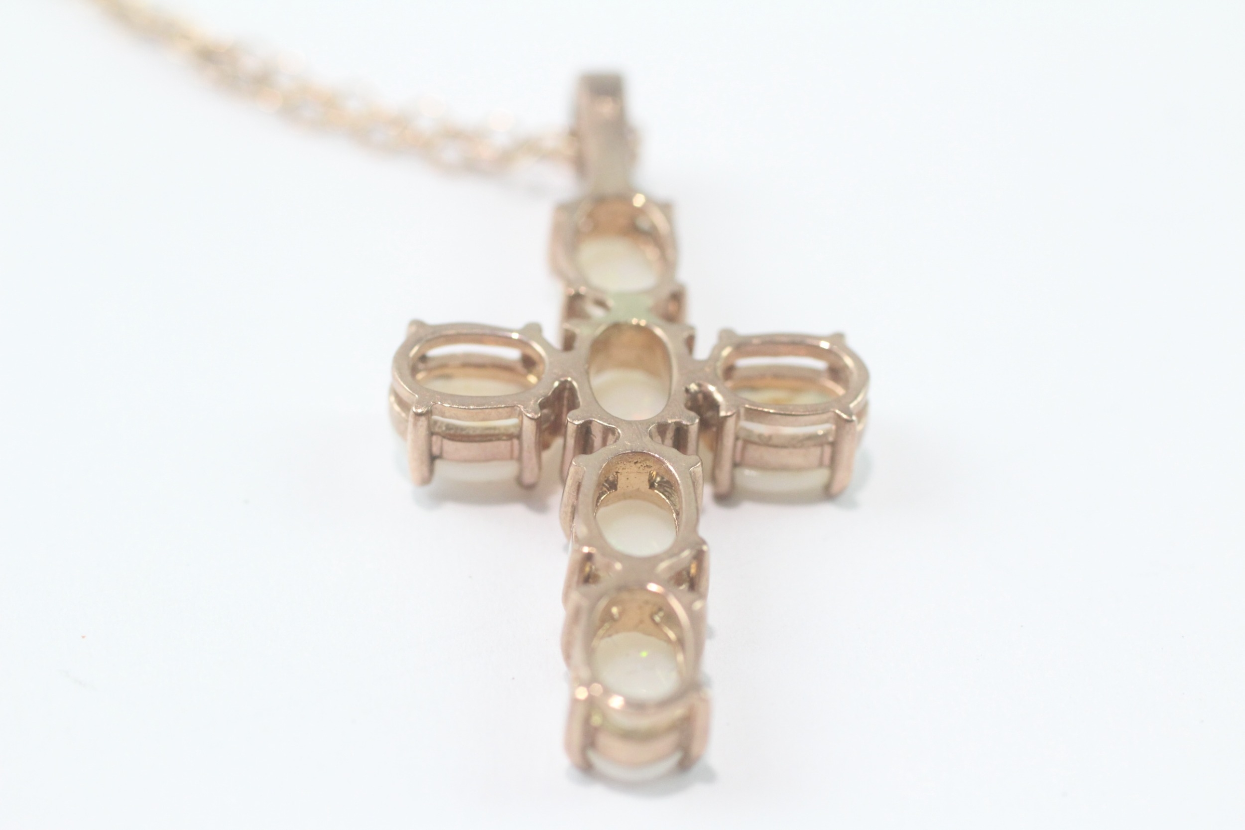 9ct gold opal cross pendant necklace (5.3g)