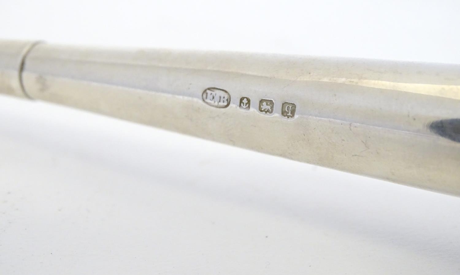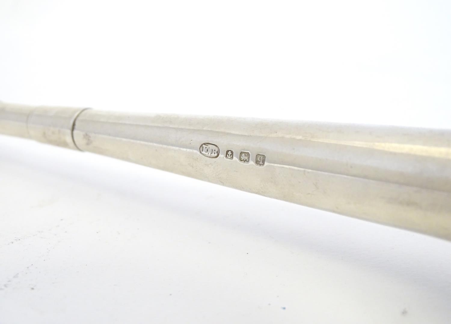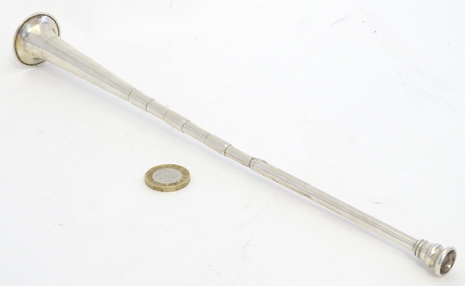 A silver hunting horn formed candlesnuffer. Hallmarked Birmingham 1915 maker E Baker & Son. Approx 11 1/2" long