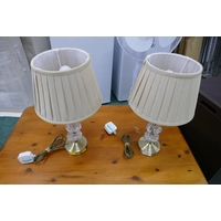 The lamps have areas of small pinpricks, dirt and glaze imperfections. The base of one is particularly grubby and on both the metal areas are particularly rusty.