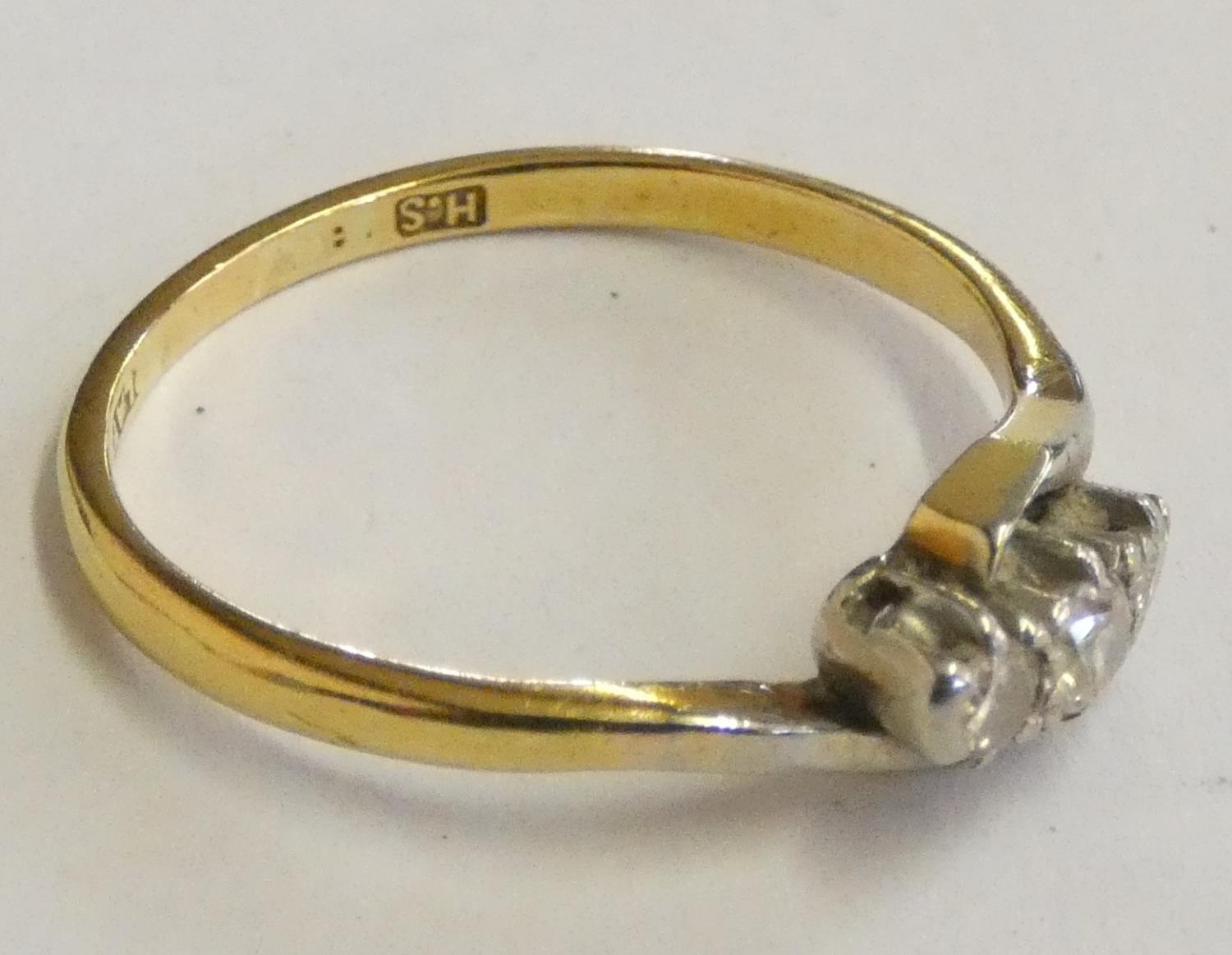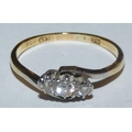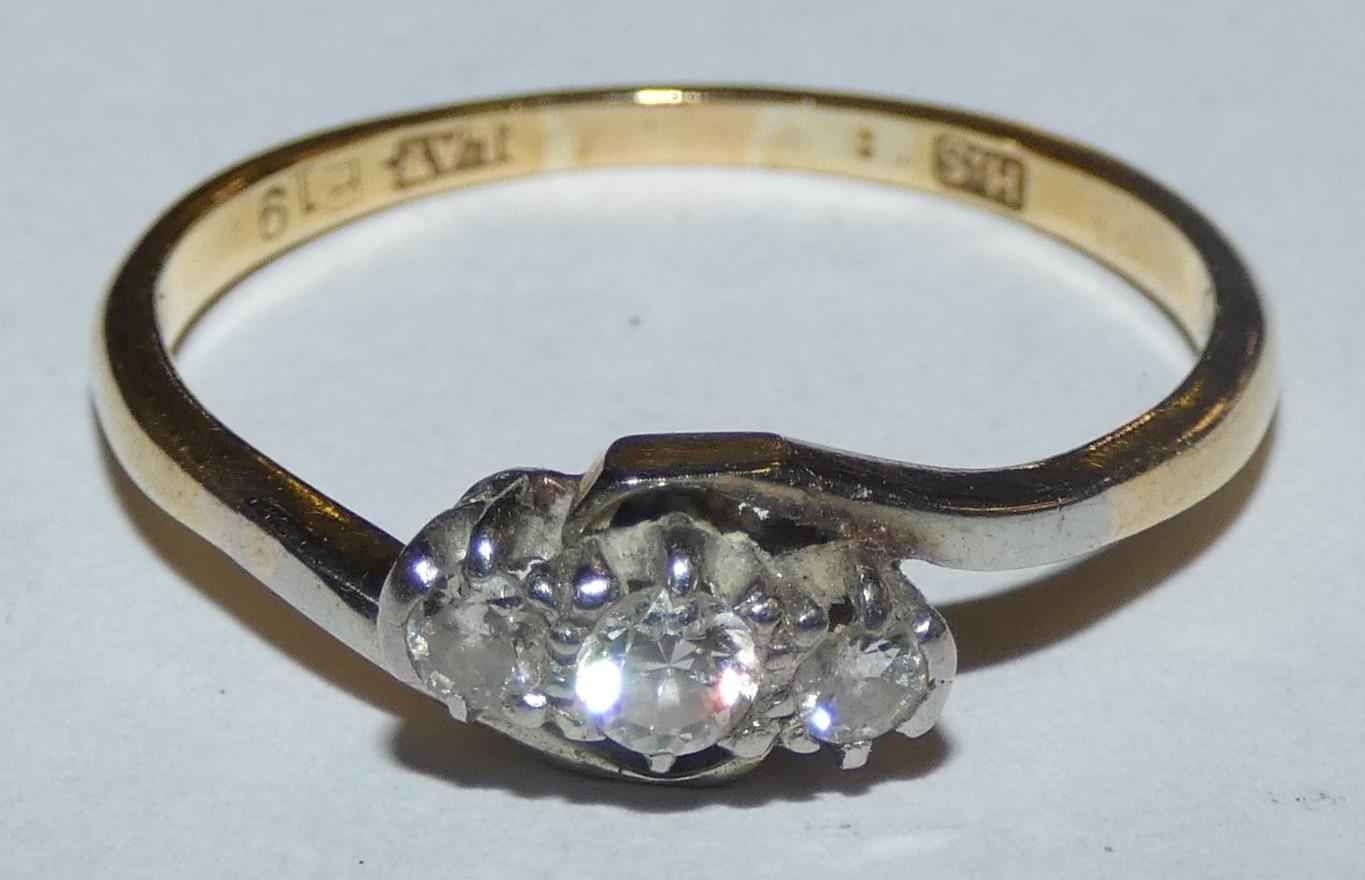 An 18ct gold three stone diamond ring, approximately 0.20cts, weight 2.7gms, size P1/2
