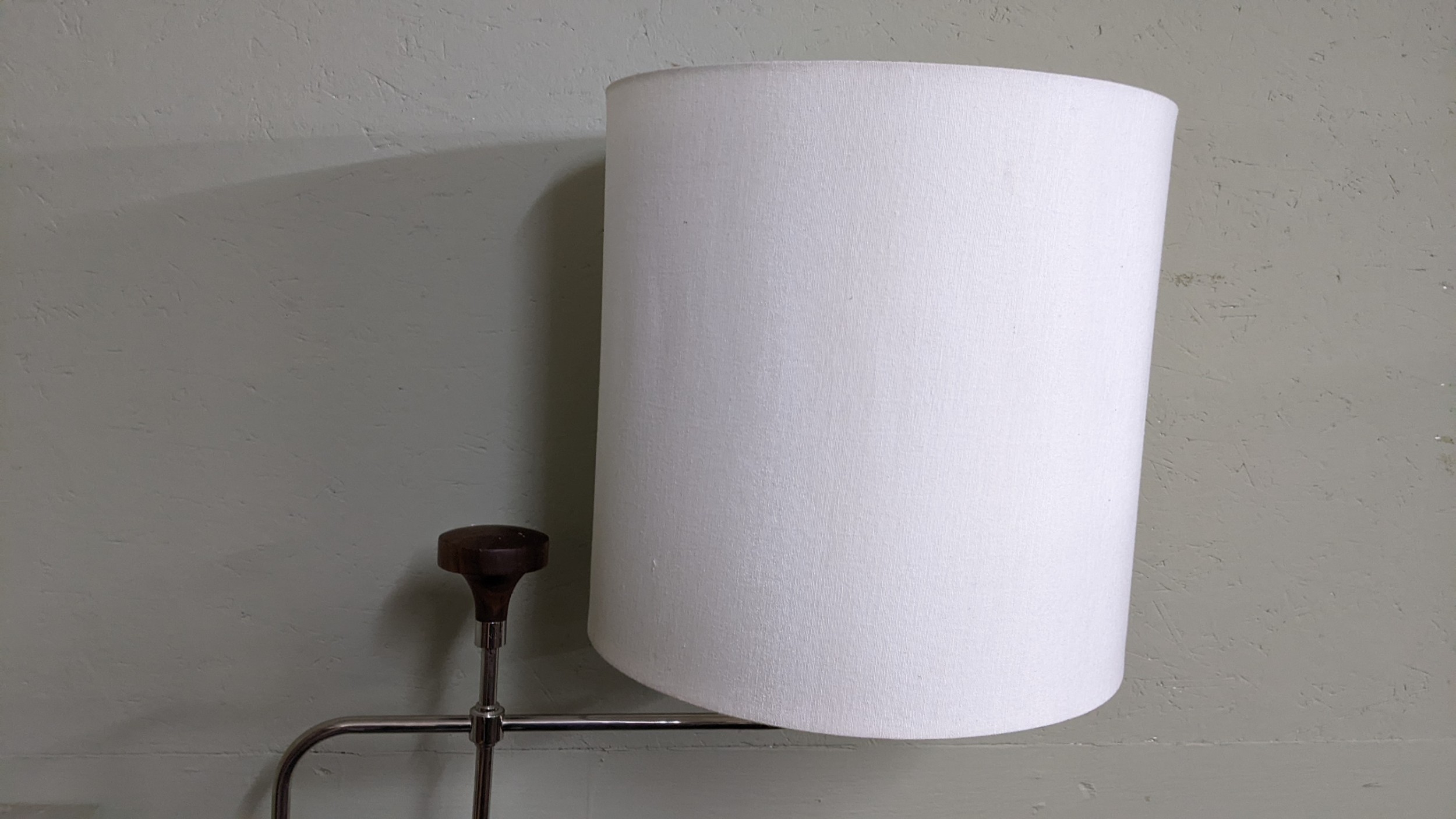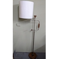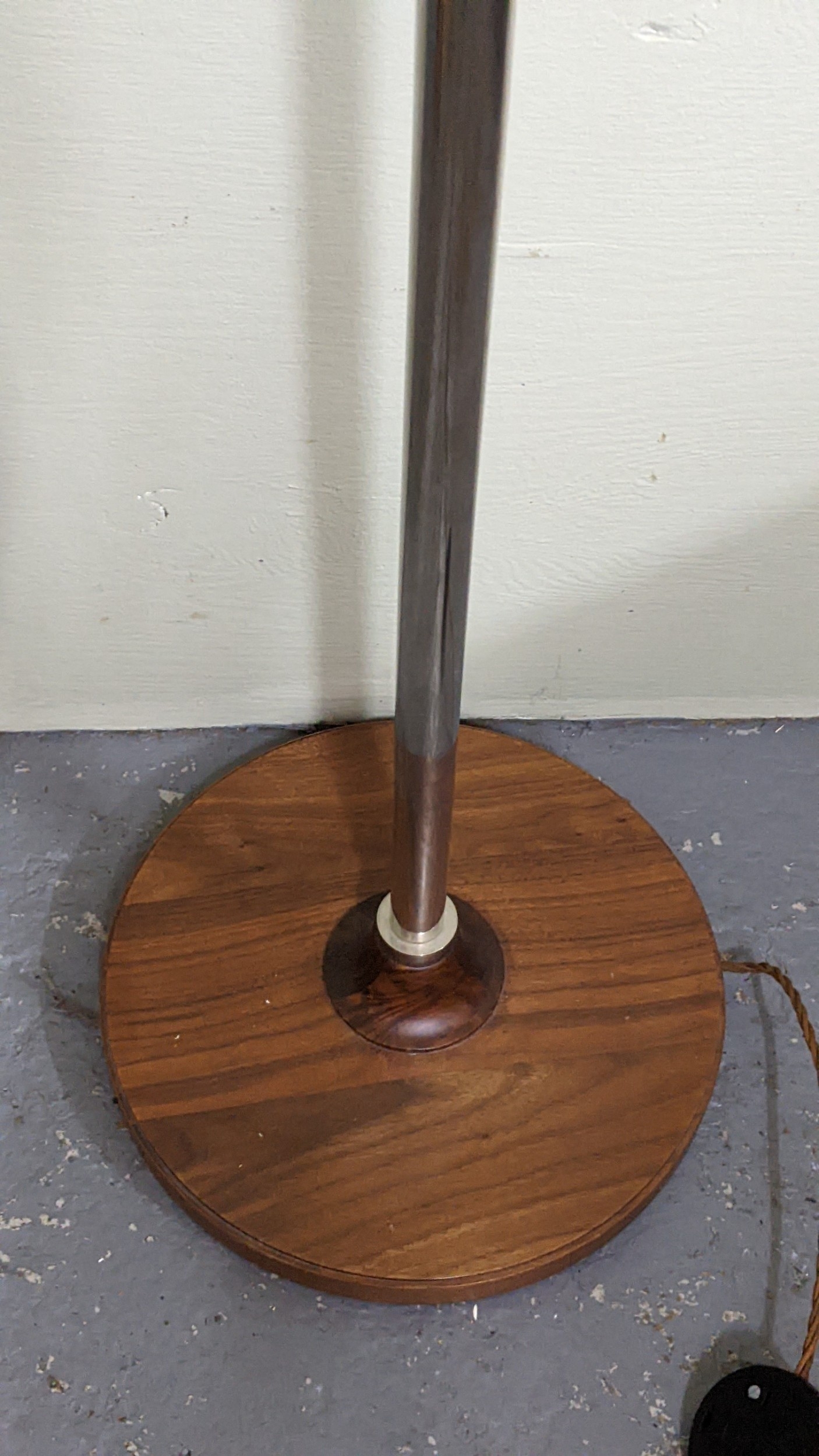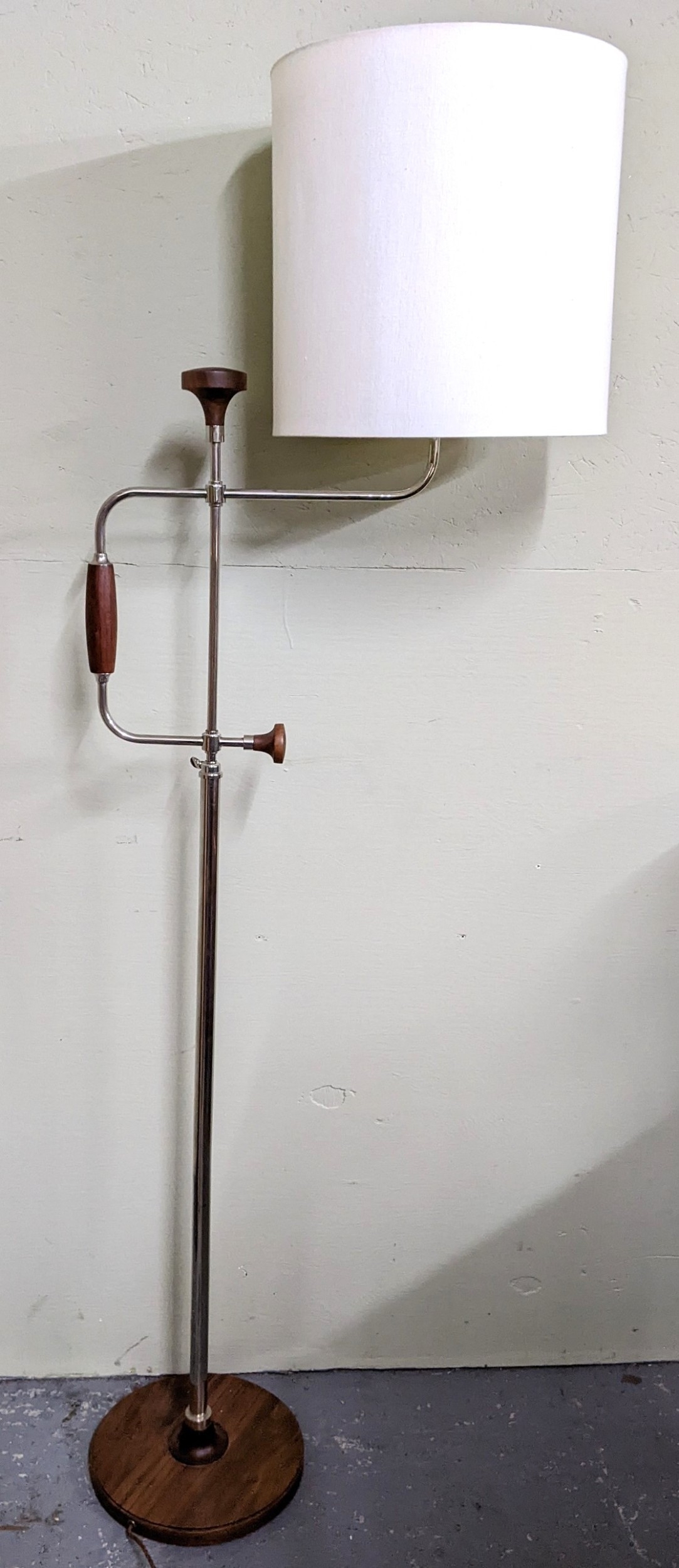A mid 20th century David Linley telescopic and adjustable 'Brace' floor lamp, chrome and walnut, with makers badge under the base, 175cm high including shade