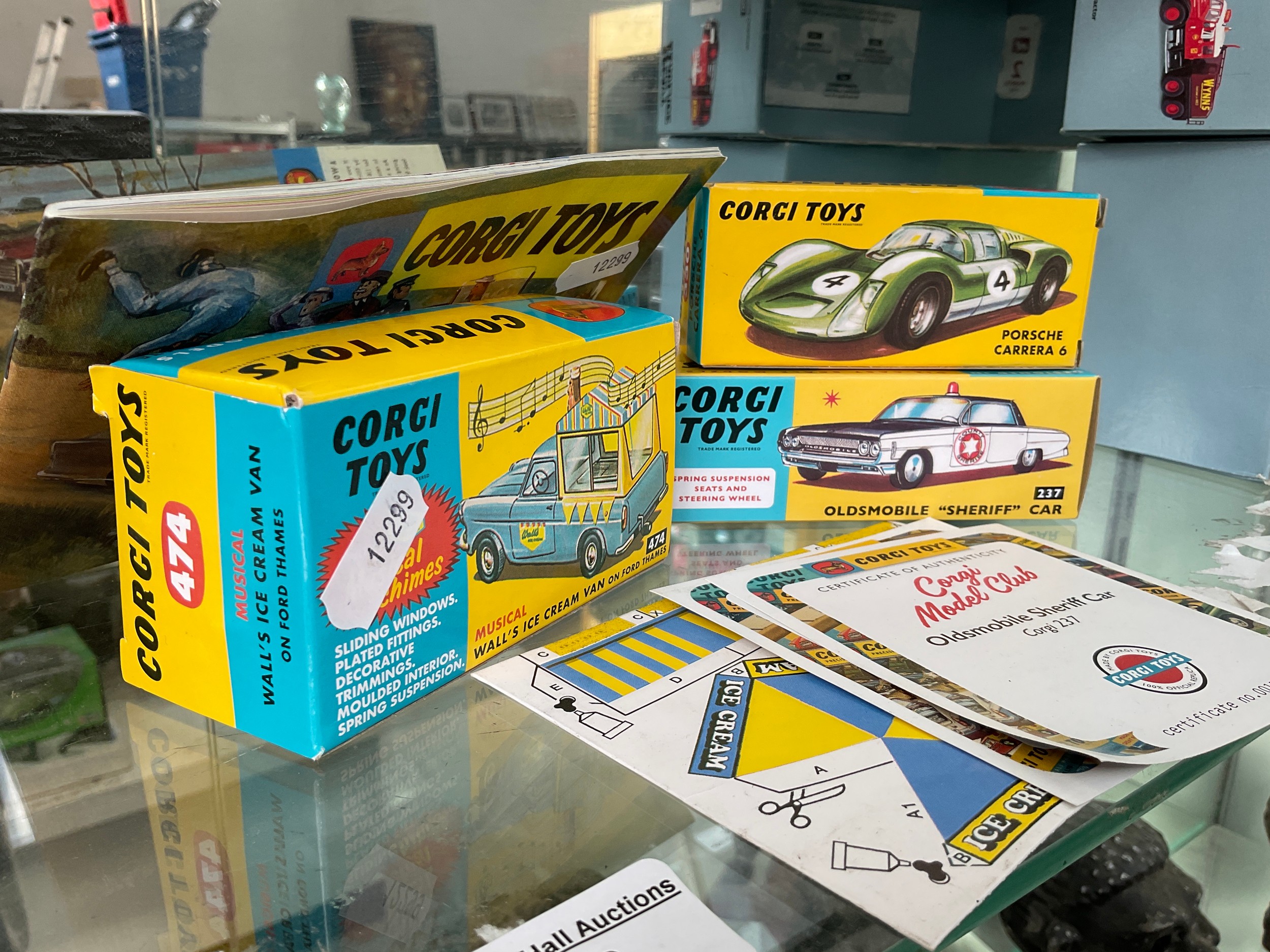 Three Corgi models and Corgi Toys book