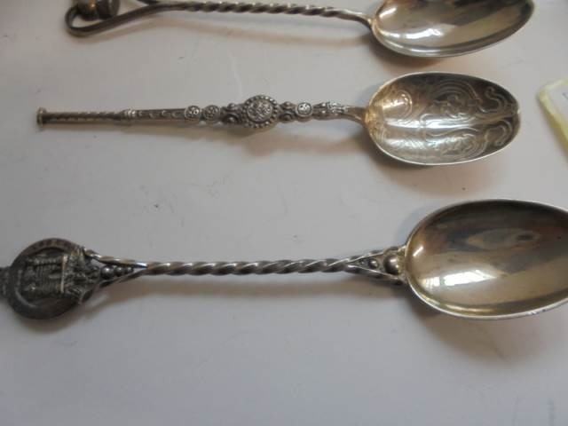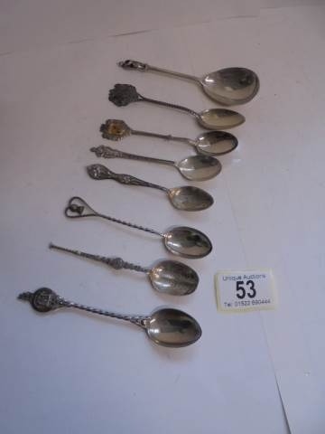 Seven silver spoons including souvenir examples, and 1 silve...