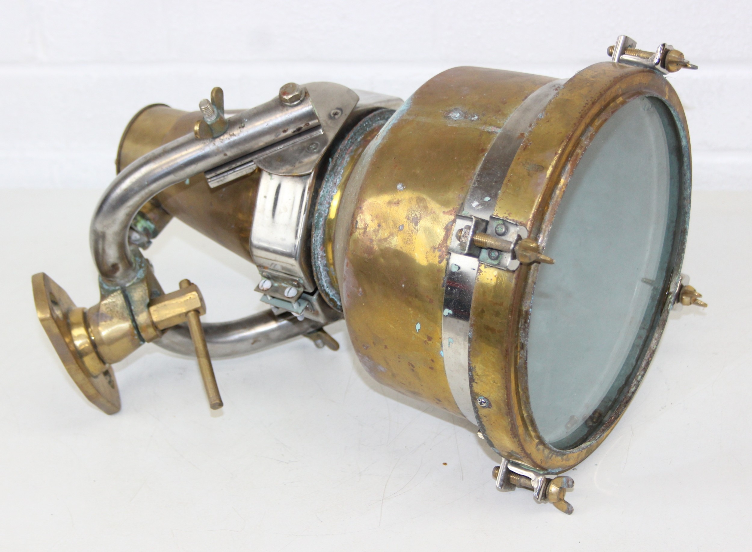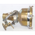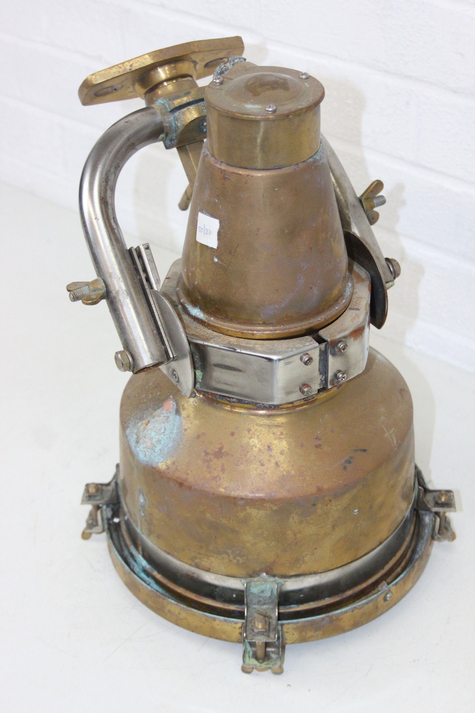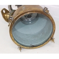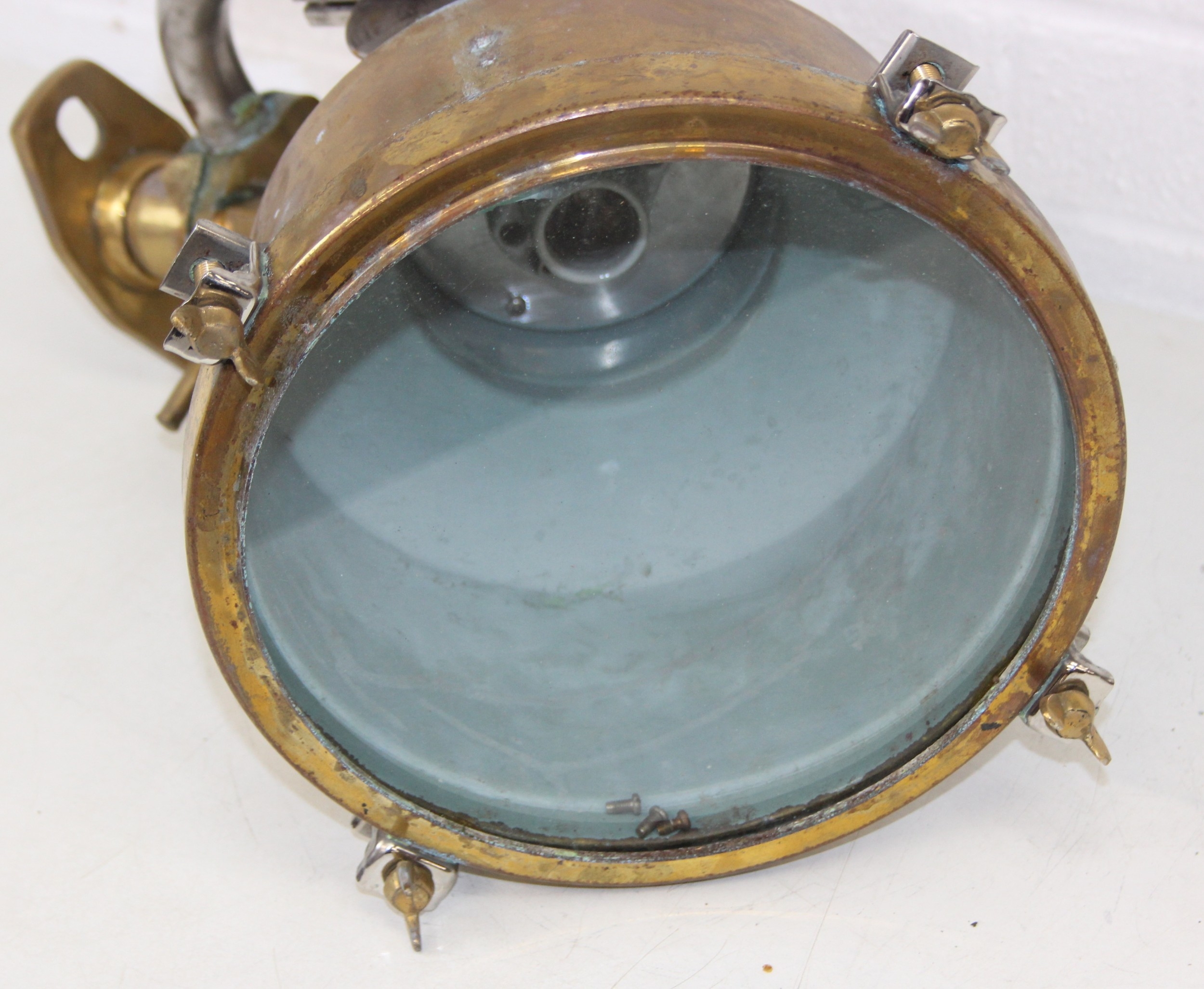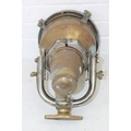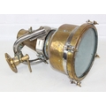 Marine lamps - brass lamp with four wingnut fastenings to lens, swing bracket, diameter 25cm x depth 40cm excluding bracket