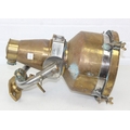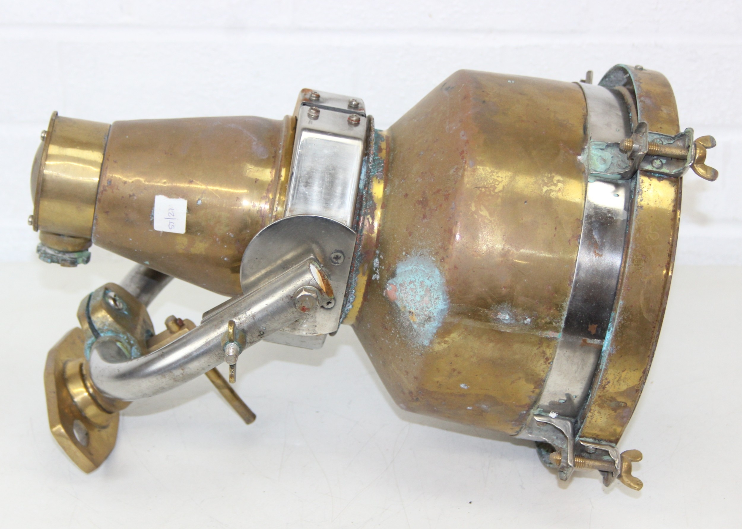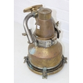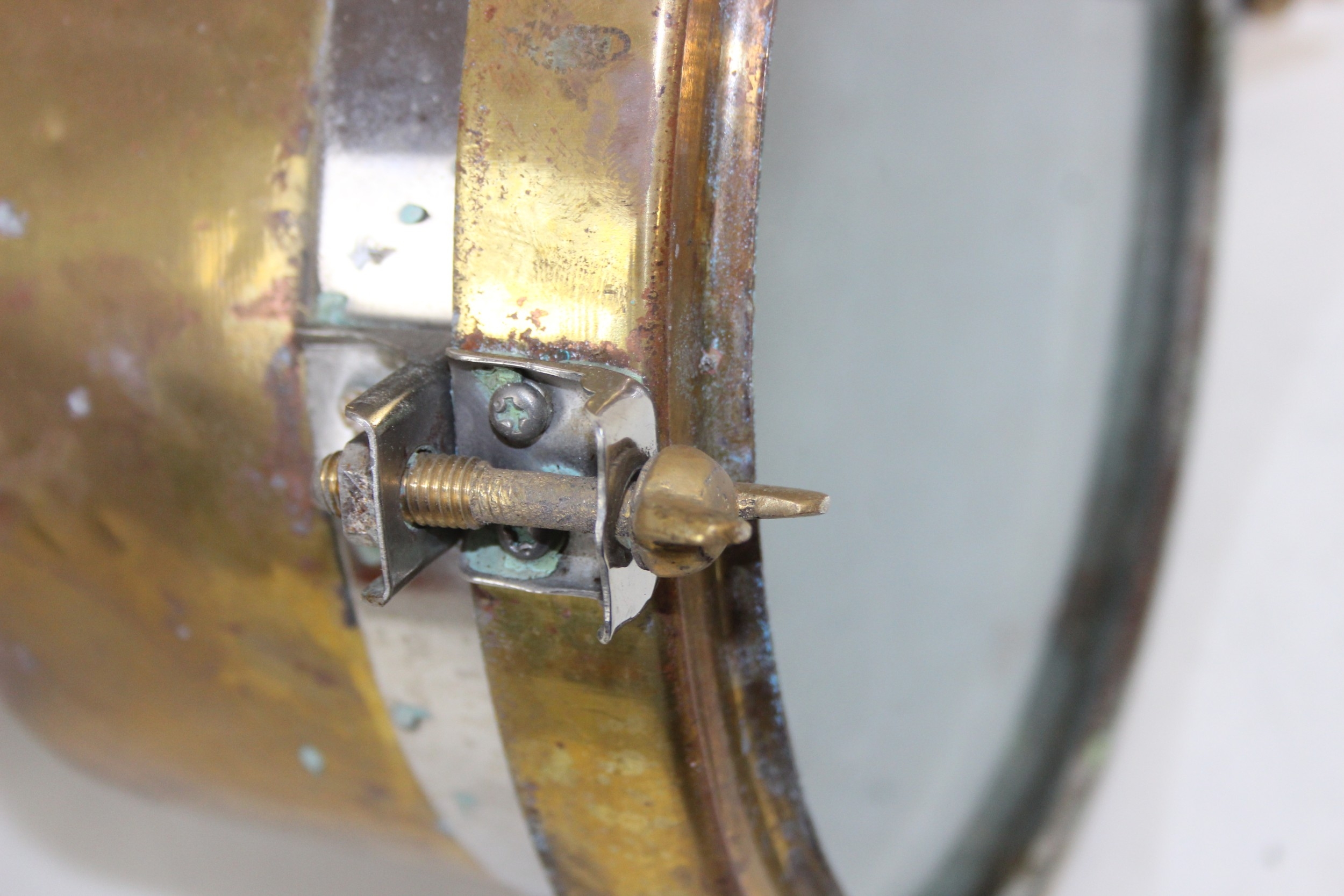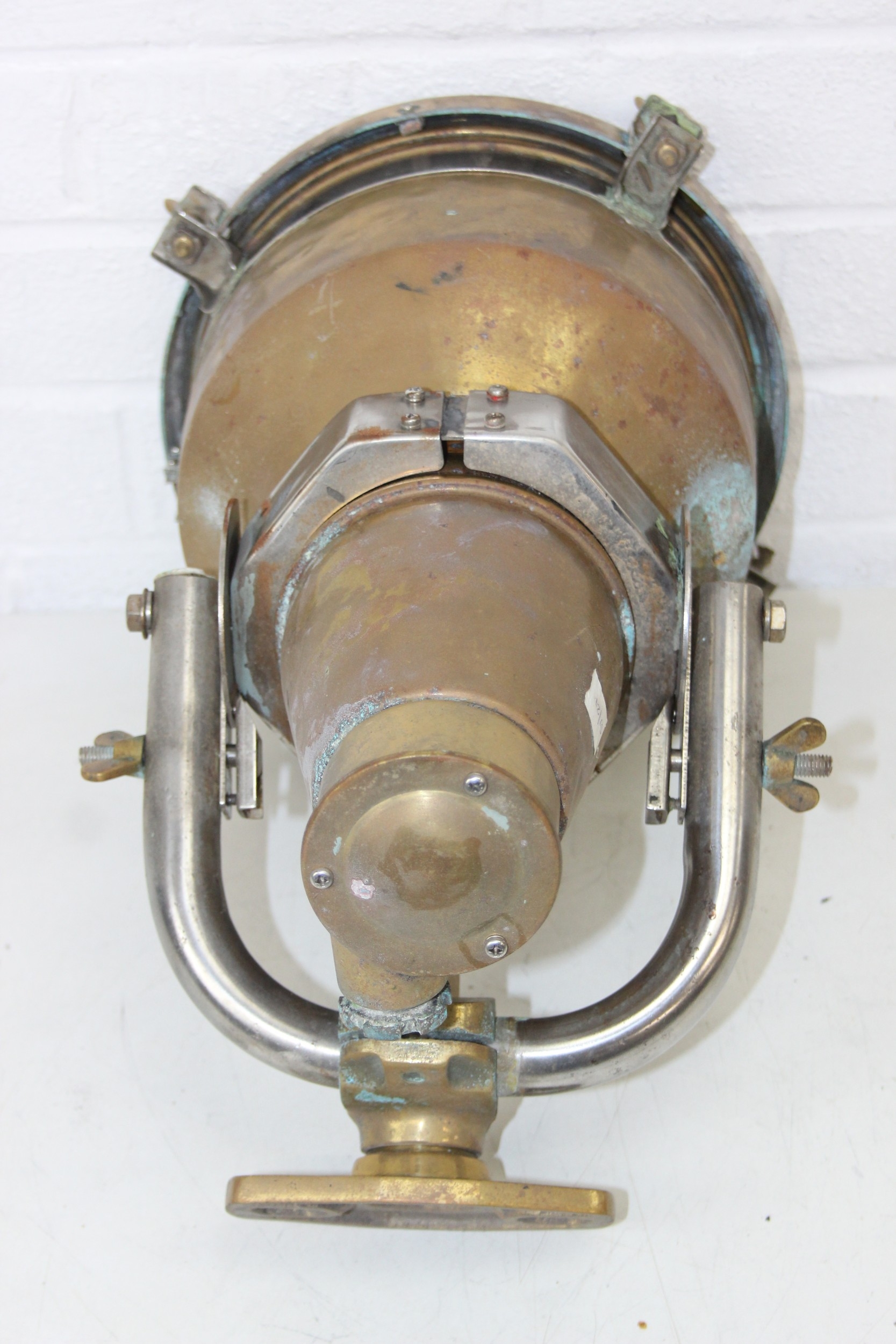 Marine lamps - brass lamp with four wingnut fastenings to lens, swing bracket, diameter 25cm x depth 40cm excluding bracket