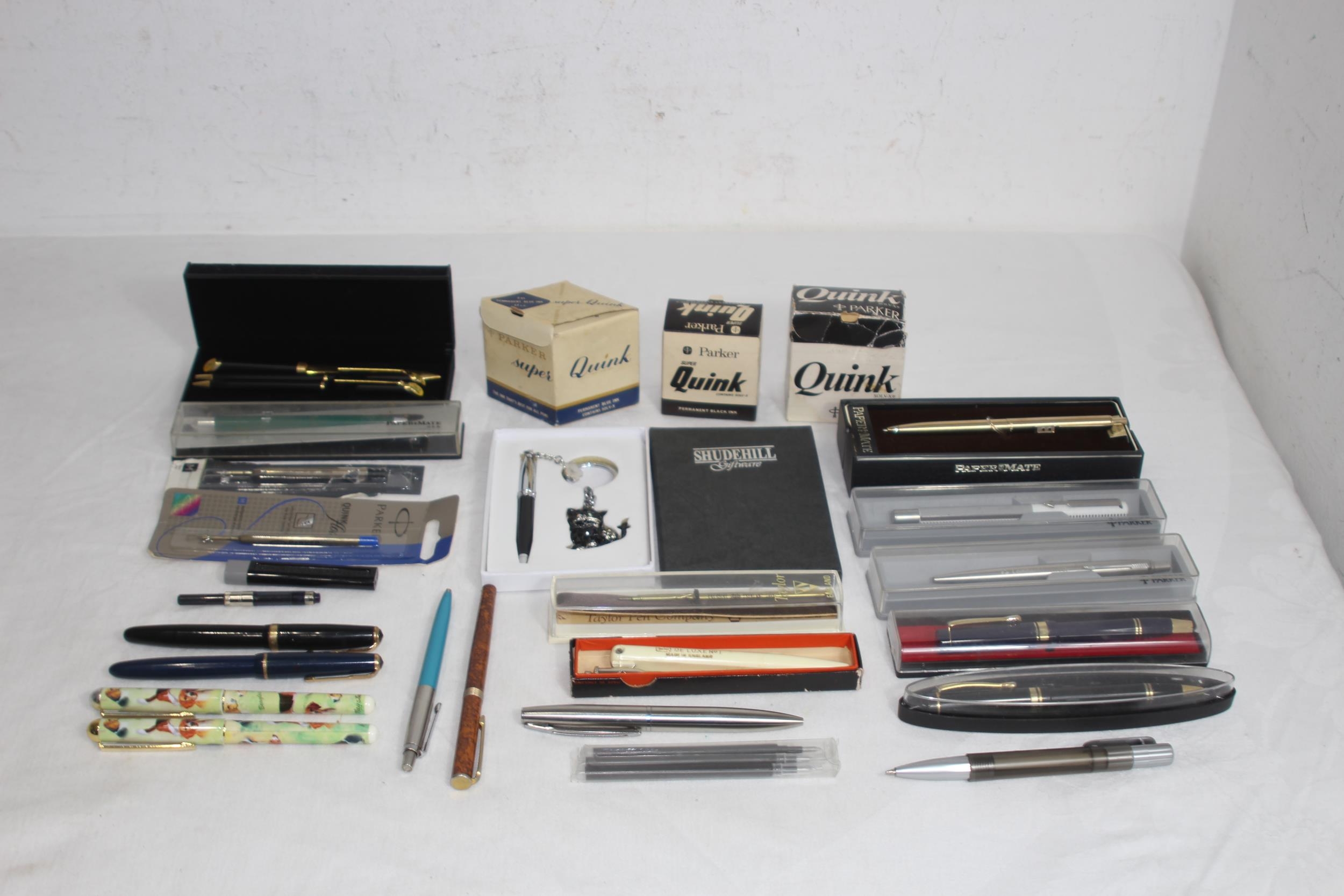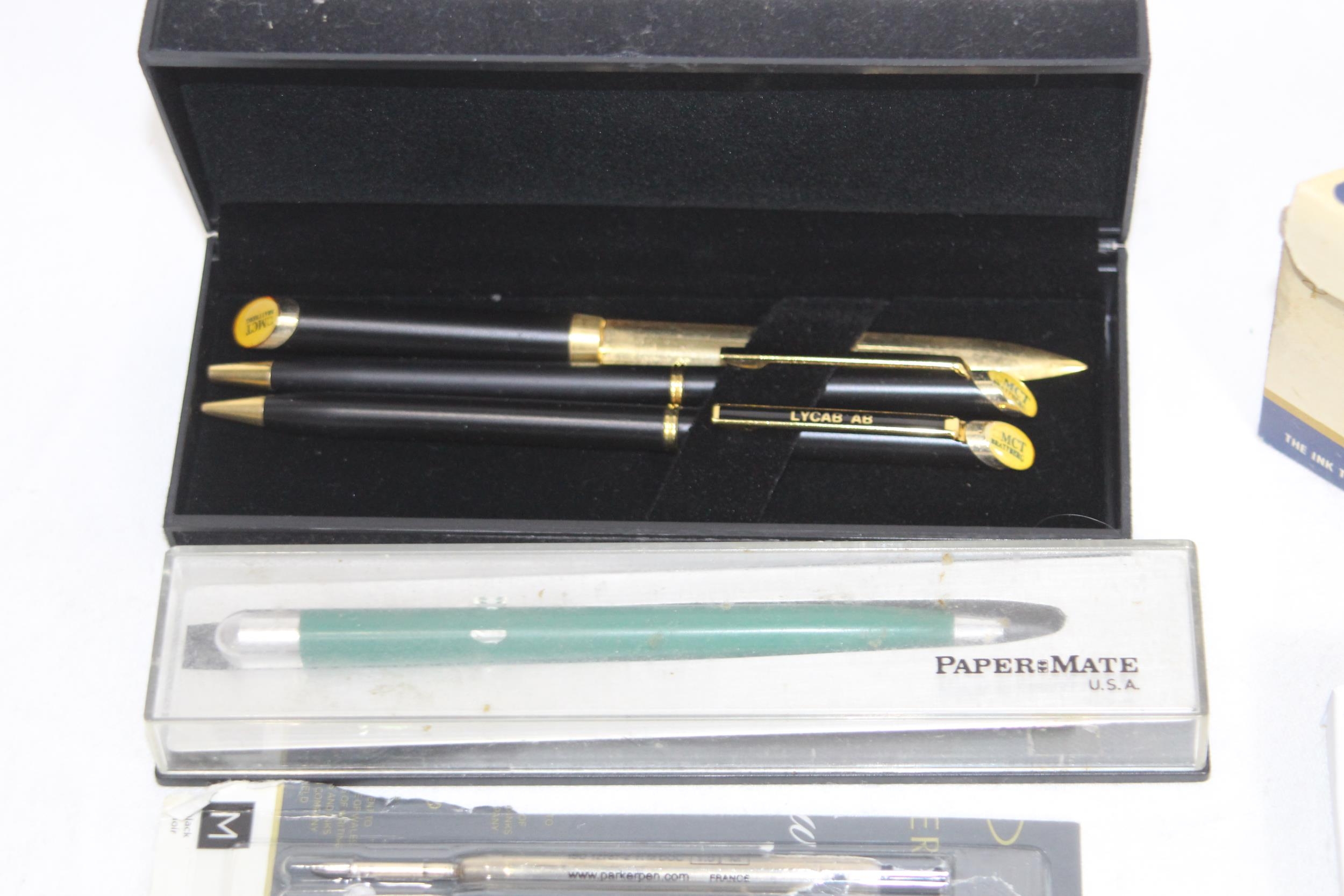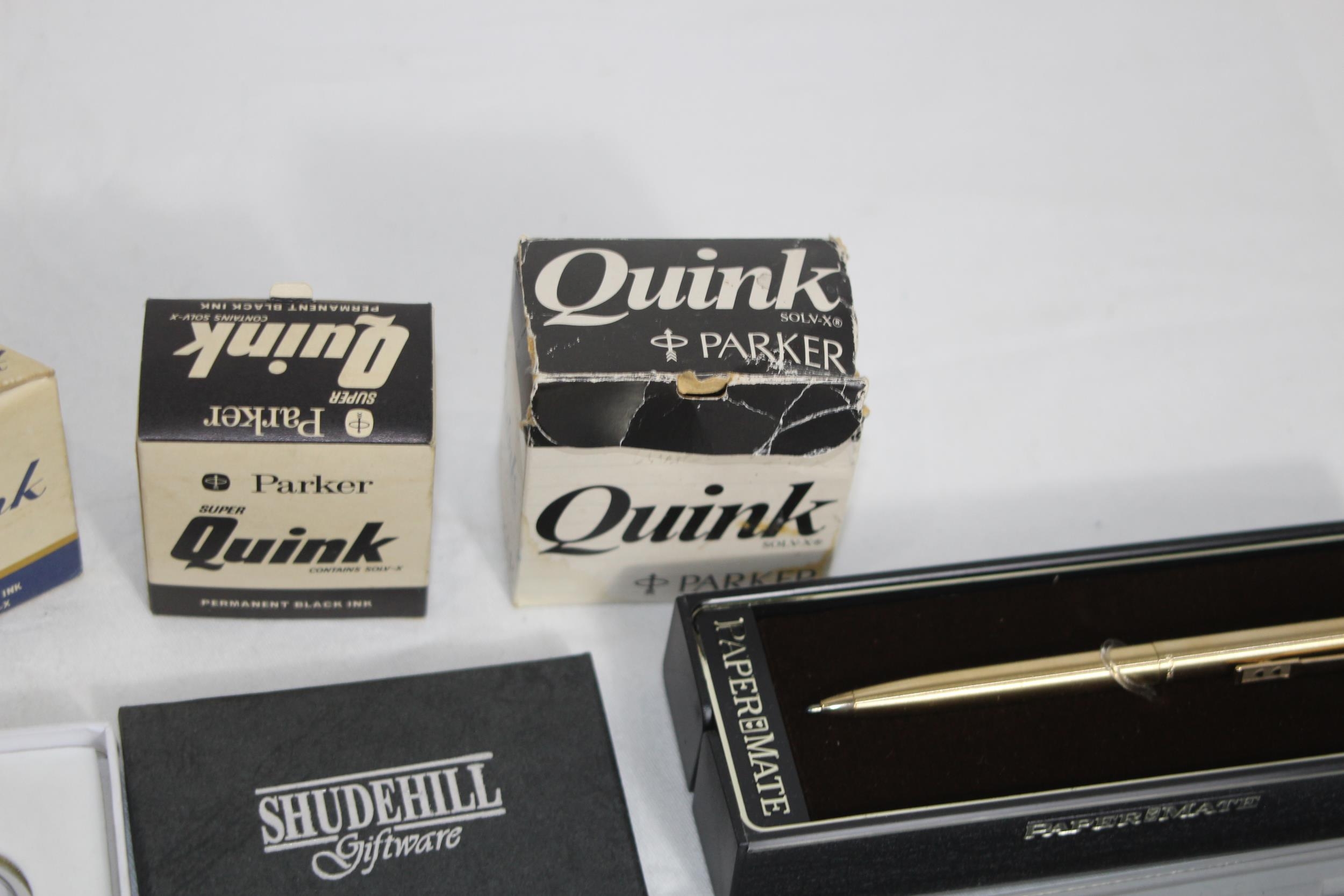 QTY OF BOXED AND LOOSE PENS, INC 2 WITH 14K CT GOLD NIBS, AND WRITING ACCESSORIES