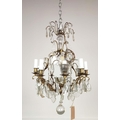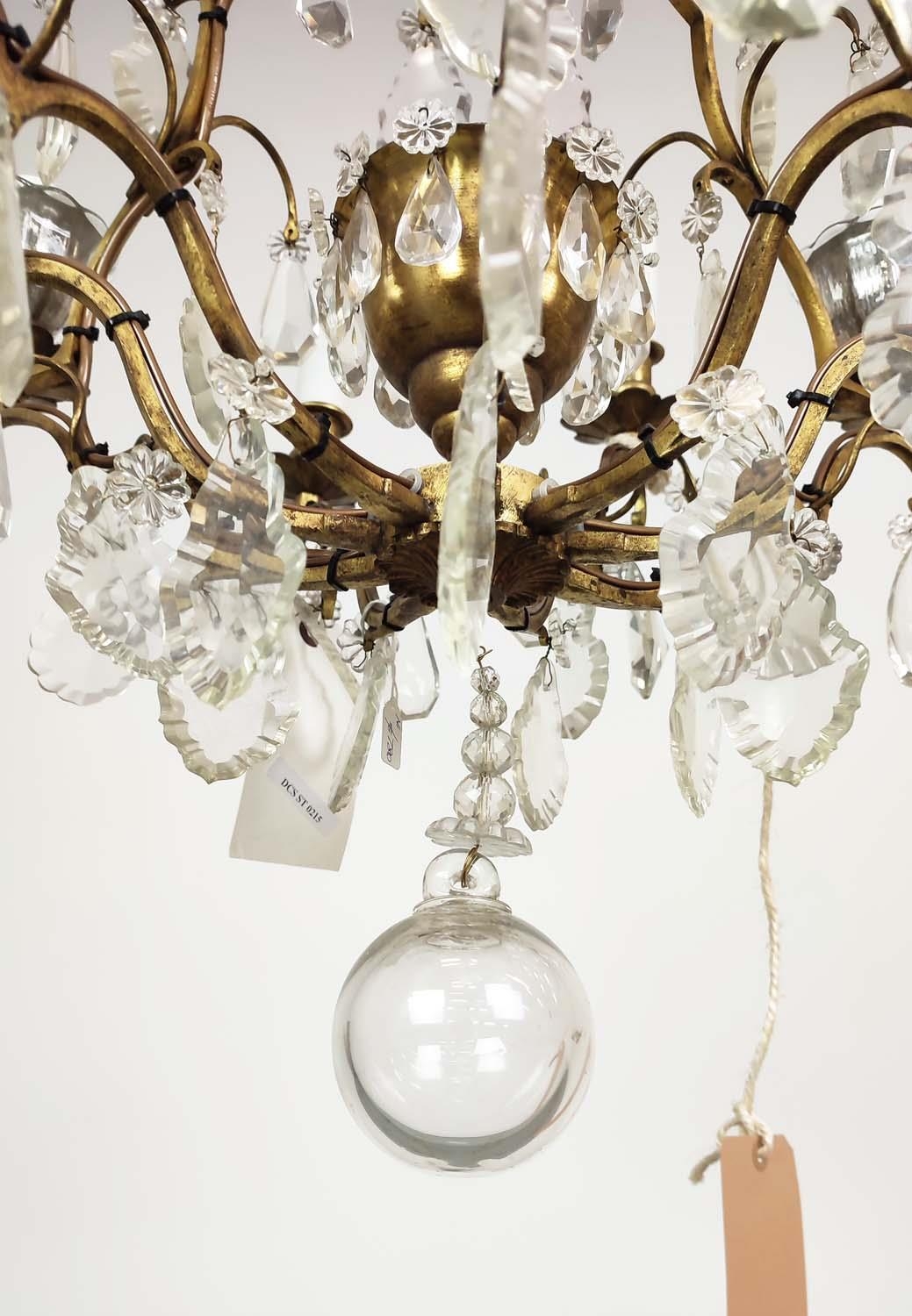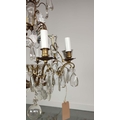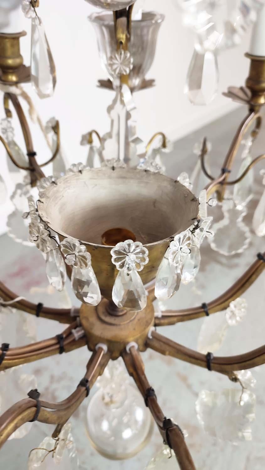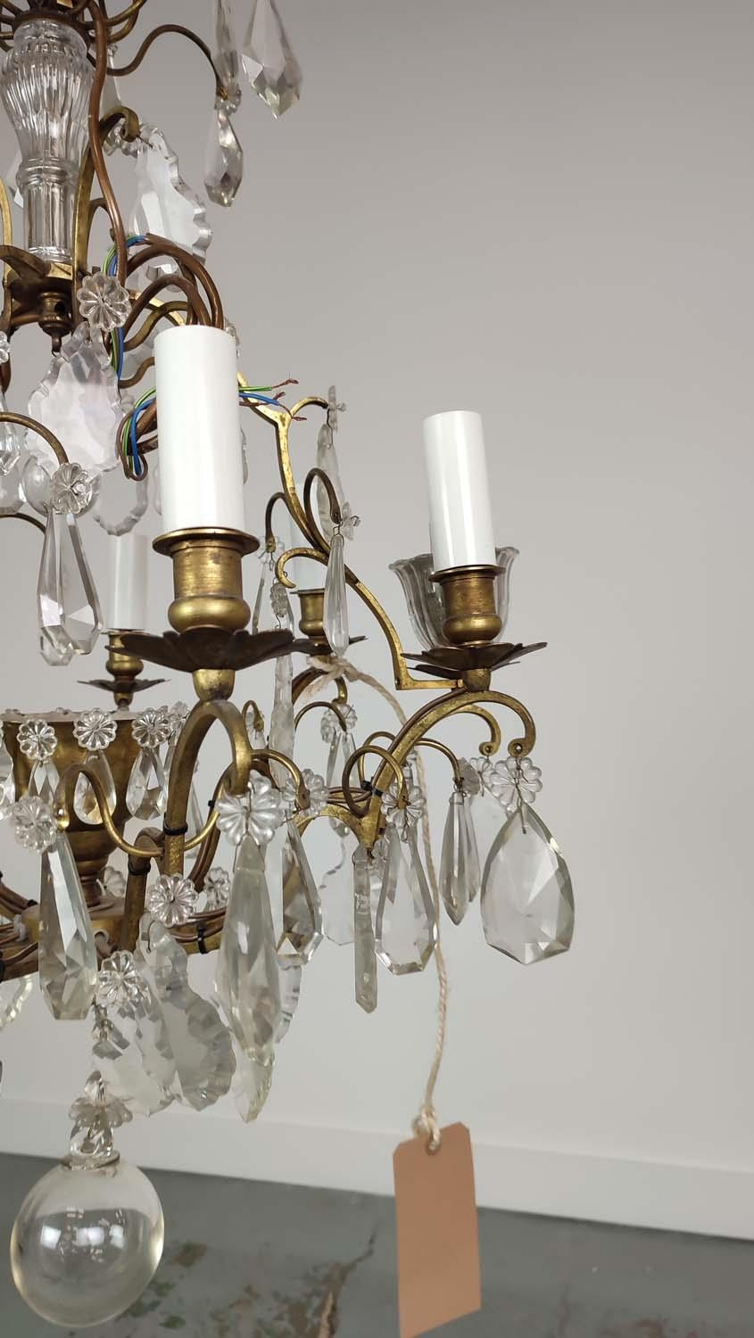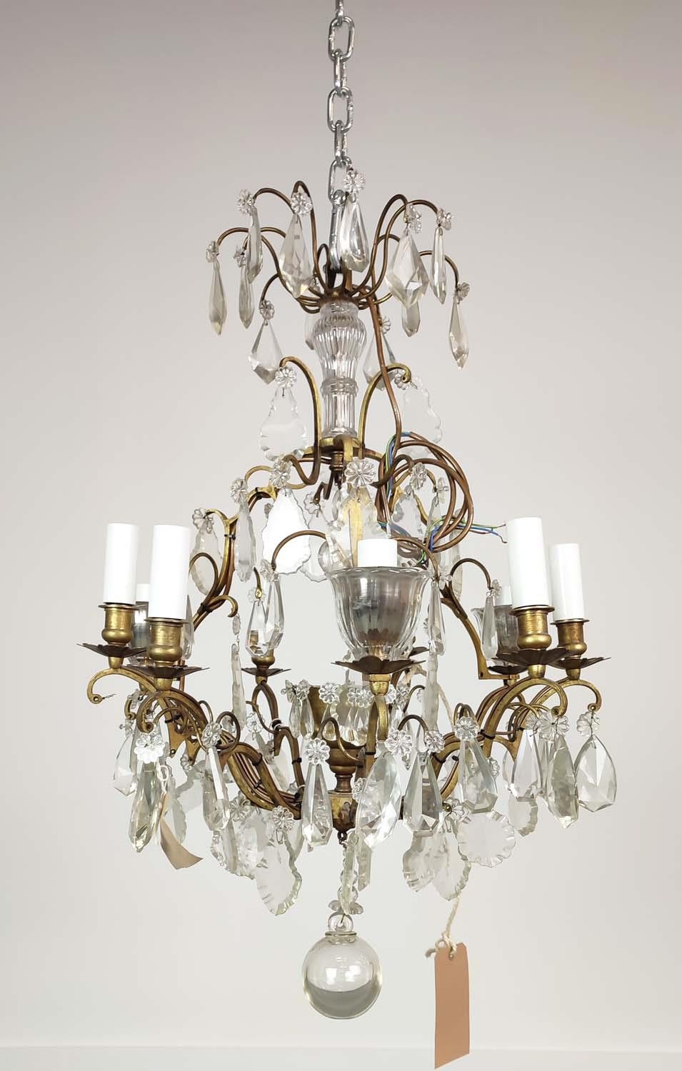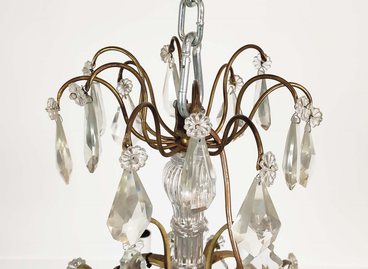 CHANDELIER, with a brass frame glass droplets and ten branches, approx 60cm H x 50cm W.