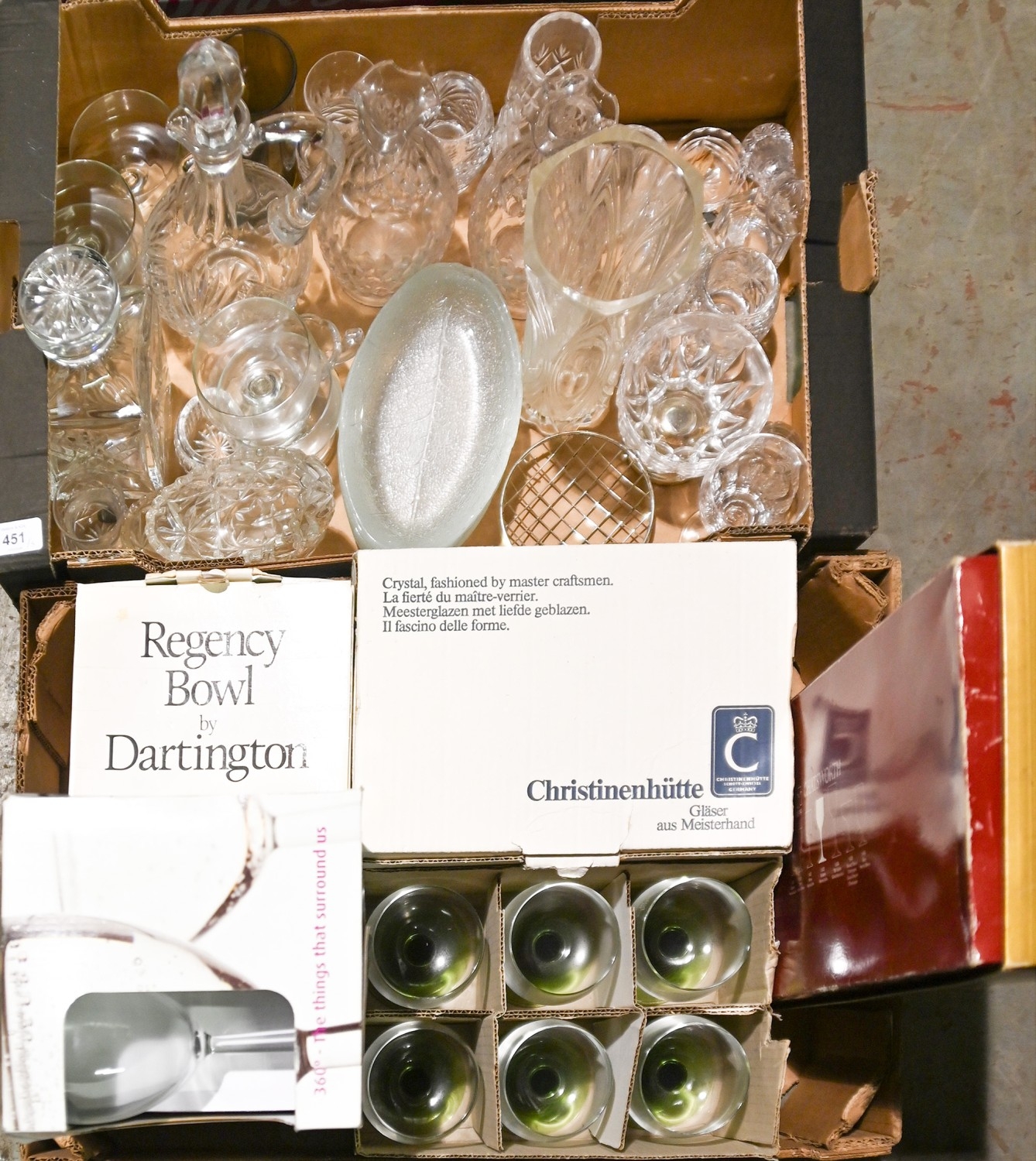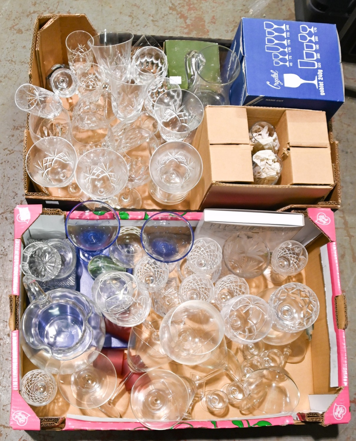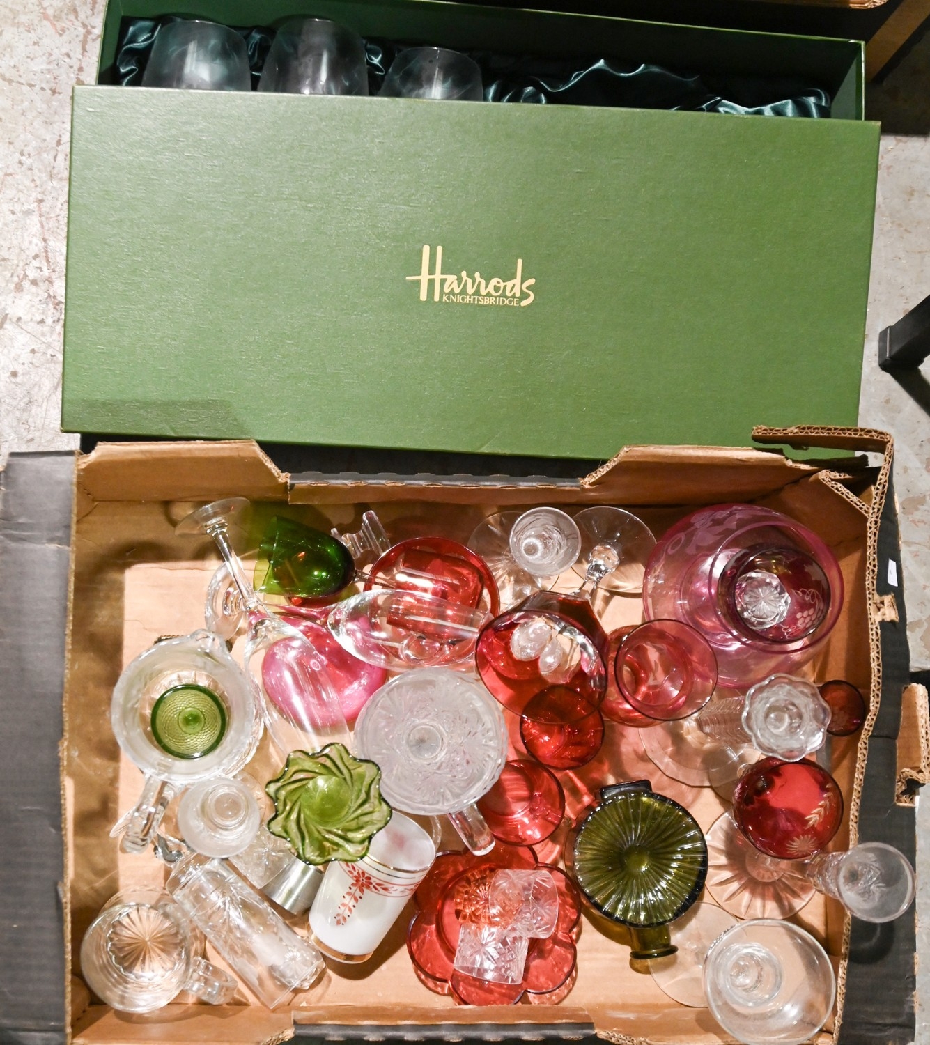 Miscellaneous cut, coloured and other glassware, early 20th c and later, to include drinking glass decanters, candlesticks, etc