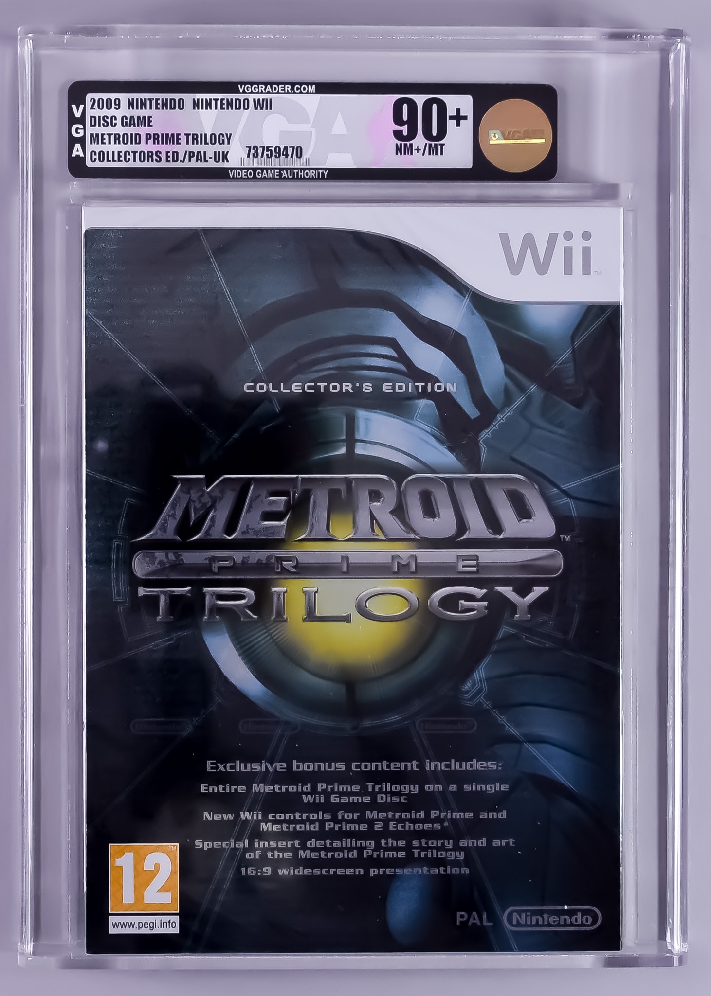 2009 Nintendo Wii – Metroid Prime Trilogy Collectors Edition – PAL/UK Version VGA 90+/NM+/Mint, with Nintendo strip seal and in rigid Perspex case supplied by VGA at the time of grading