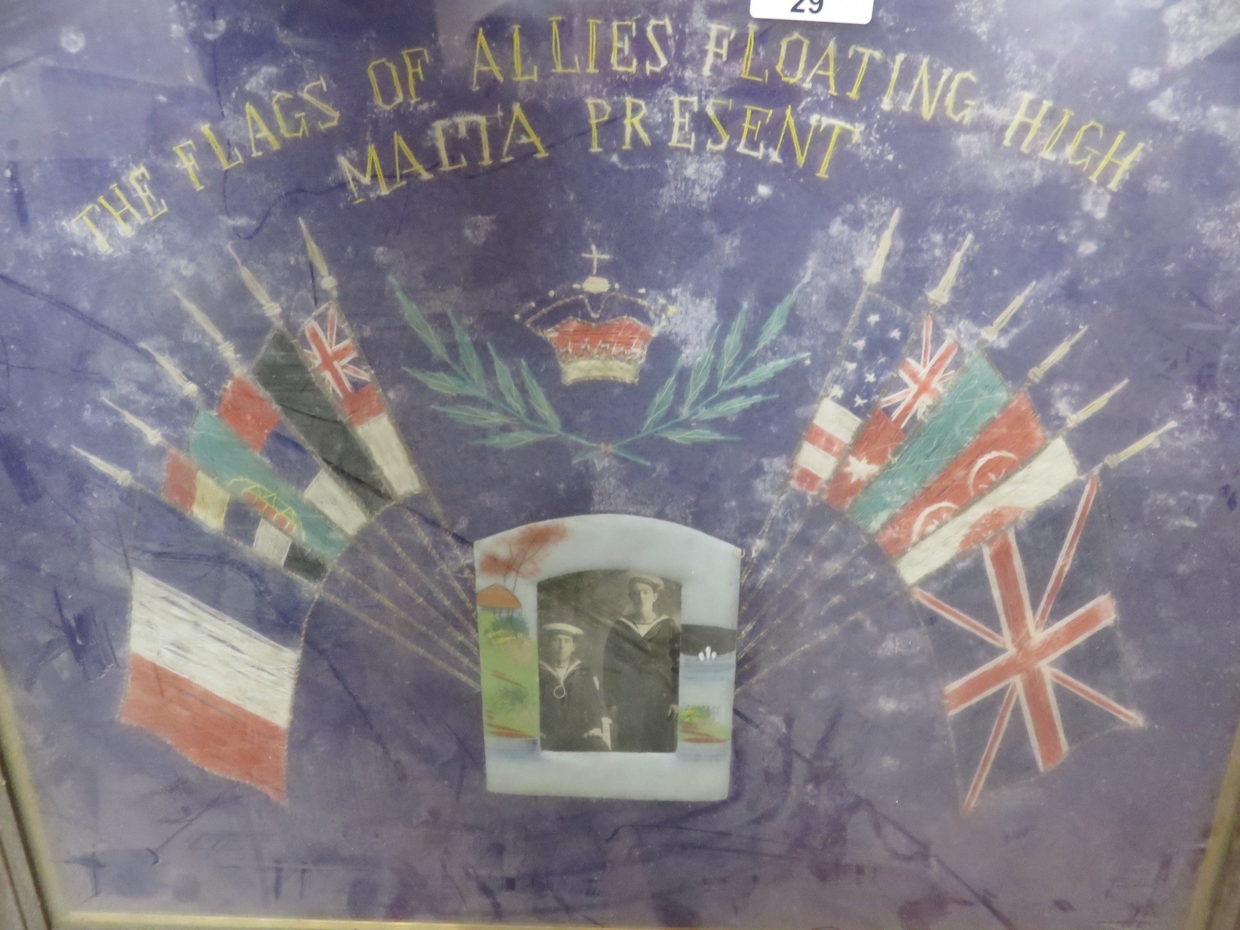Framed Picture - The Flags of Allied Floating High. Malta Present and One Other 42 by 52cm