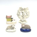 Collection of porcelain figures including: Staffshire 19th century Sheep and Double Bud Vase.