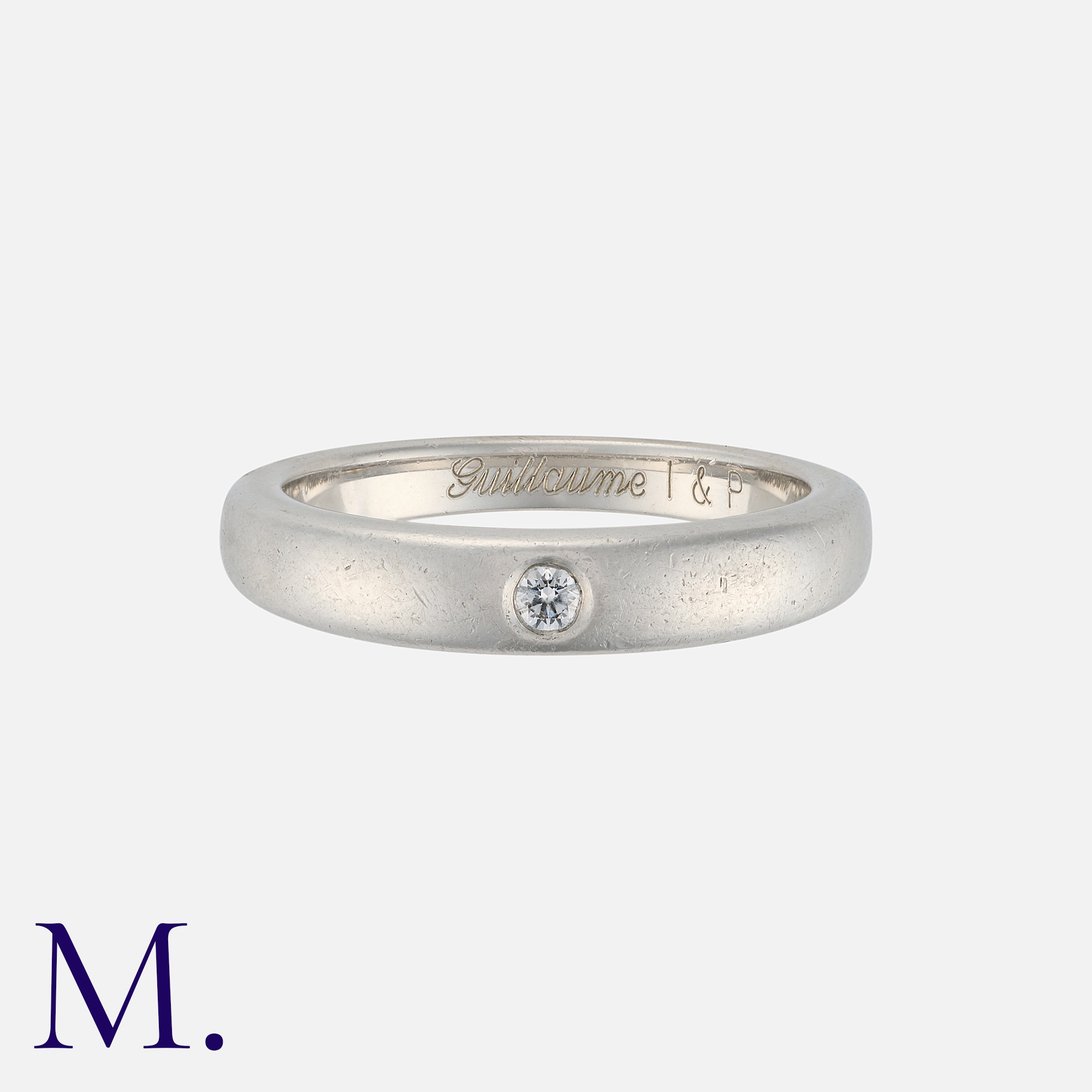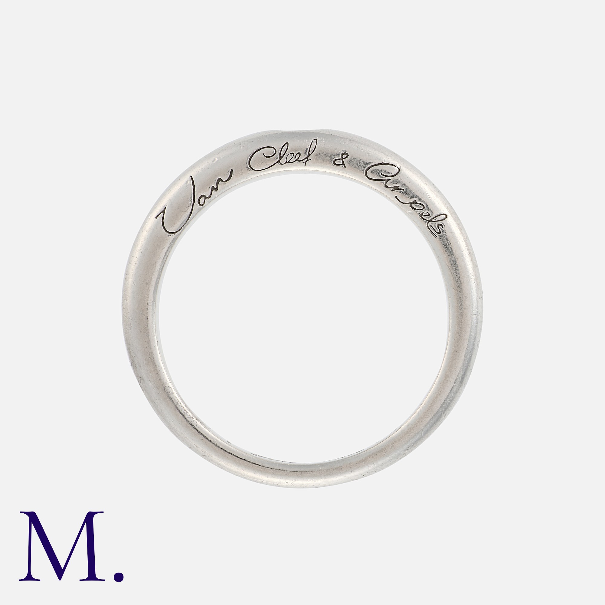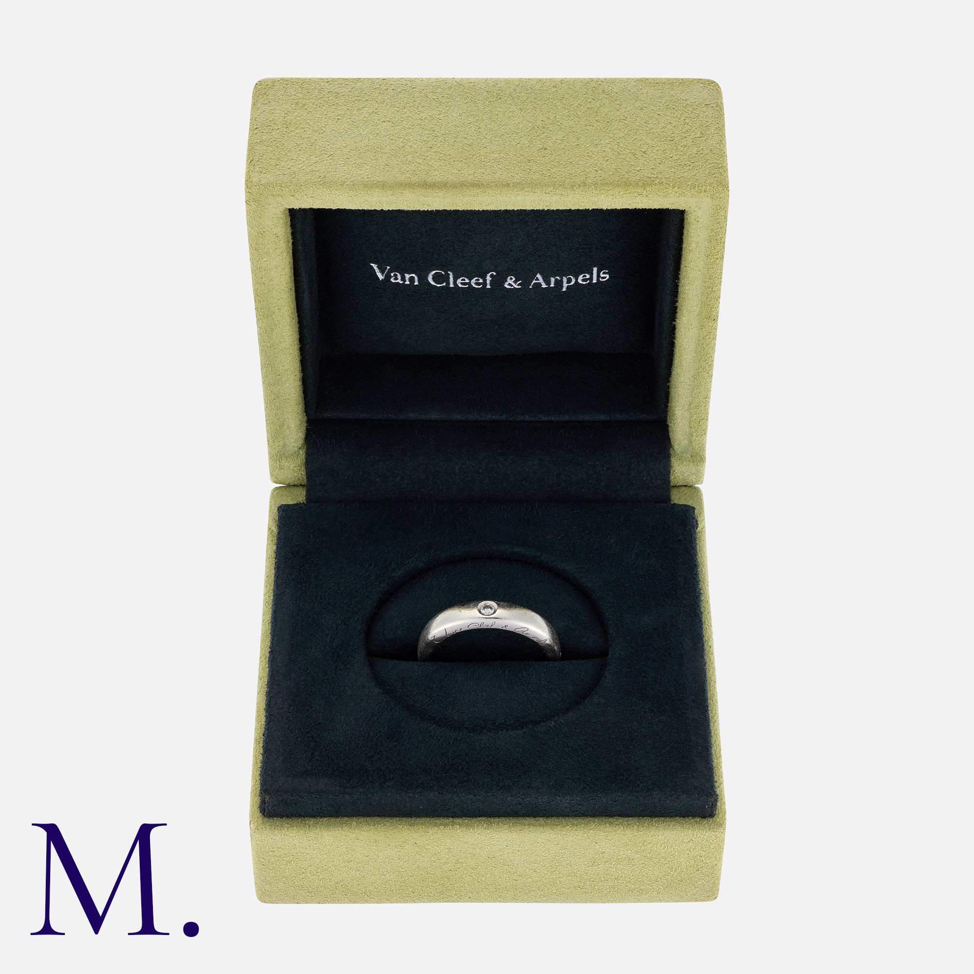 VAN CLEEF & ARPELS. A Diamond Band in platinum, set with a round brilliant cut diamond accent to a platinum band with 'Van Cleef & Arpels' signature to the side. Inside signed VCA and serial numbered. Marked PT950 indicating platinum. With VCA ring box and outer presentation box.