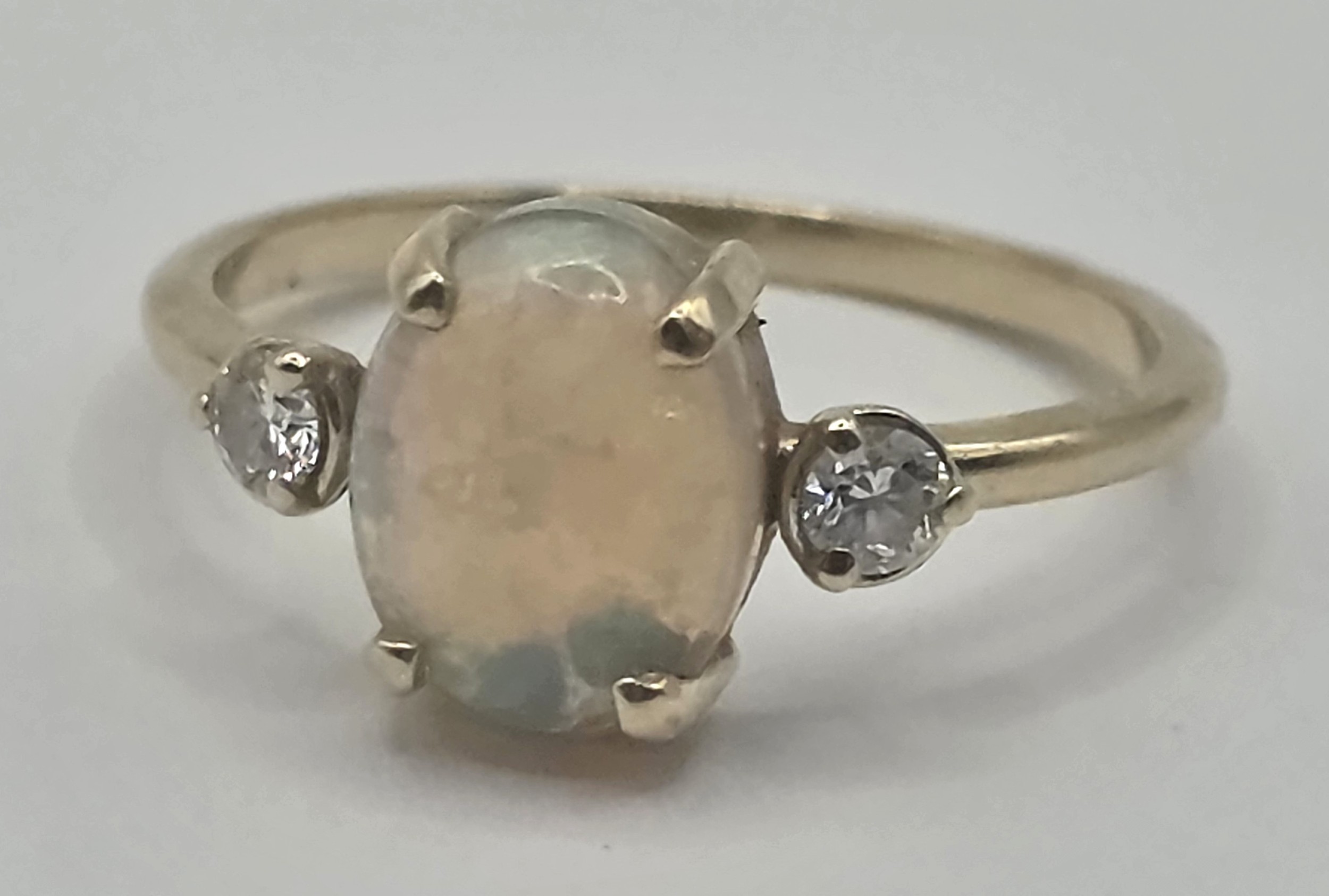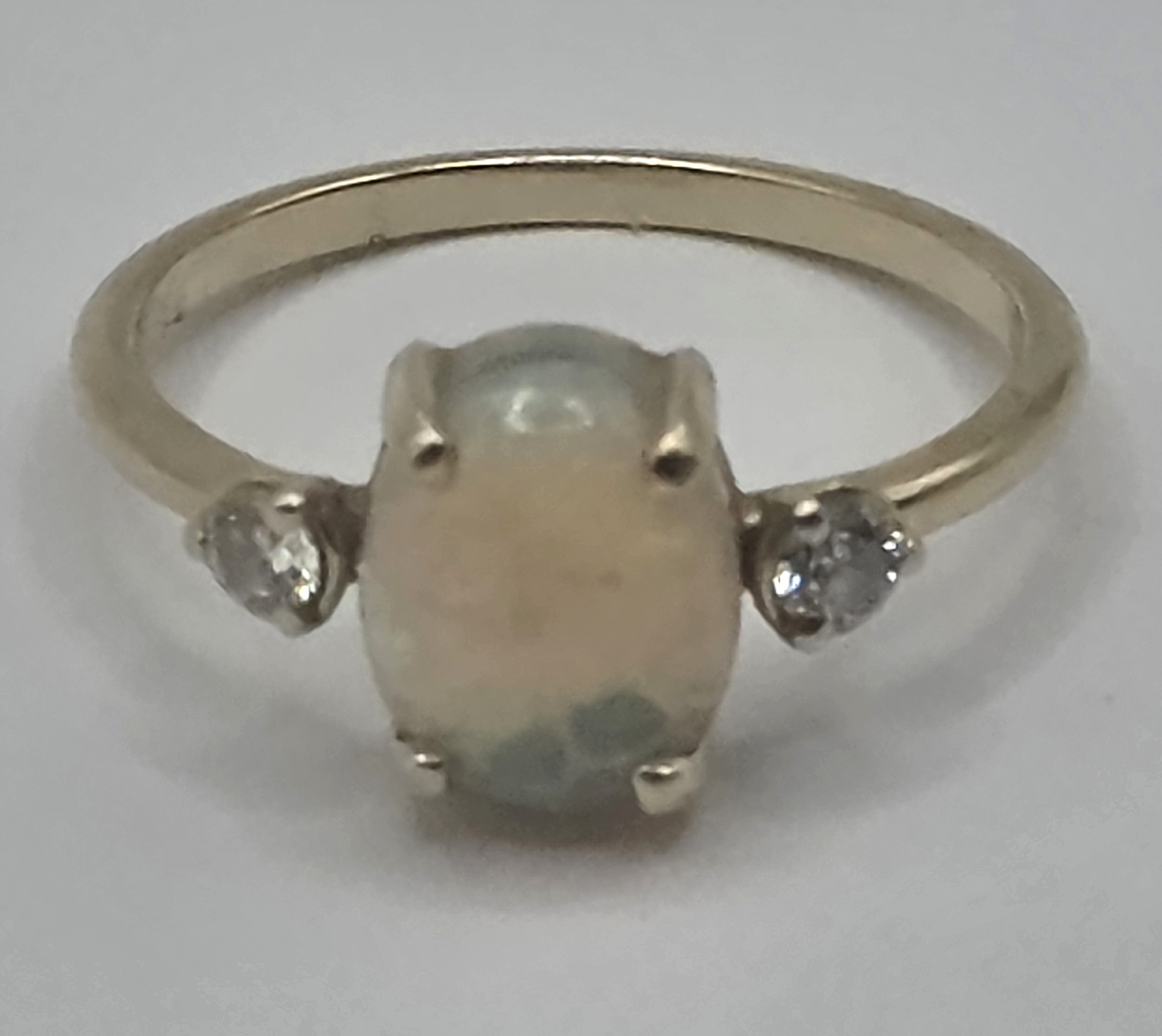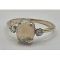 A 14ct gold, opal and diamond ring, ring size L