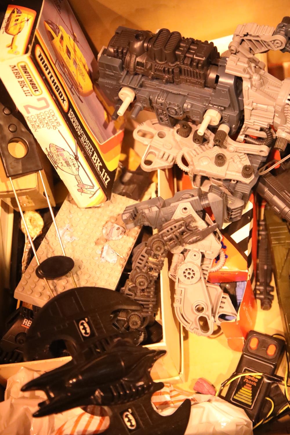 Mixed box of children's toys including matchbox items. Not available for in-house P&P