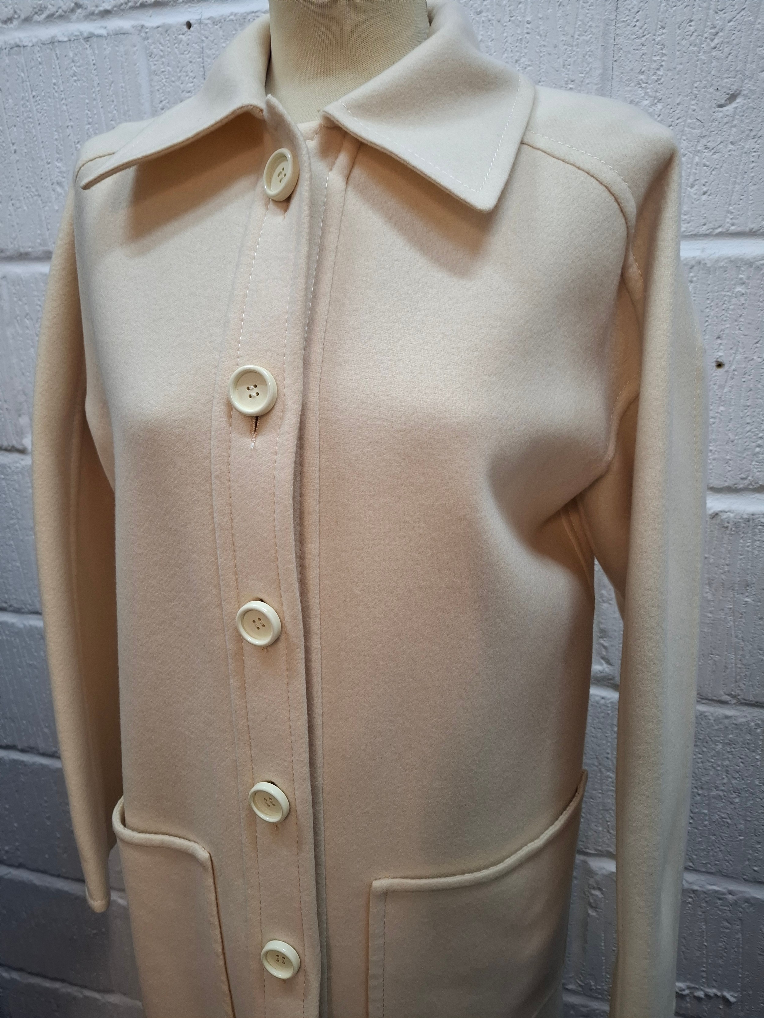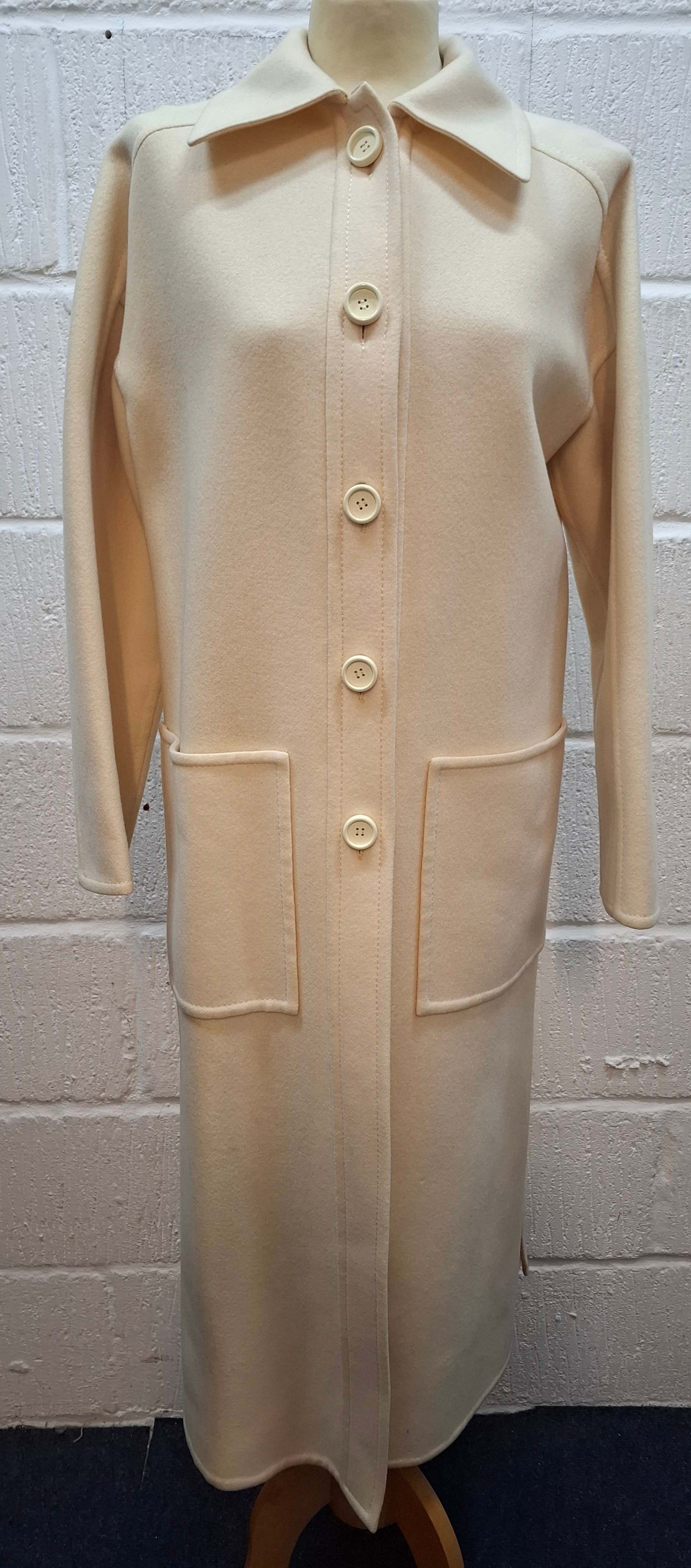Lanvin- A 1970's cream wool mix ladies coat with 2 front deep pockets and 5 cream button front fastening, approx 38" chest x 47" long