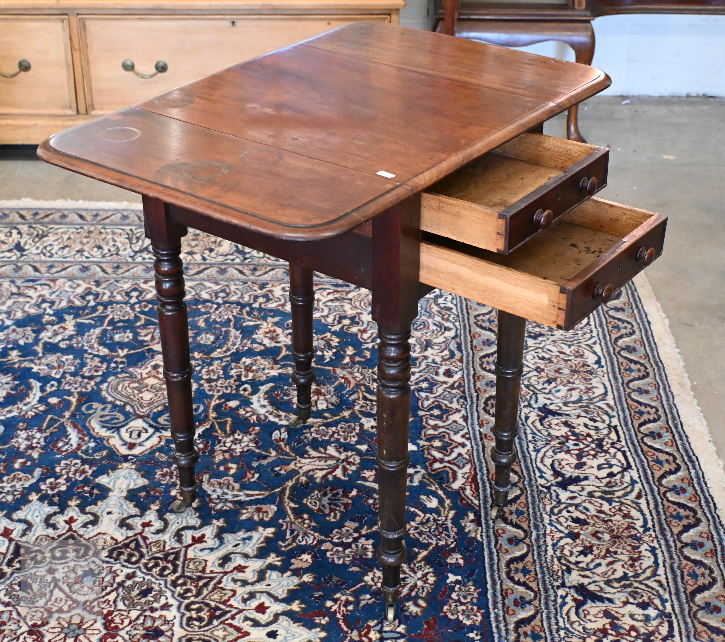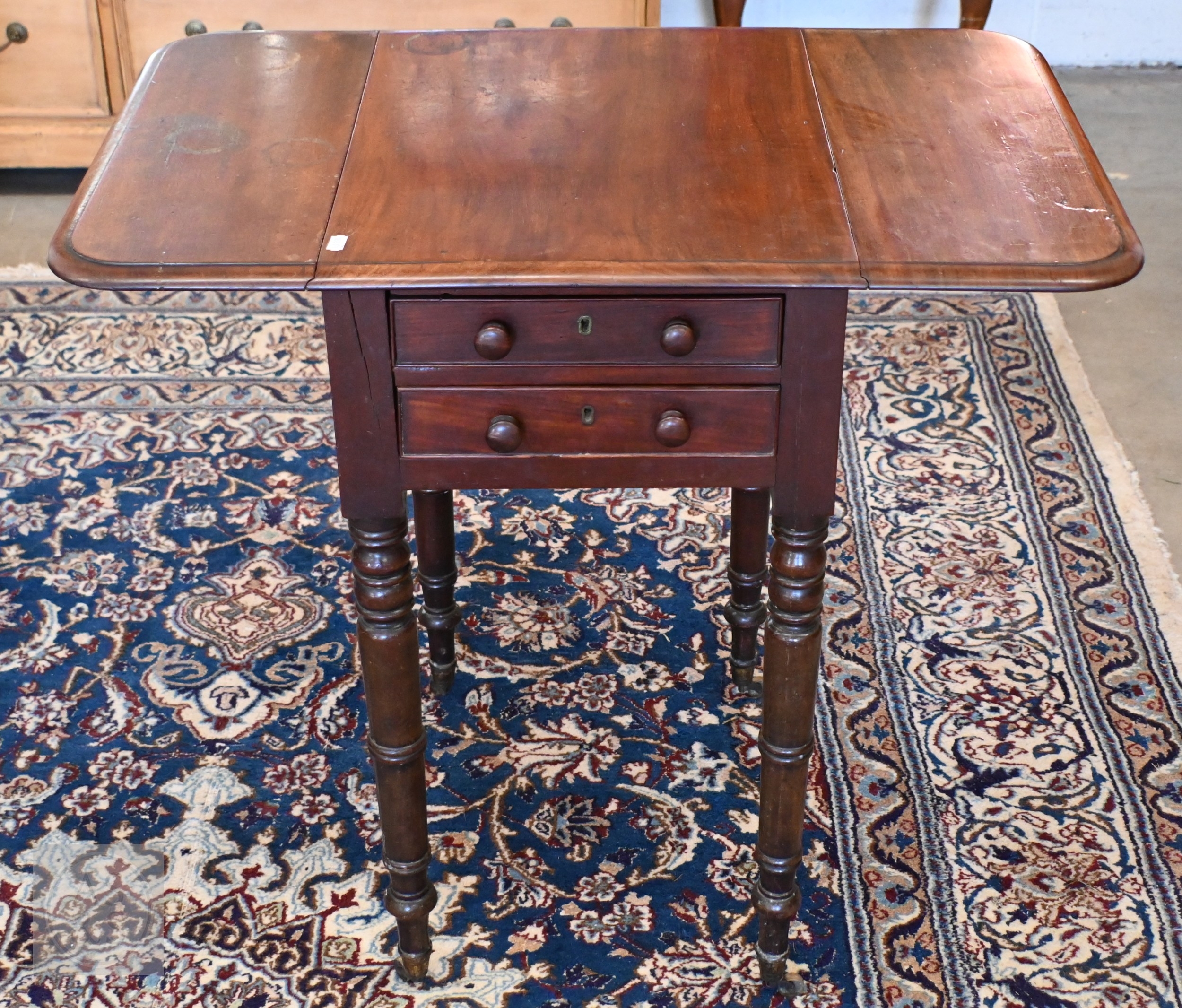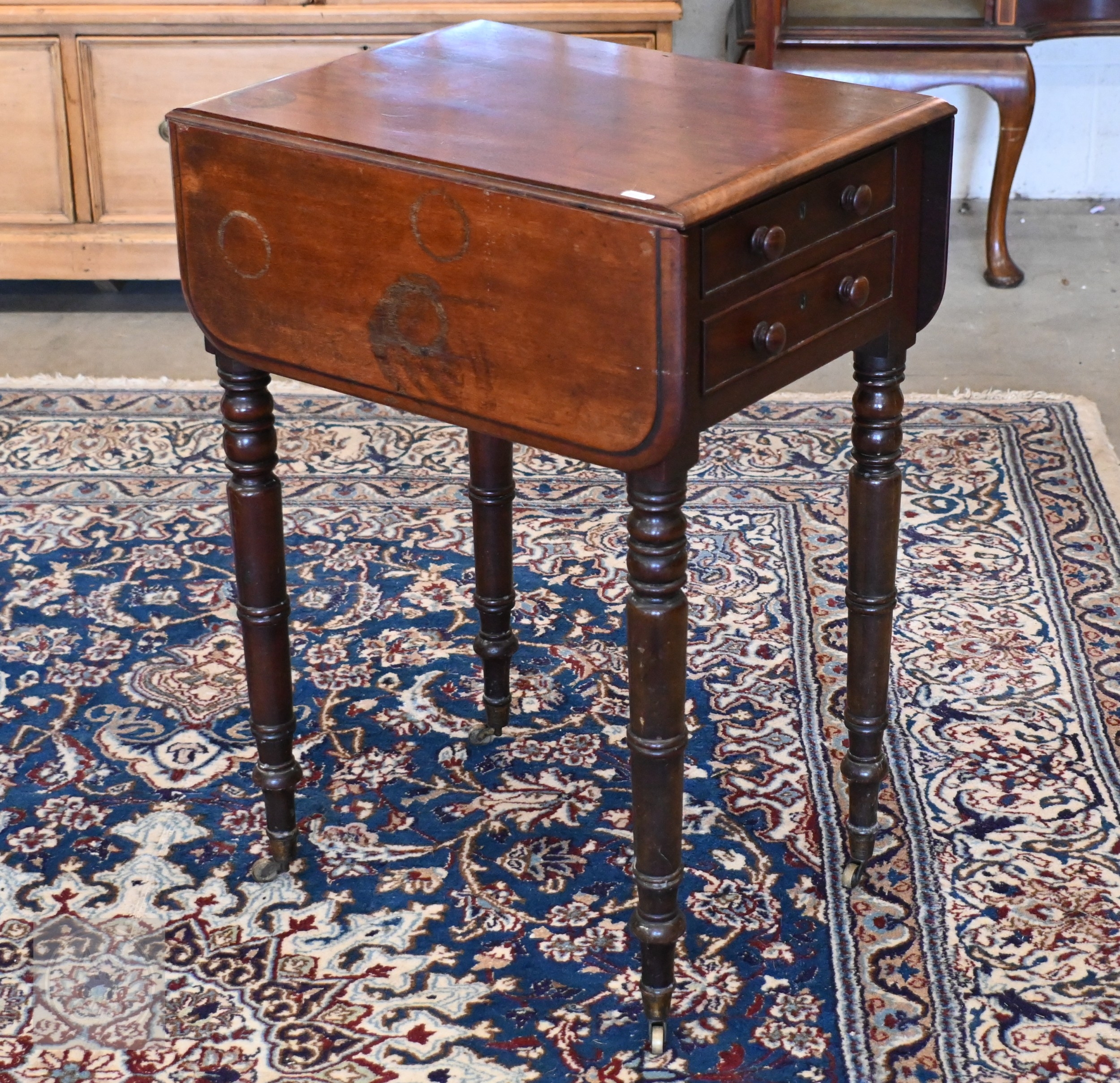 A 19th century mahogany drop leaf table on padfooted gateleg action supports to/w a mahogany side table with drawer to end (2)