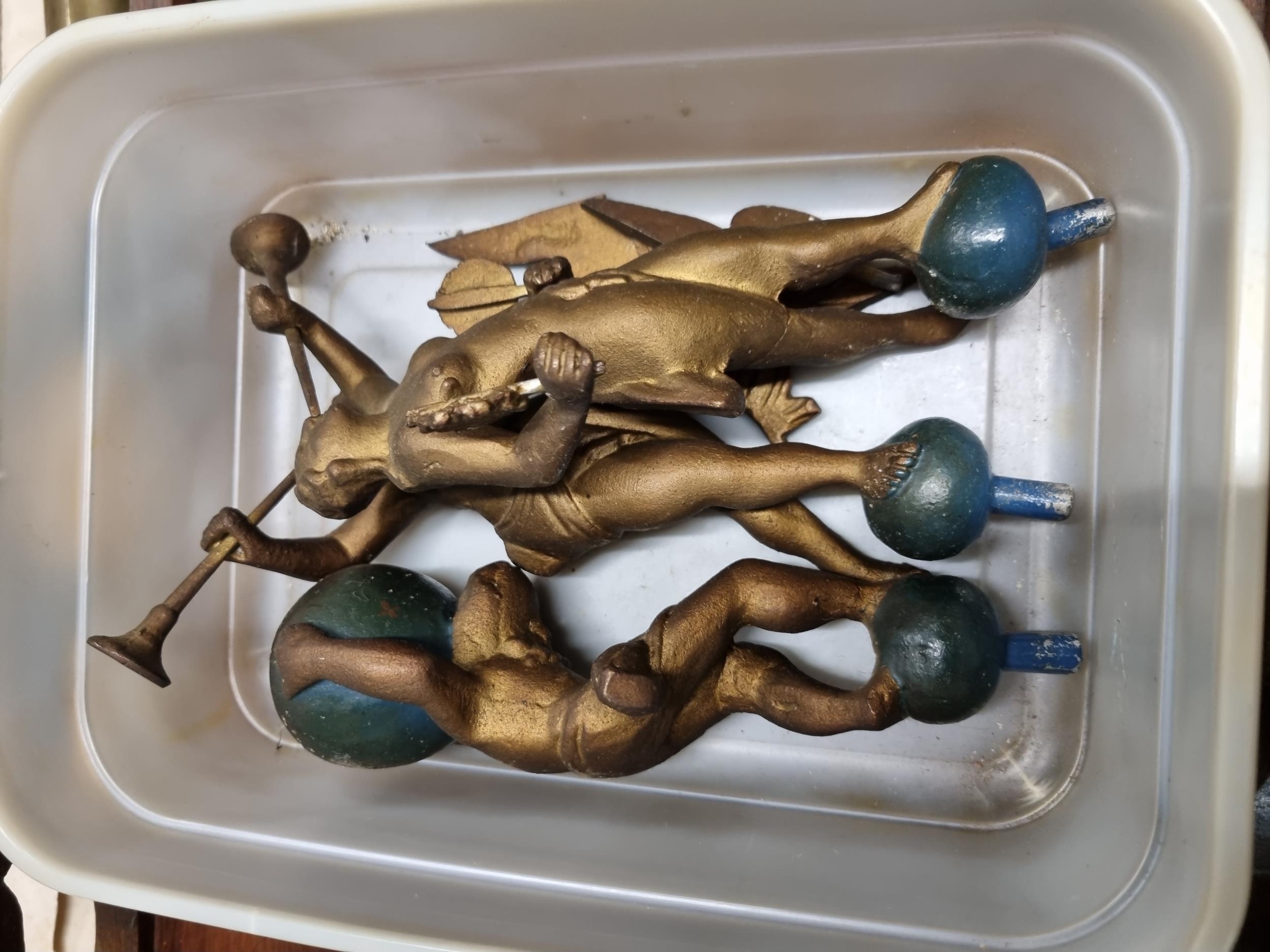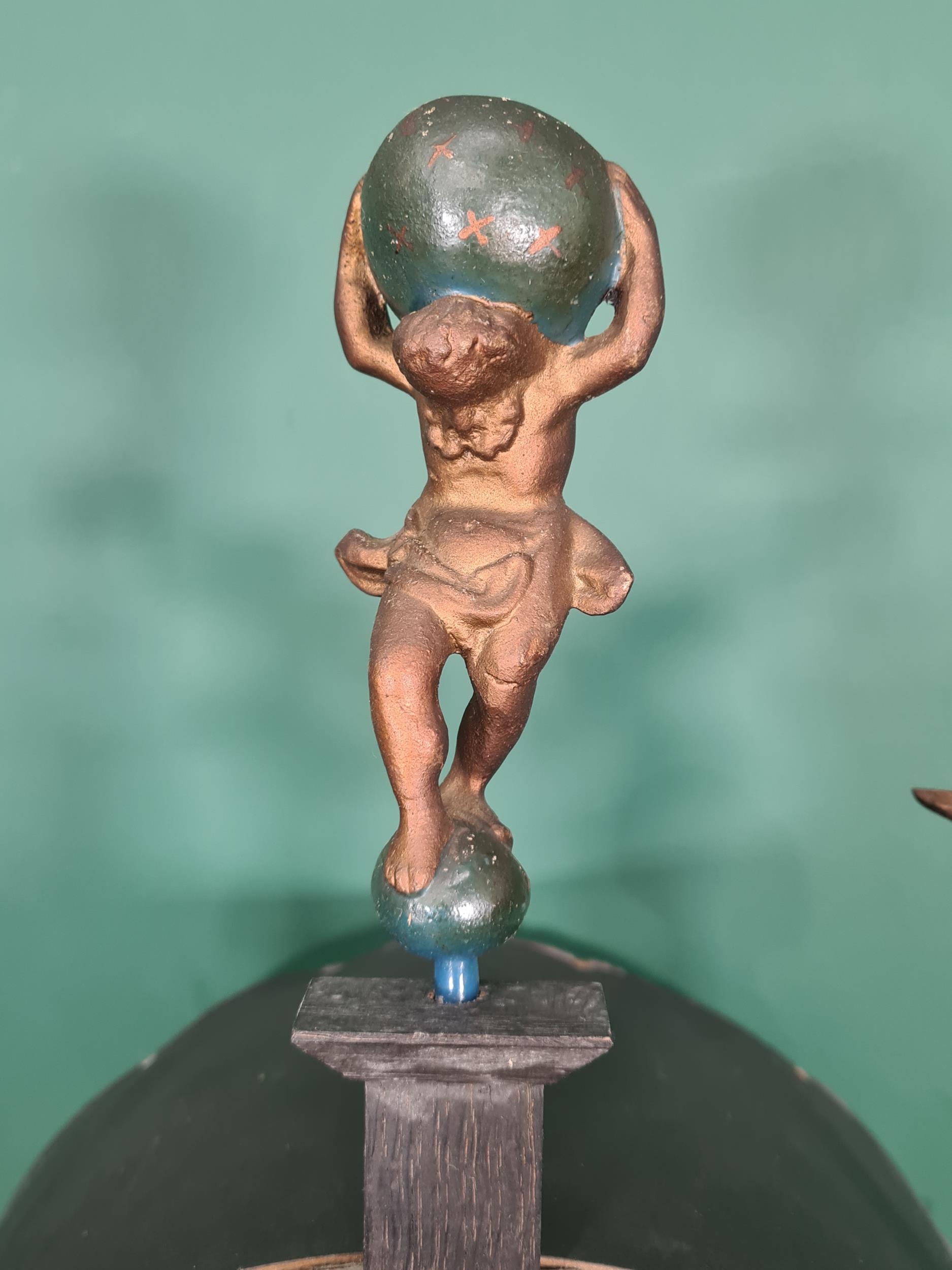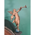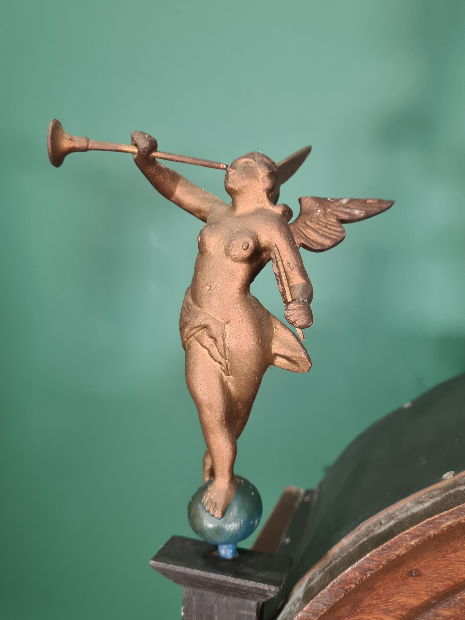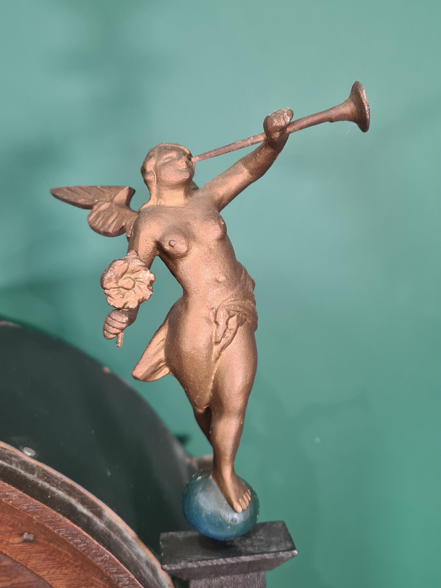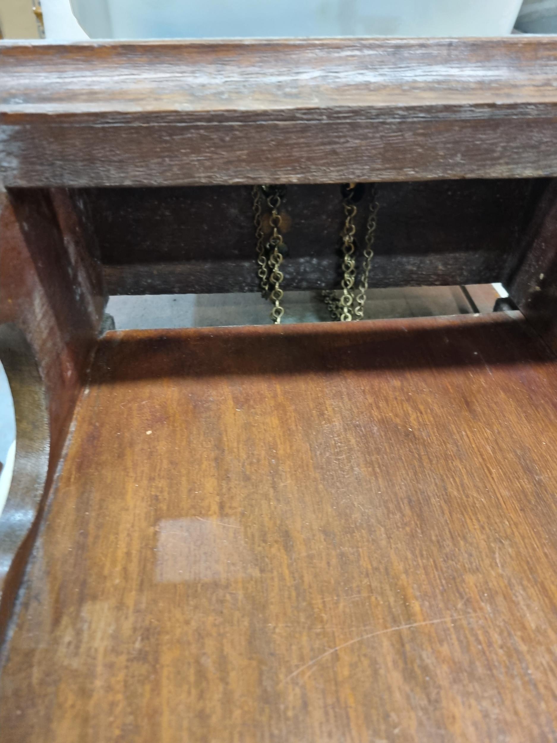 A Dutch oak cased Wall Clock with painted arched dial depicting fishing scenes with figural decorations, complete with weights, (R3)