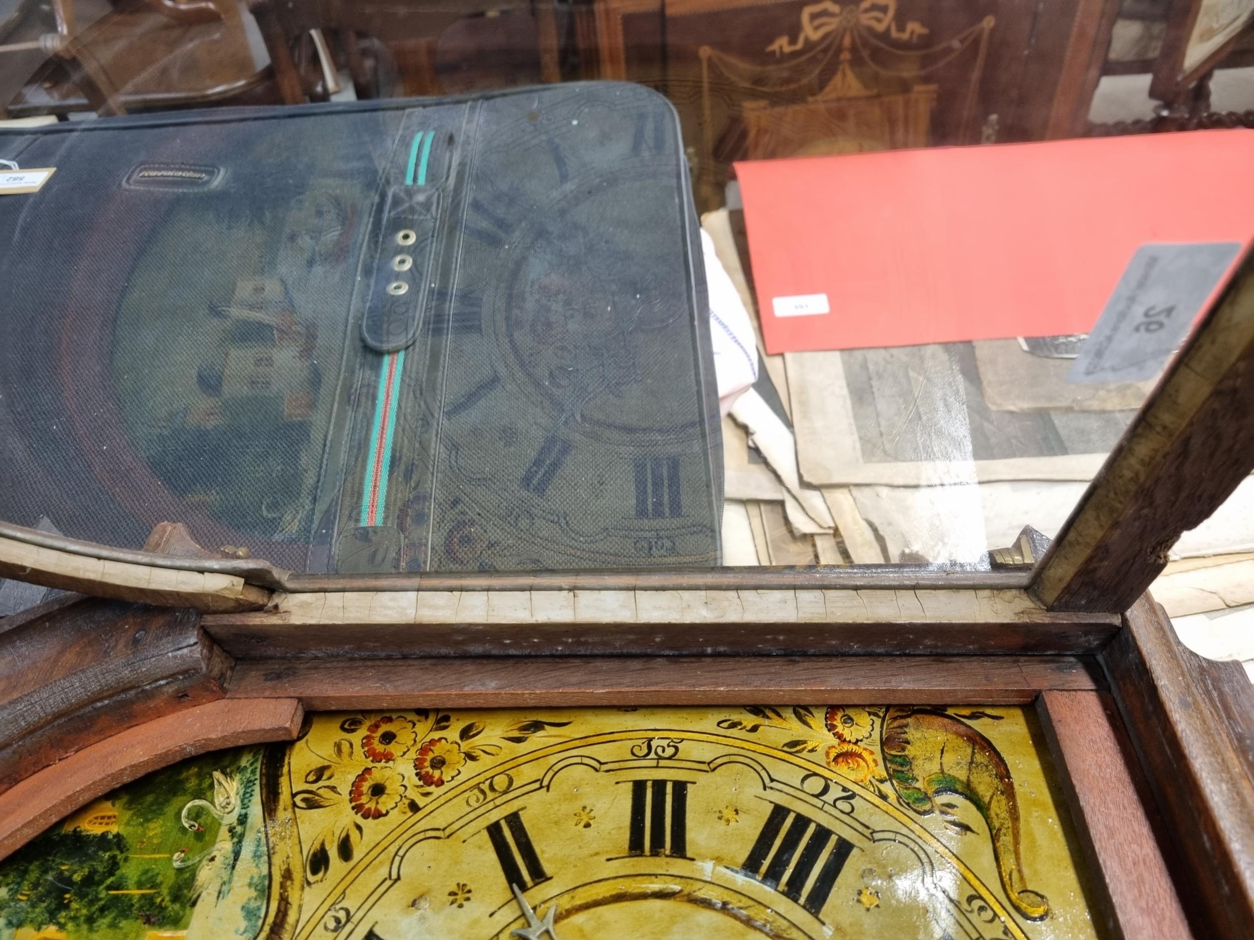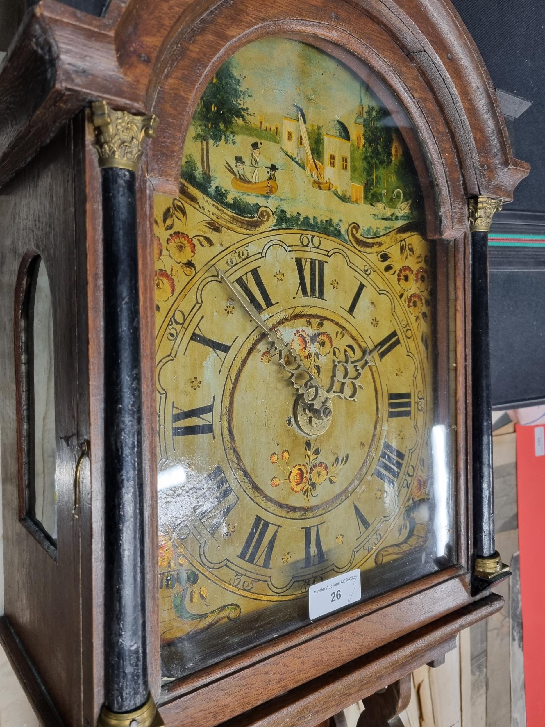 A Dutch oak cased Wall Clock with painted arched dial depict...