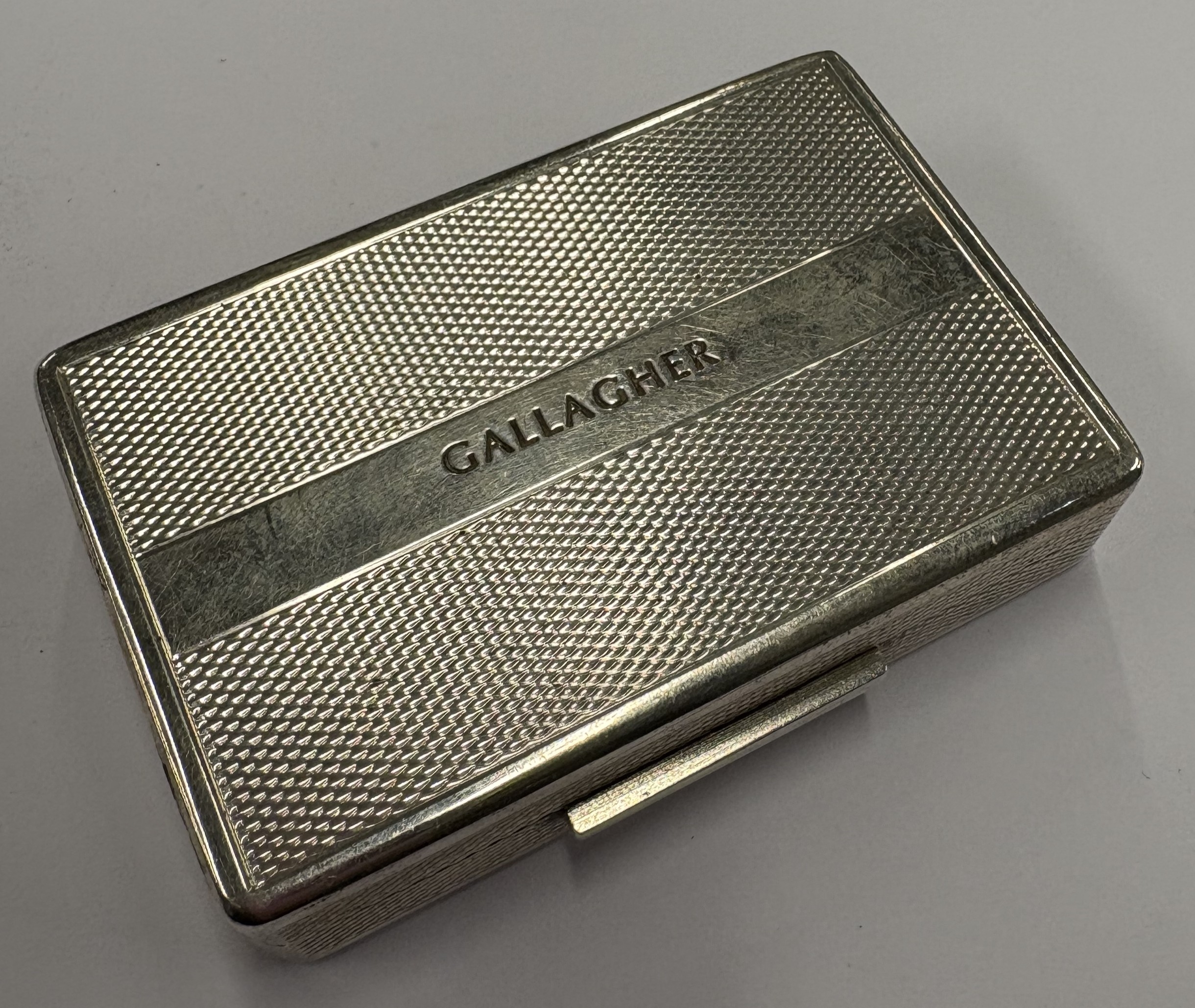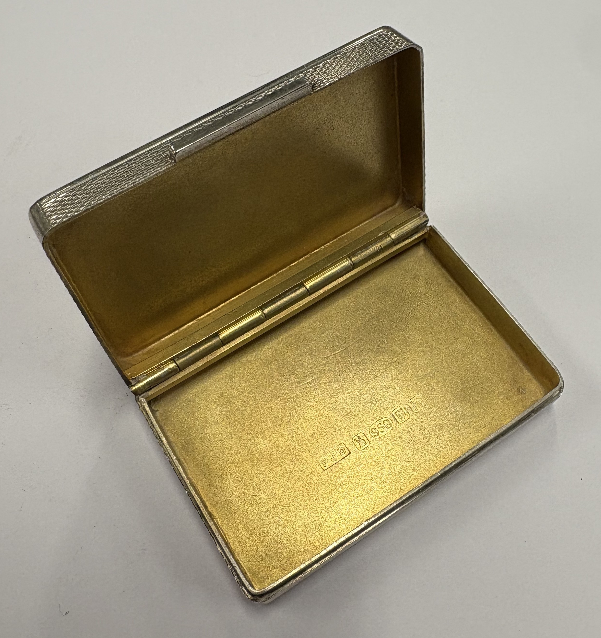A Britannia Standard silver snuff box with engine-tuned decoration. London 2007. By PJD. Approx. 80 grams. Est. £200 - £300.