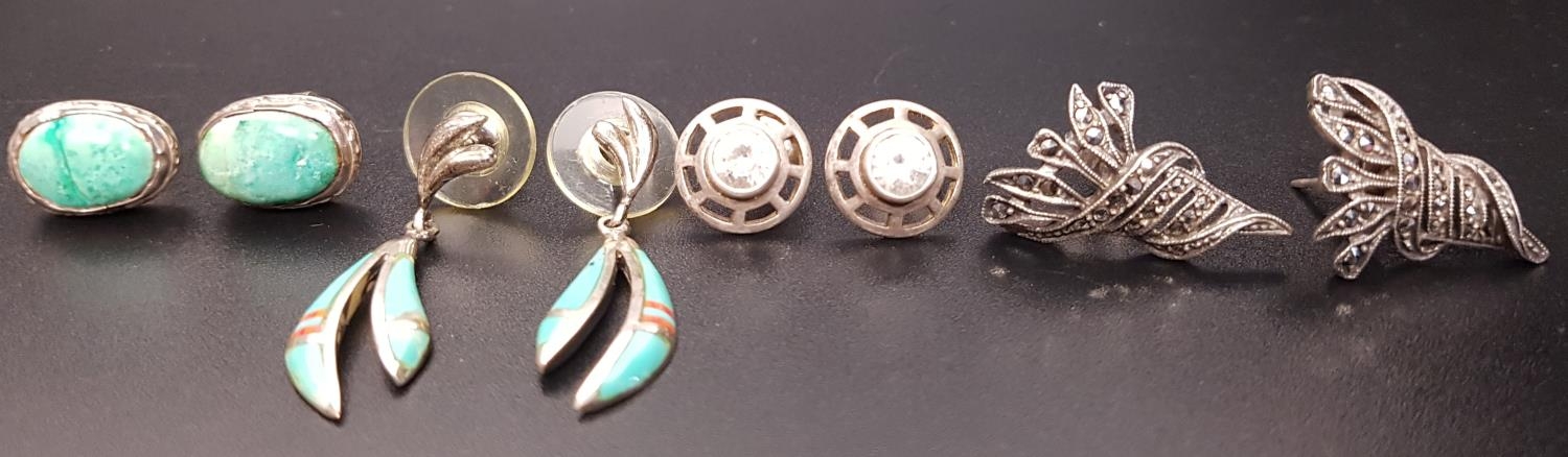 of various designs including turquoise, marcasite and stone set (4 pairs)
