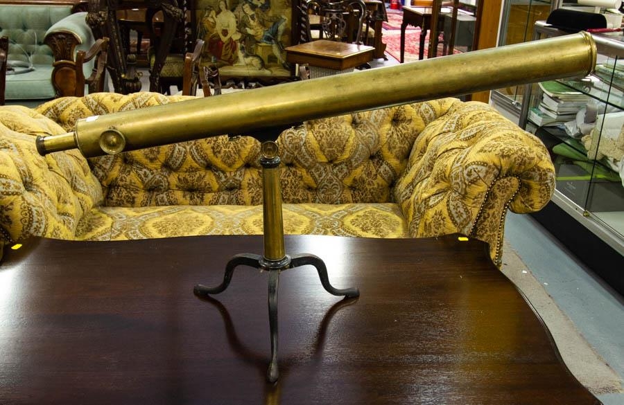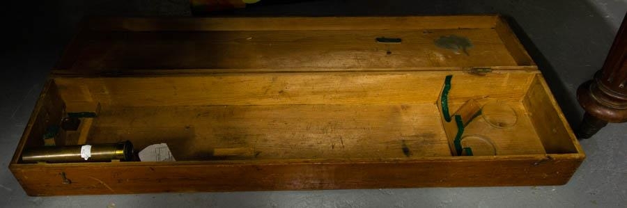 CHARLES W. PRICE BRASS TELESCOPE ON STAND WITH TIMBER CASE
