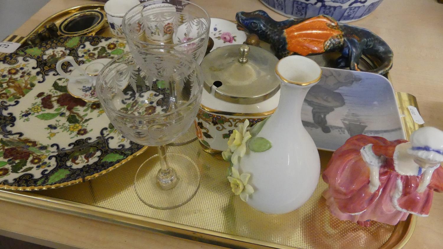 Tray Lot Doulton Figure, Copenhagen Dish etc
