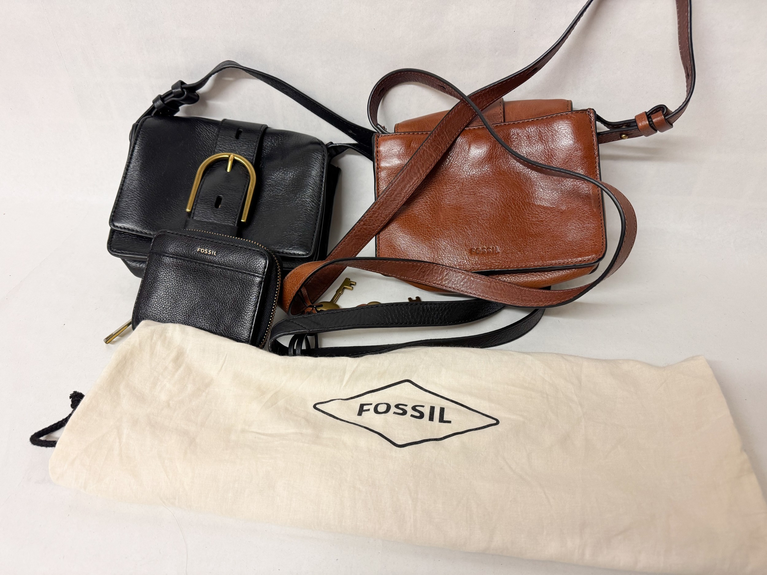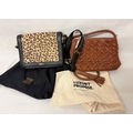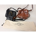 Biba - A tan leather plaited bag and a leopard skin effect handbag together with two Fossil handbags and a Fossil wallet