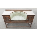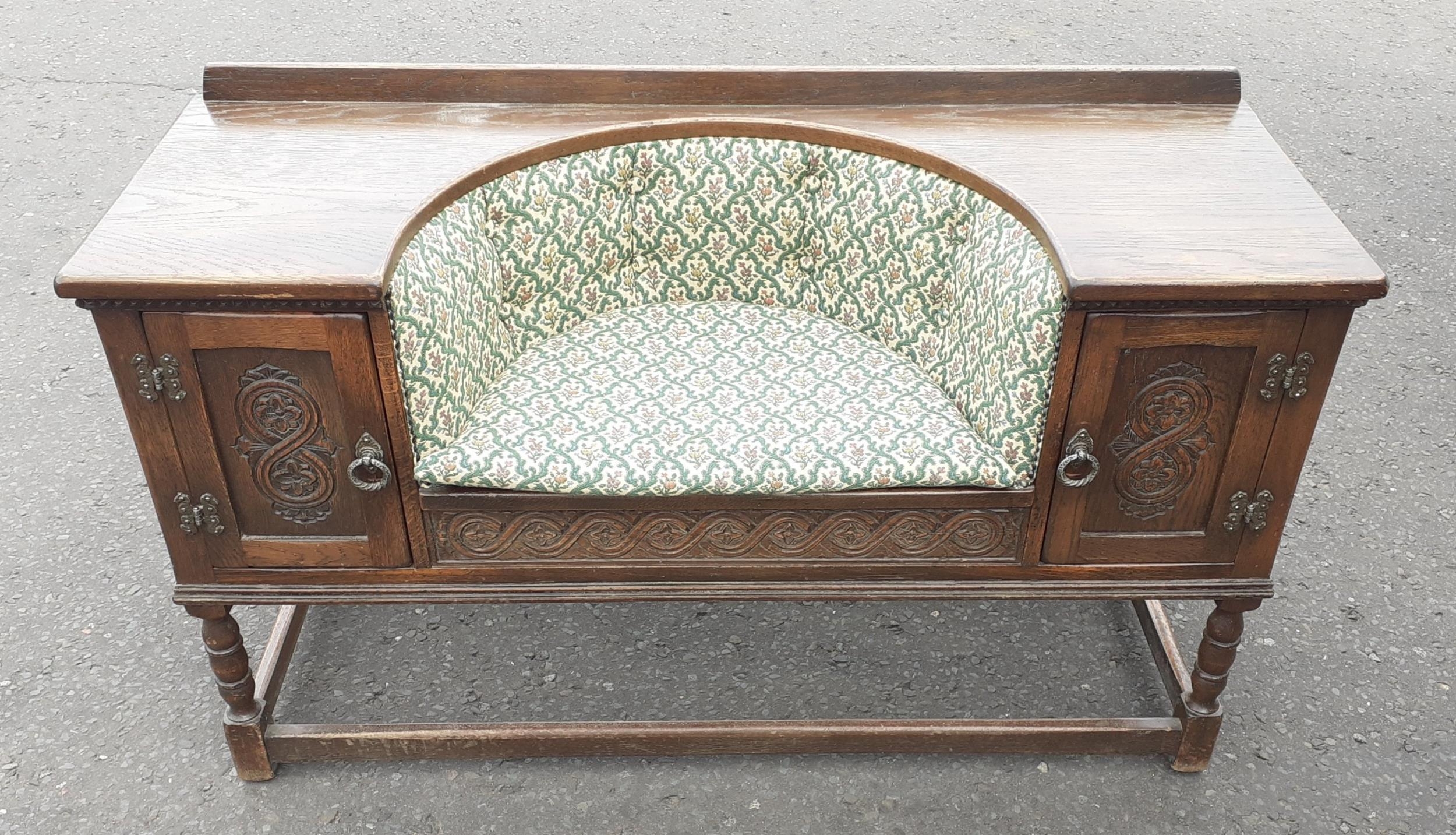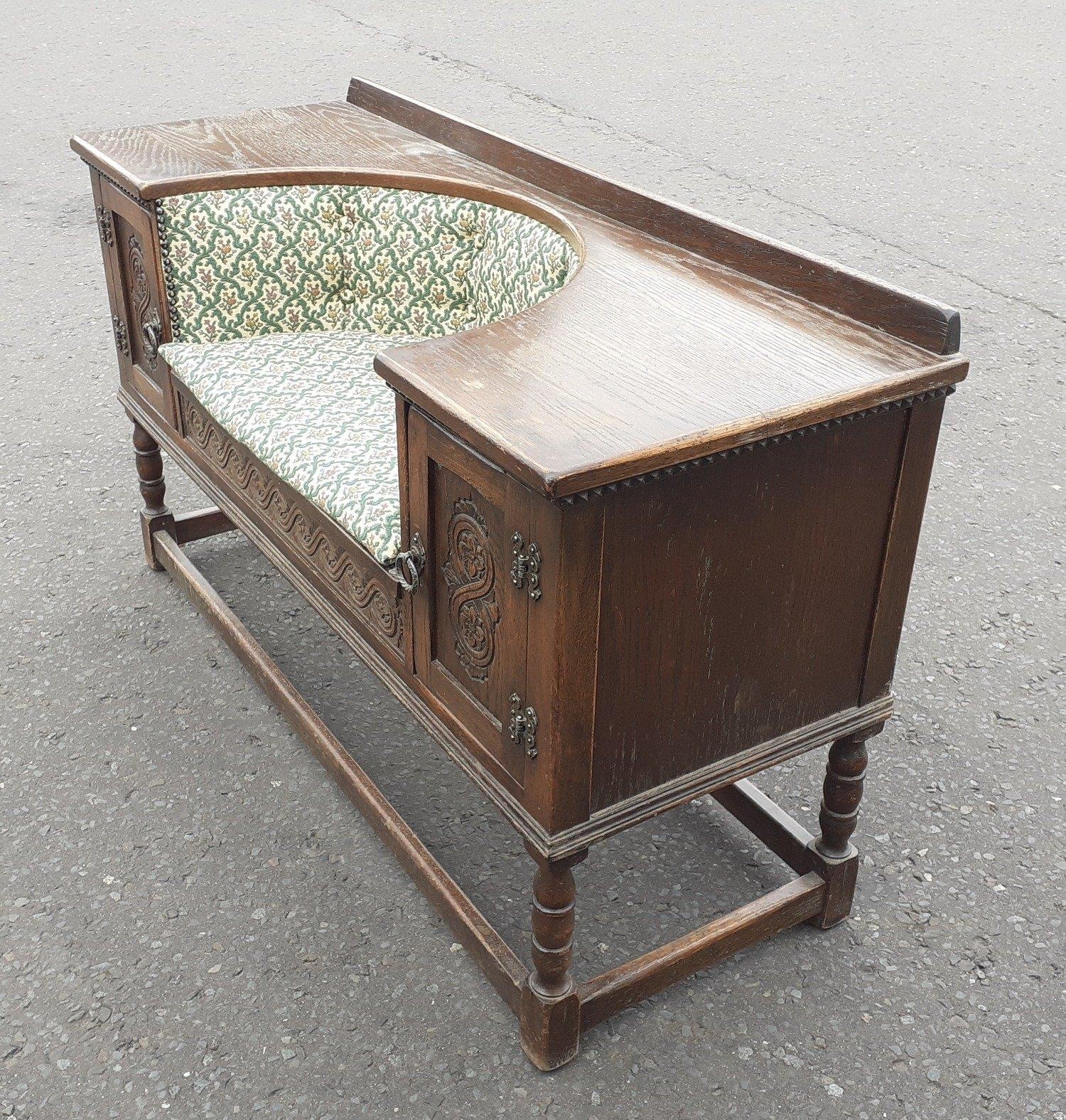 A Demi Lune recessed charm seat with cupboard to sides 117cm x 43cm x66cm approx. In good clean useable condition.
