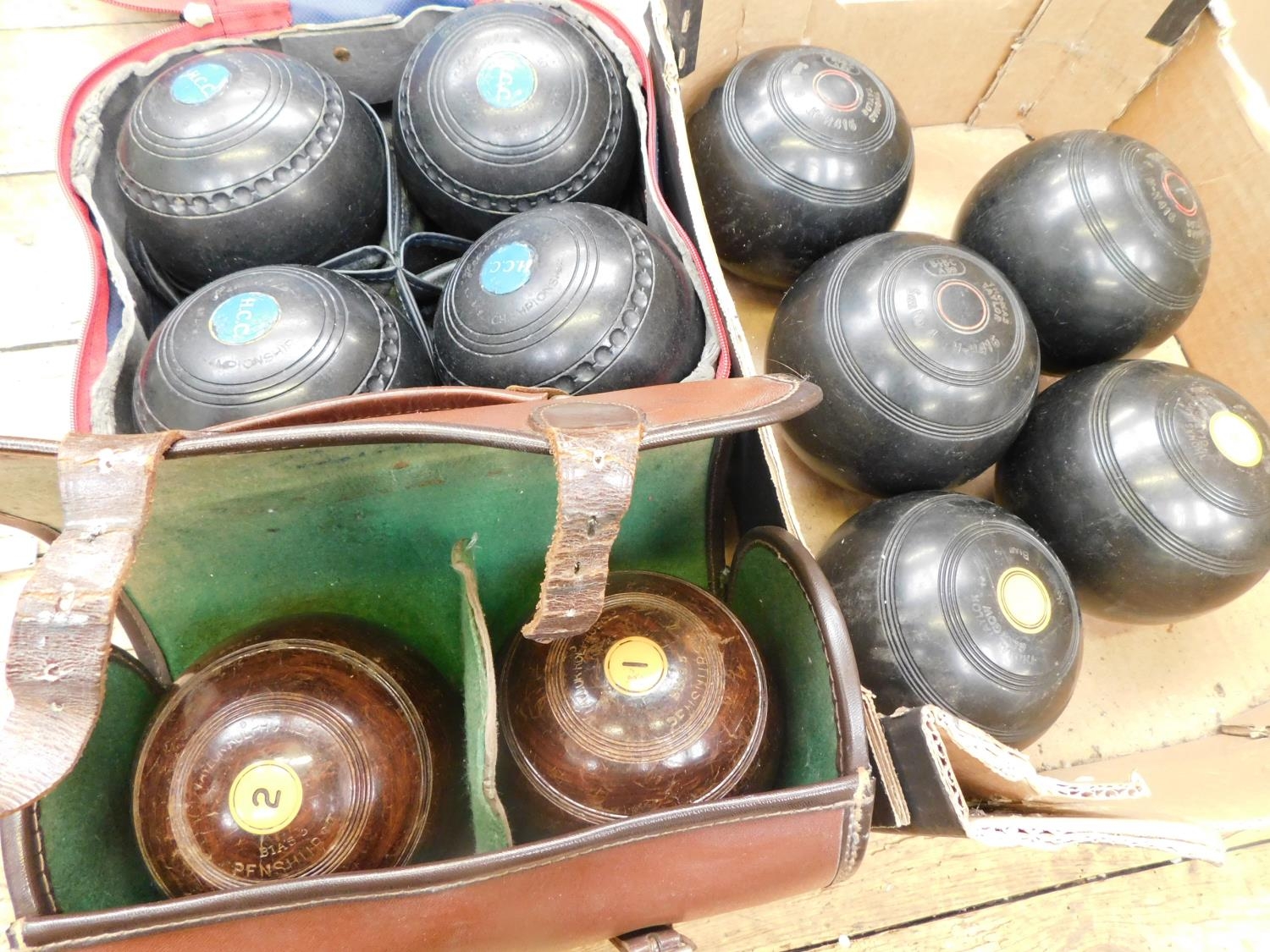 Collection of Crown green bowling bowls – including sets