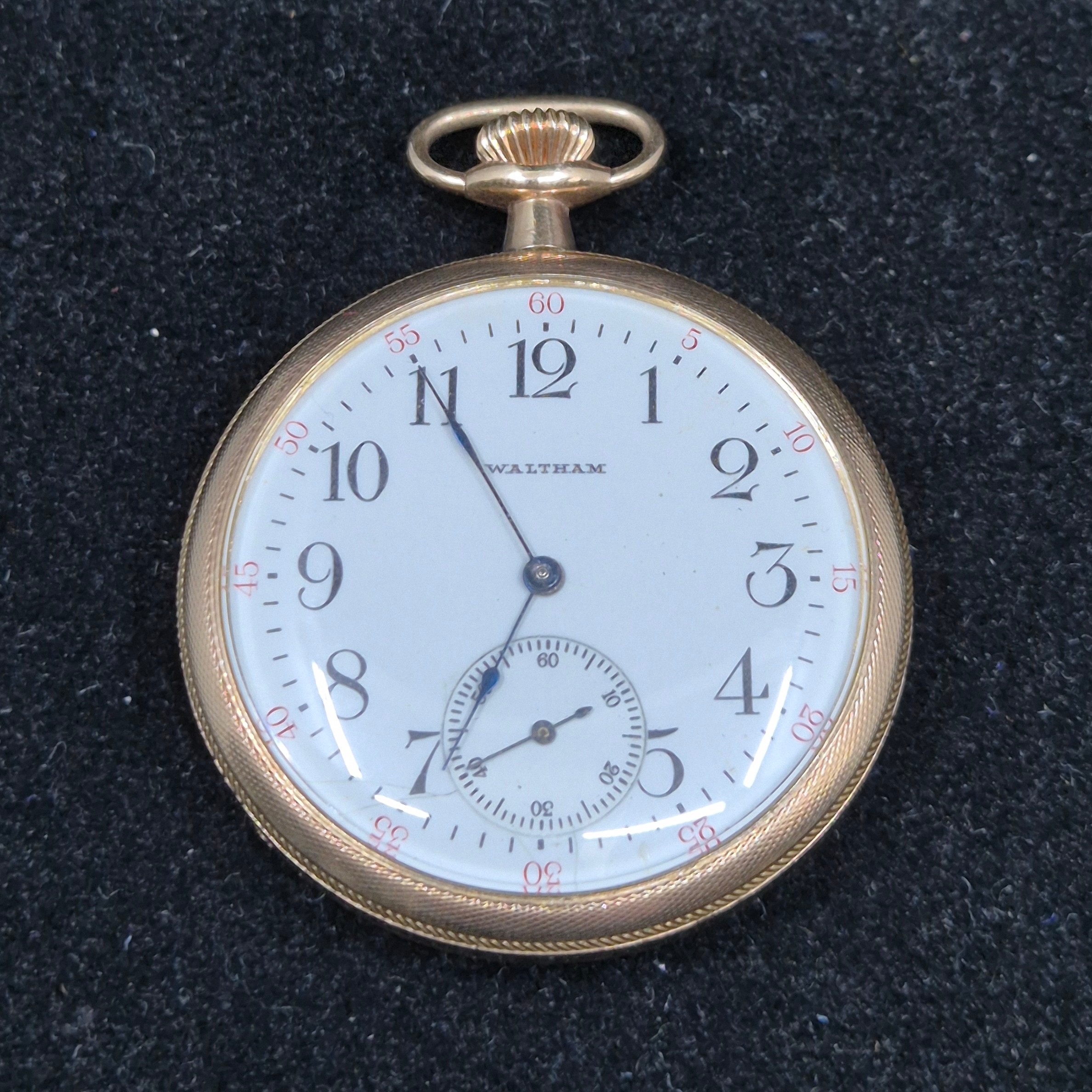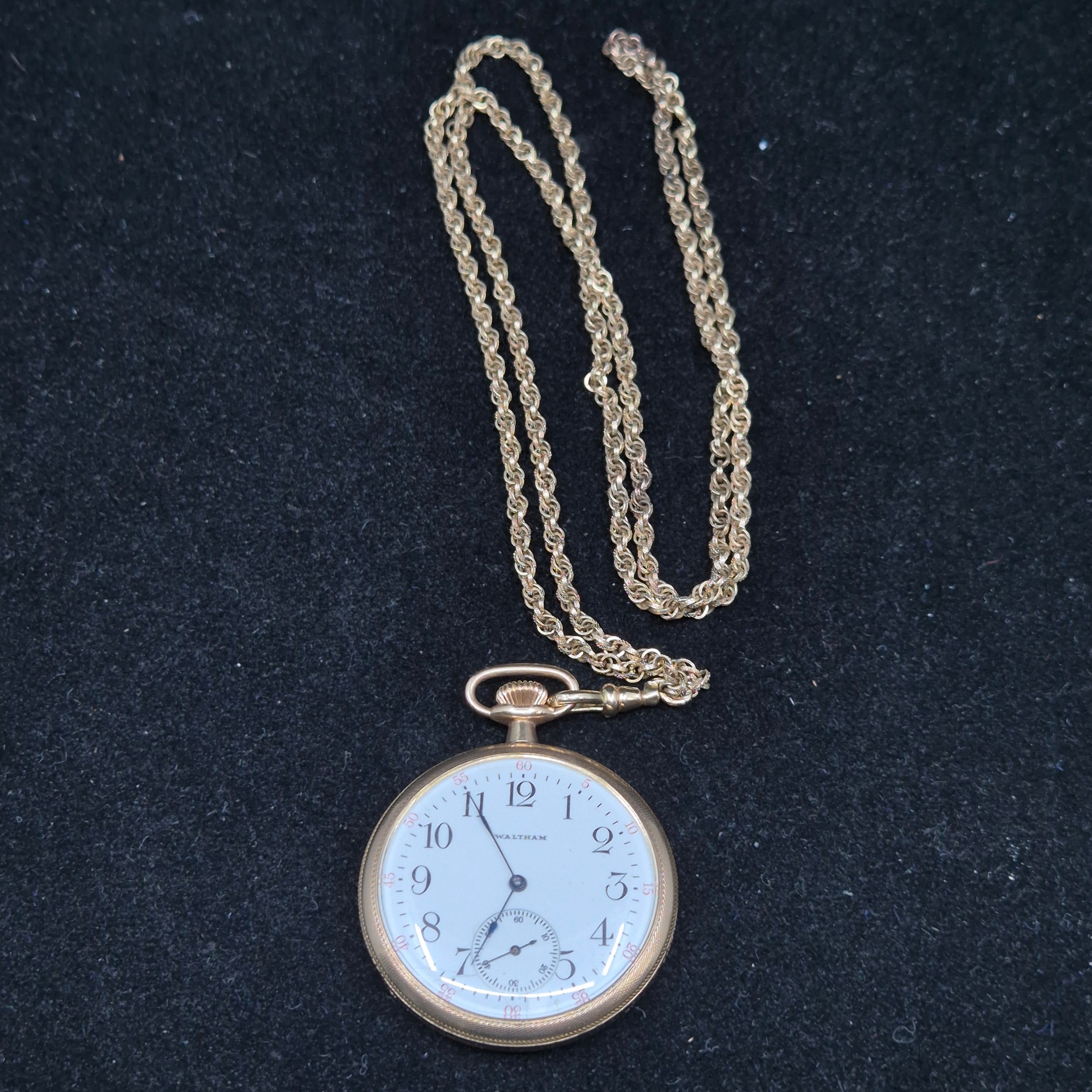 An early 1900s Waltham Bond Street Gold Filled Pocket Watch with Rolled Gold Chain