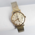 A 9ct cased Rotary automatic wristwatch, the circular silver coloured dial with baton markers and date aperture to 3 o'clock, set to plain polished case, stamped to exterior, 3.5cm wide (including crown) upon associated expanding strap, gross weight 59gms (including movement and bracelet)