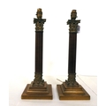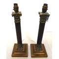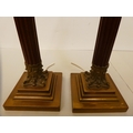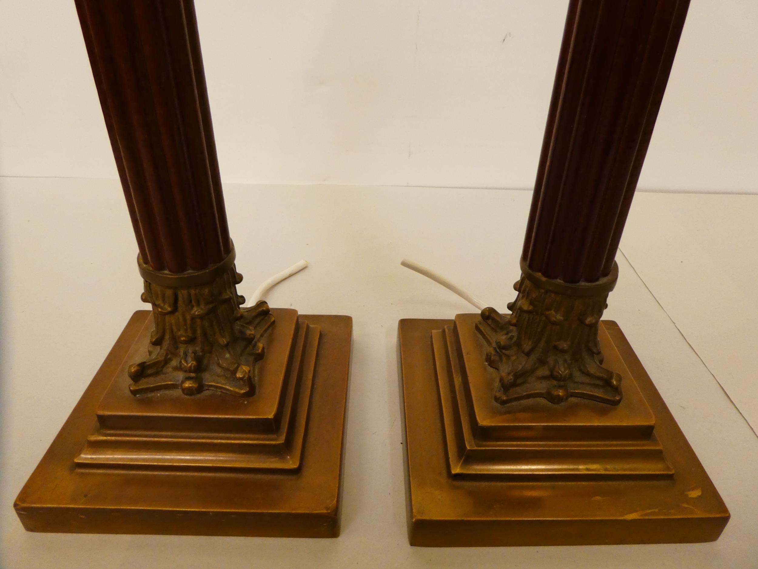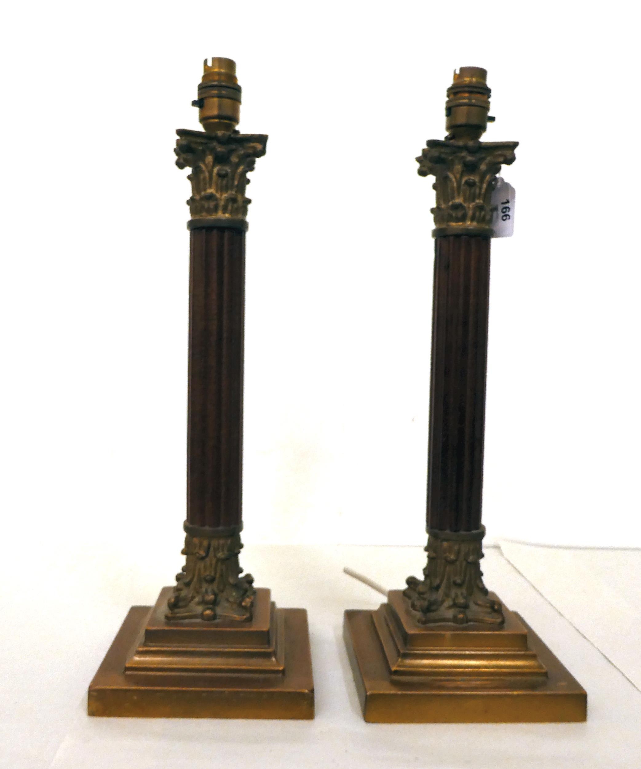 A pair of wooden and brass Corinthian column table lamps 18"h