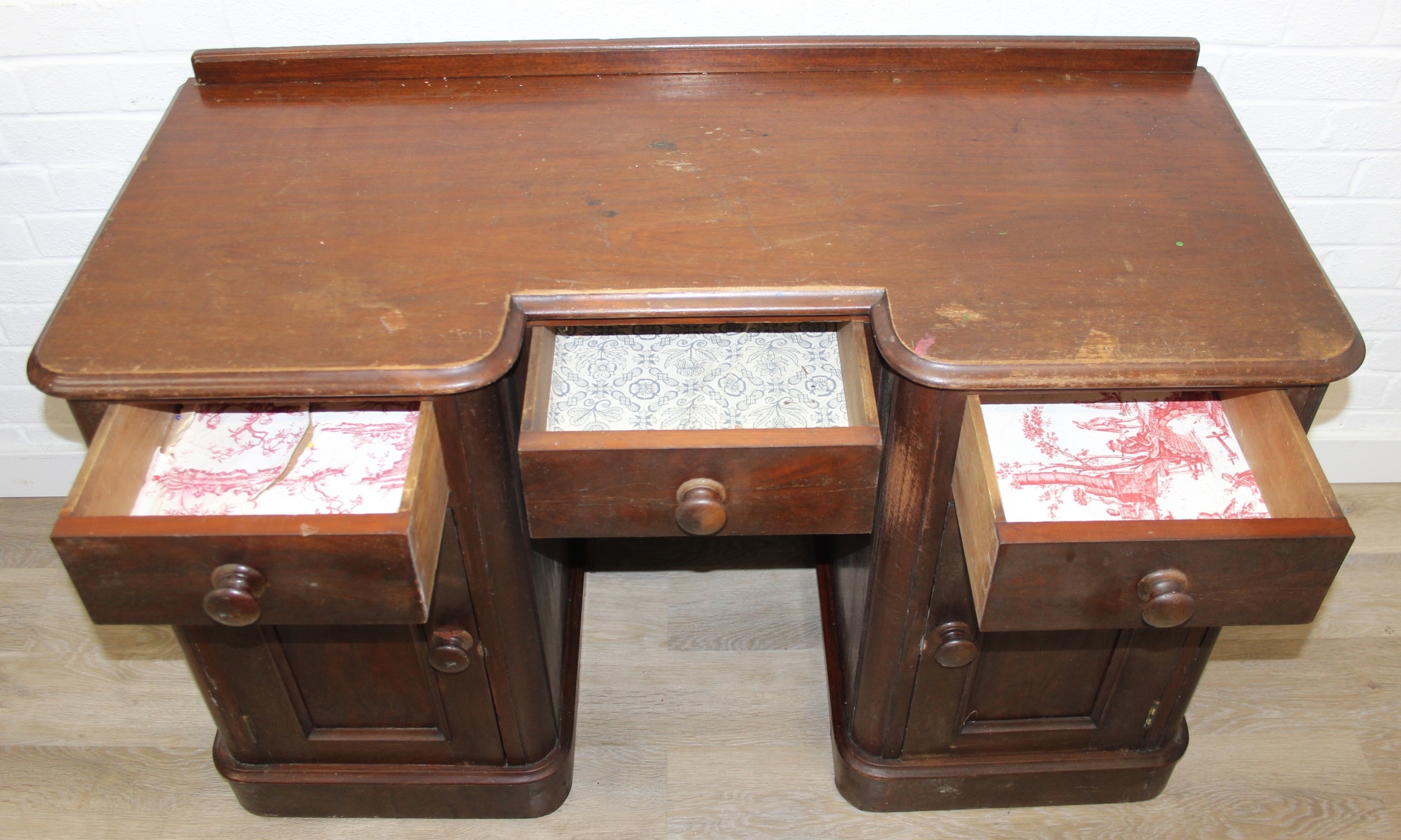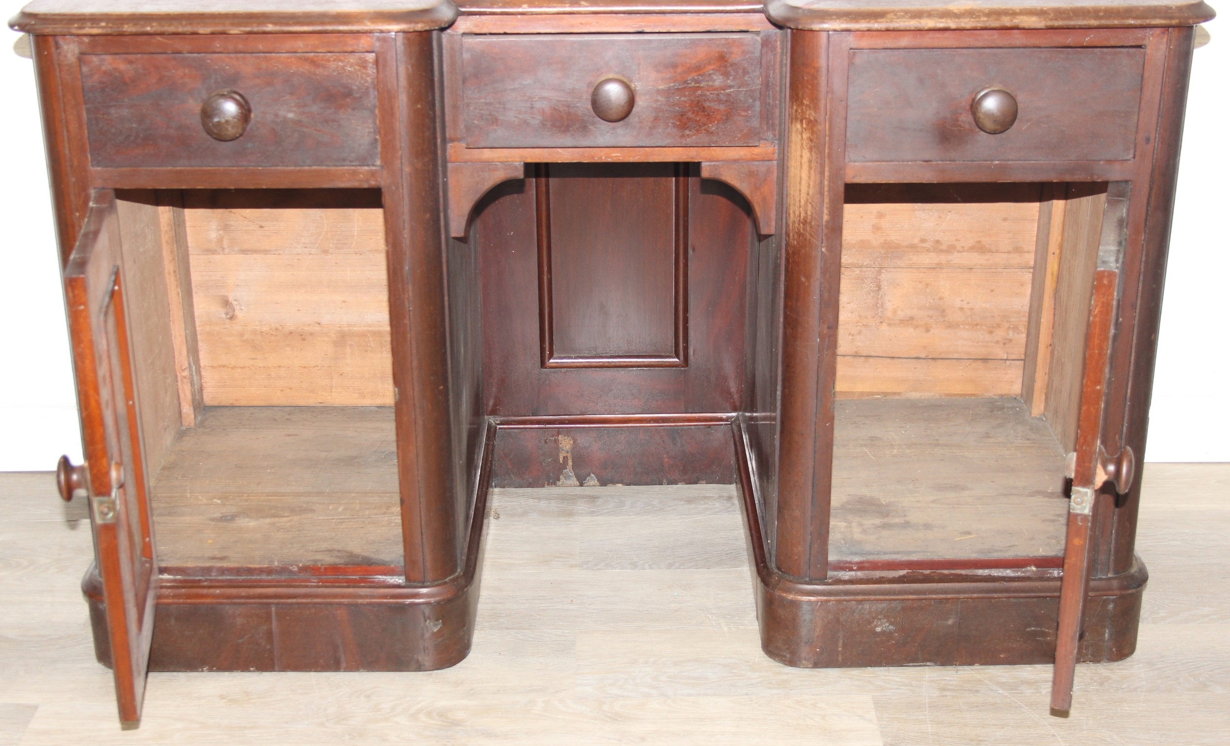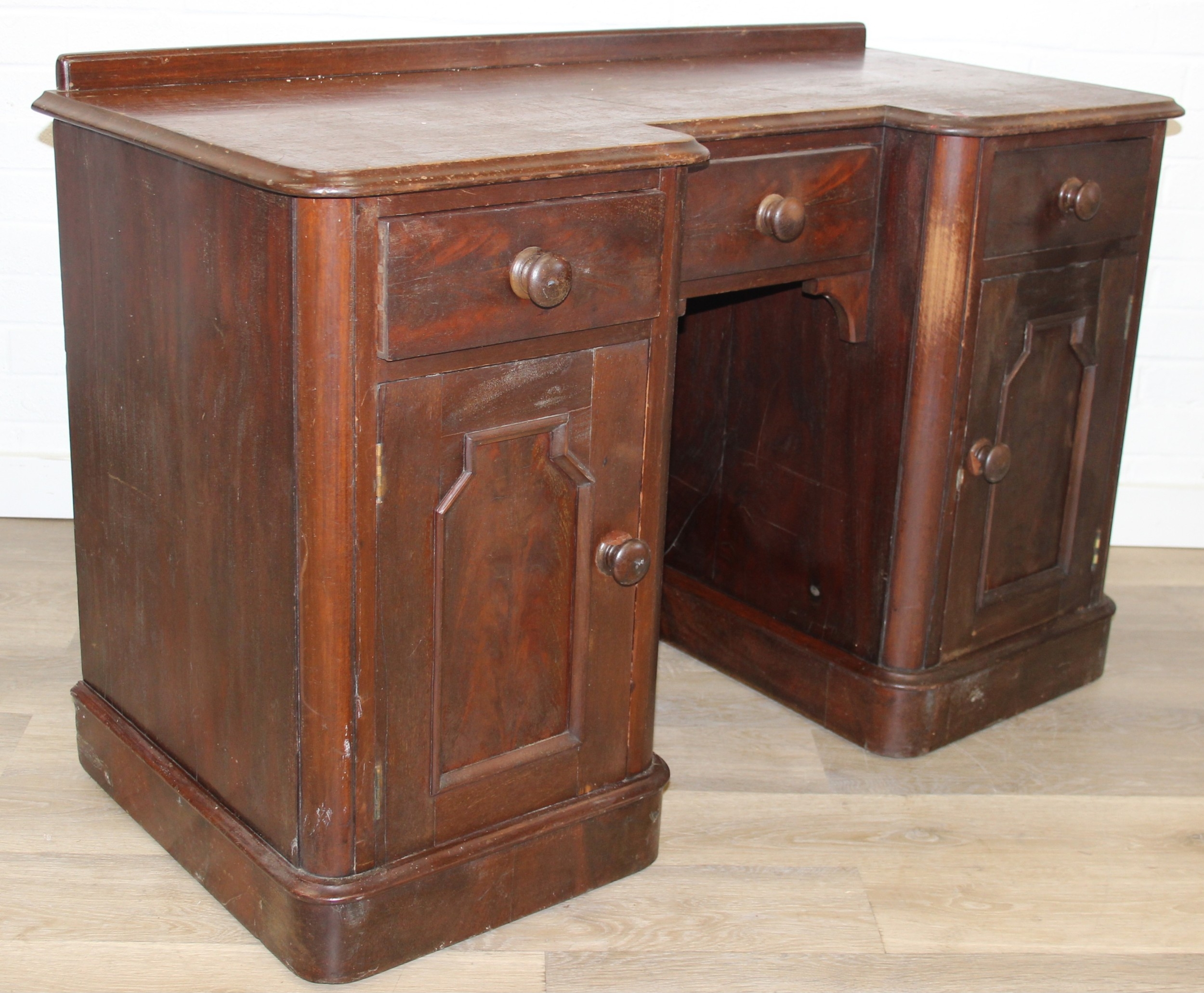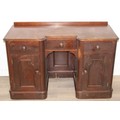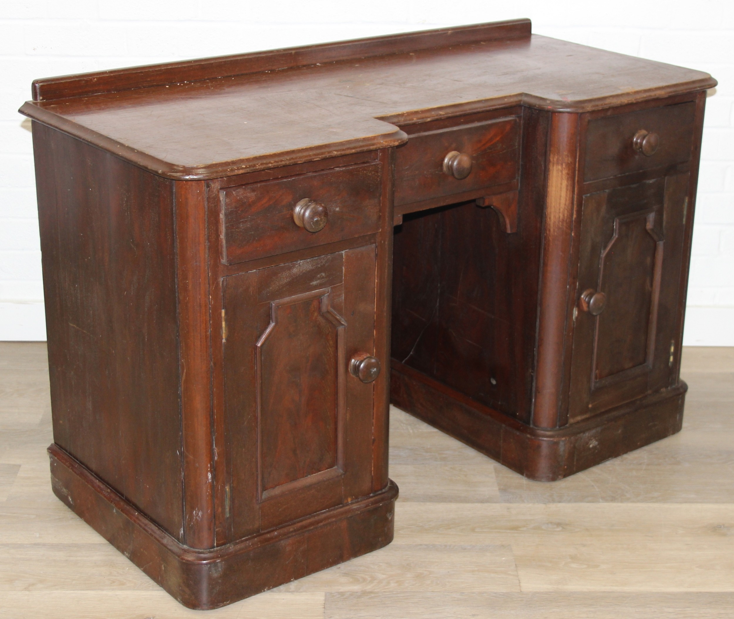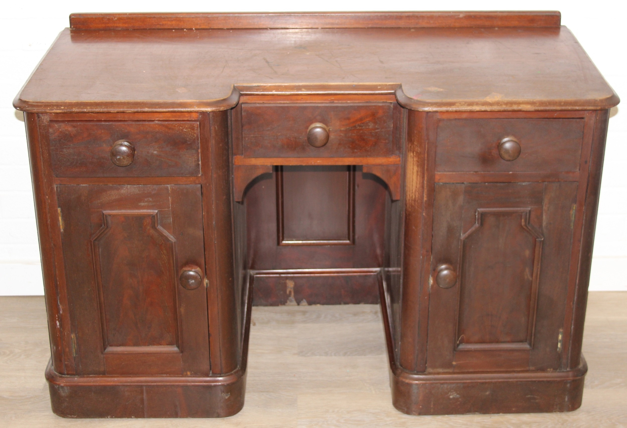 A 19th century mahogany desk with three drawers and two cupboards, approx 120cm x 54cm x 74cm
