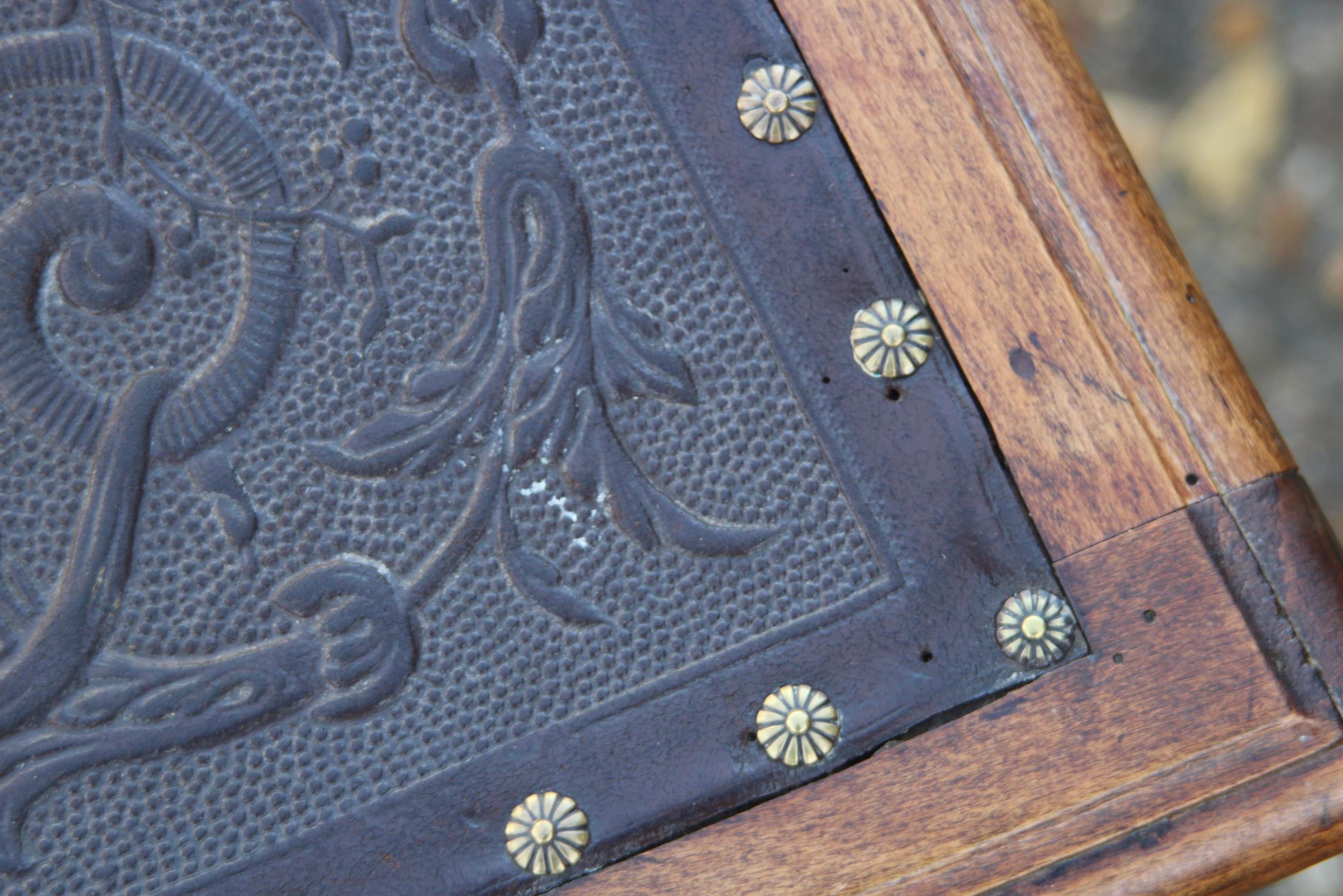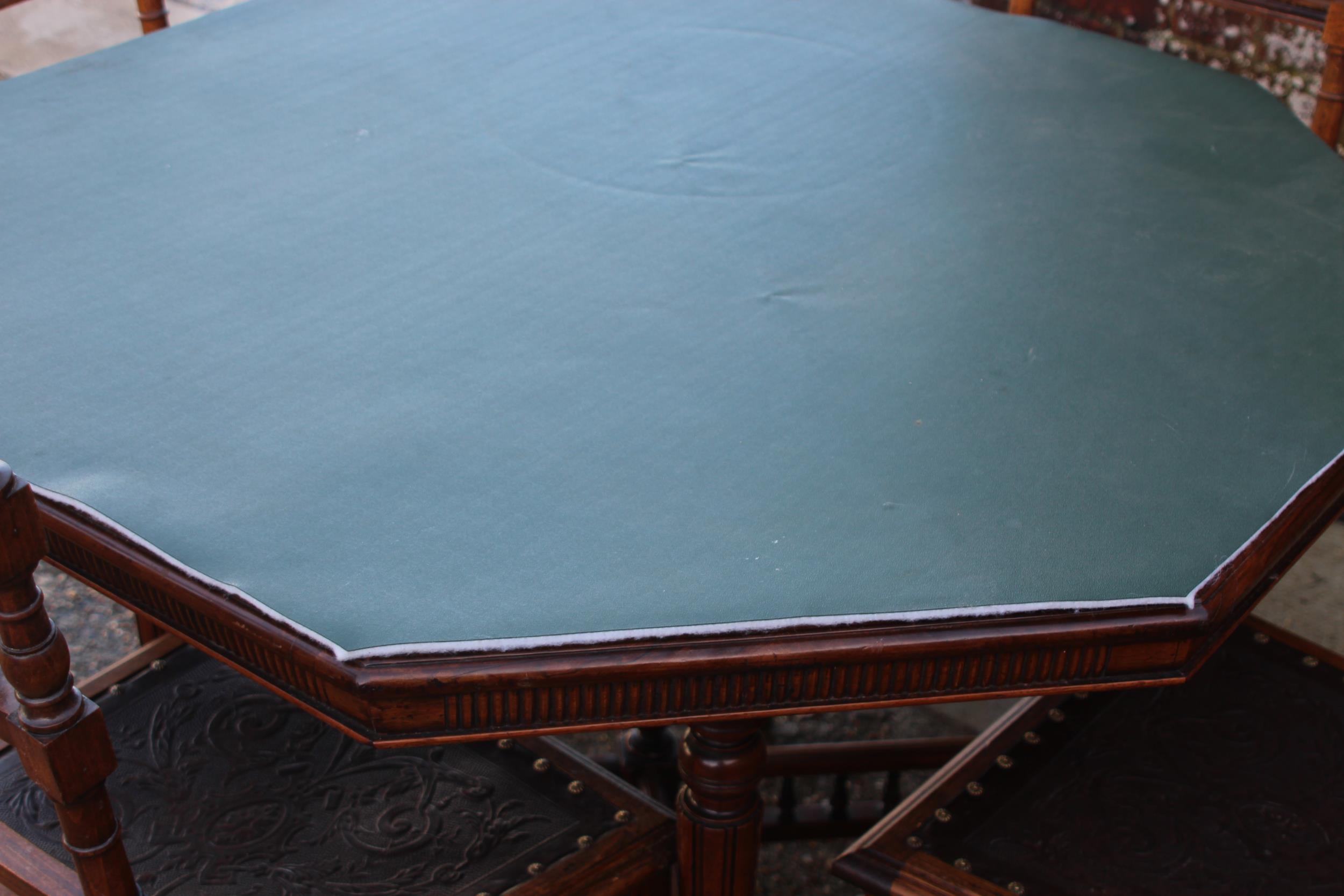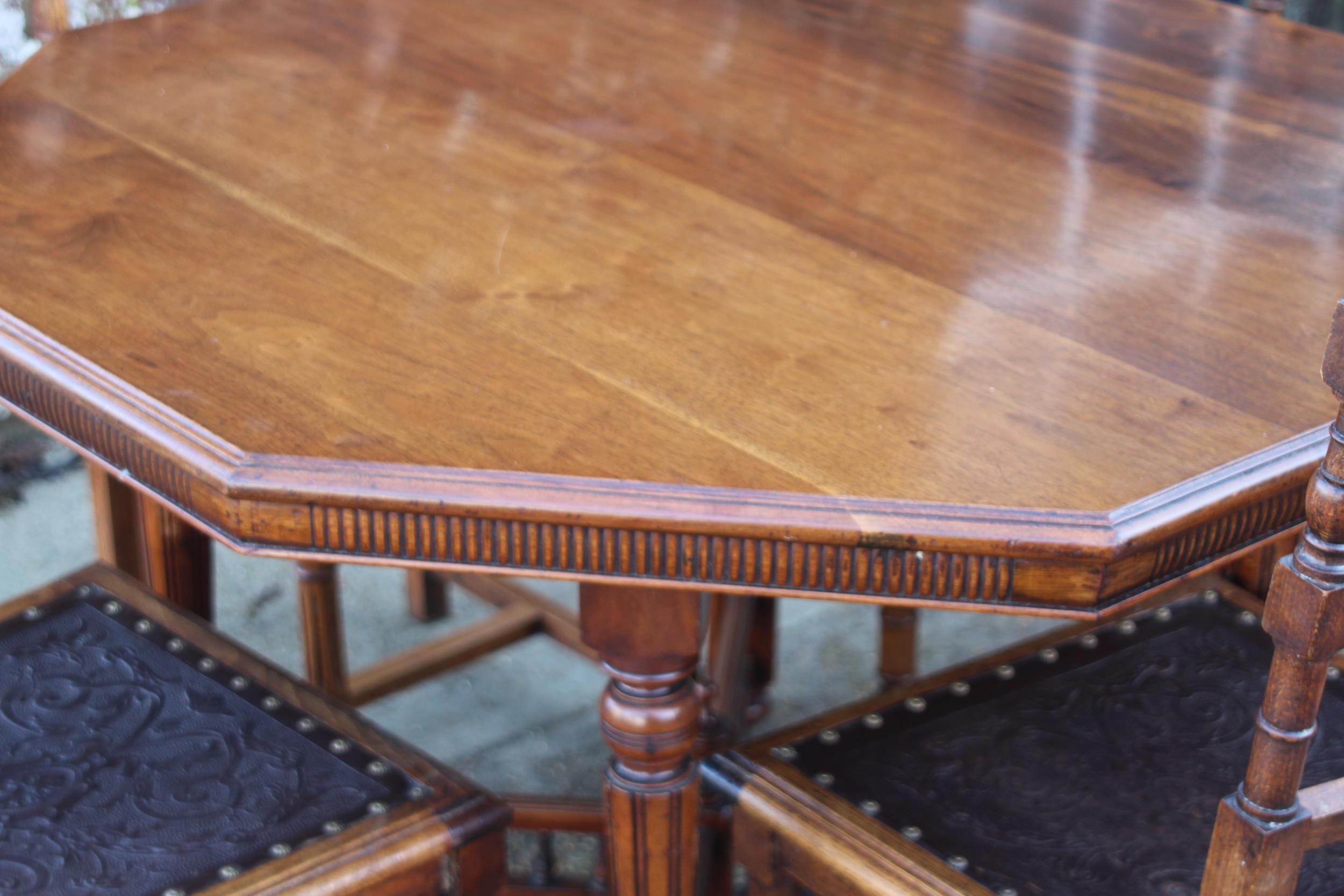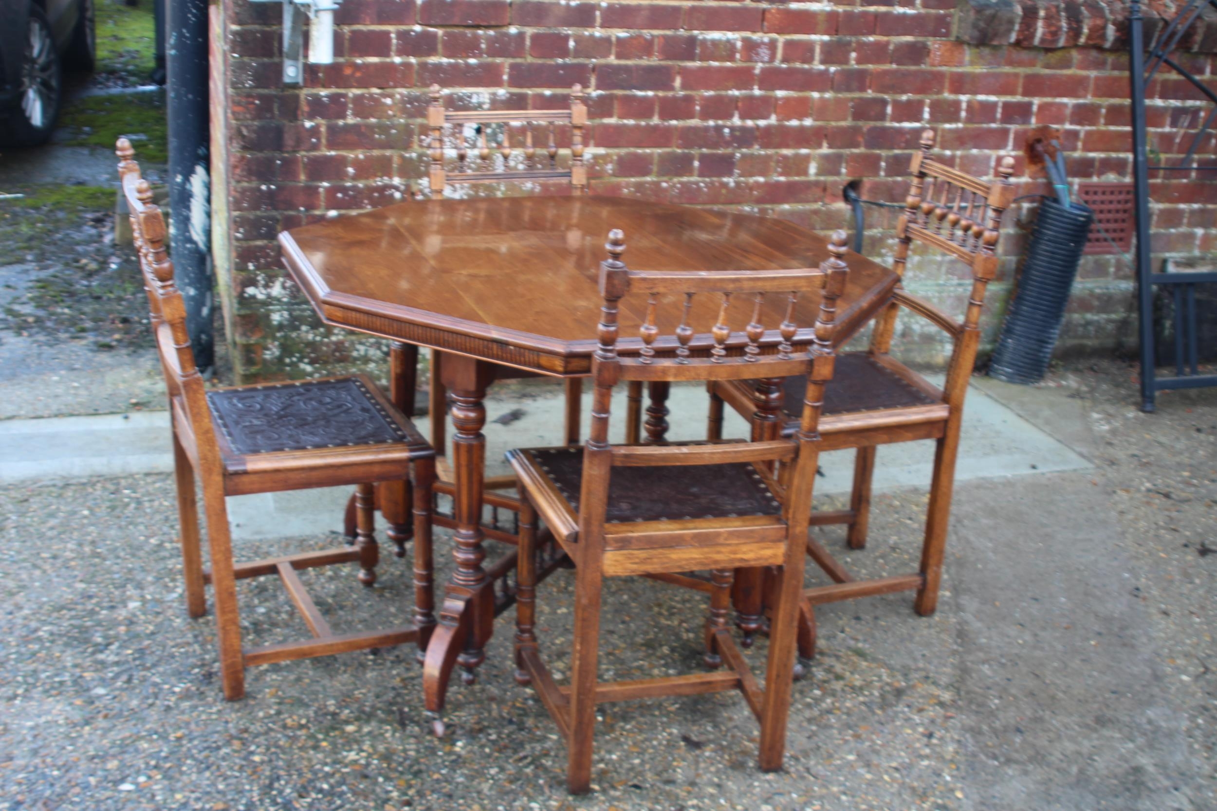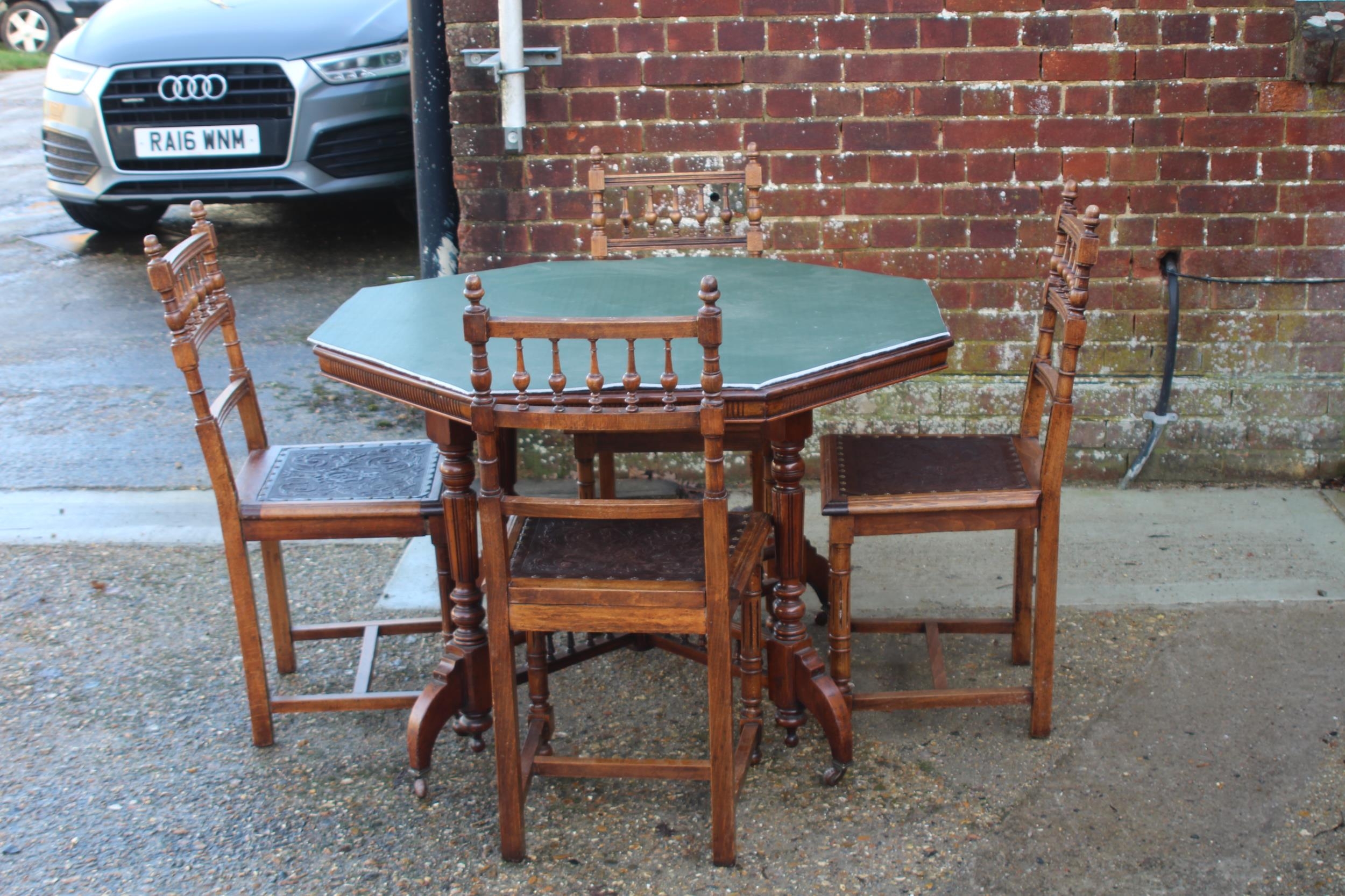 ANTIQUE TABLE AND FOUR CHAIRS 106 X 76CM