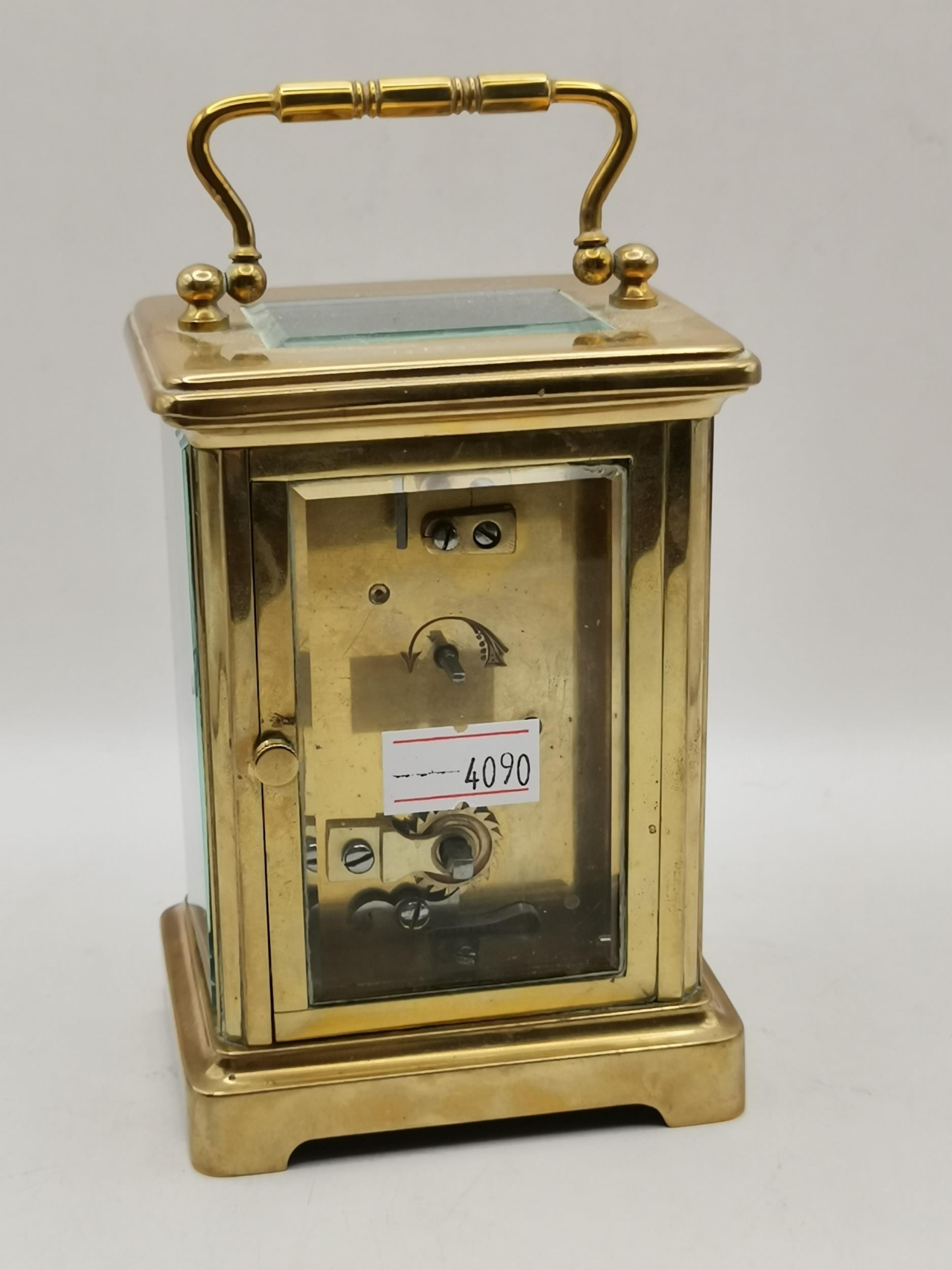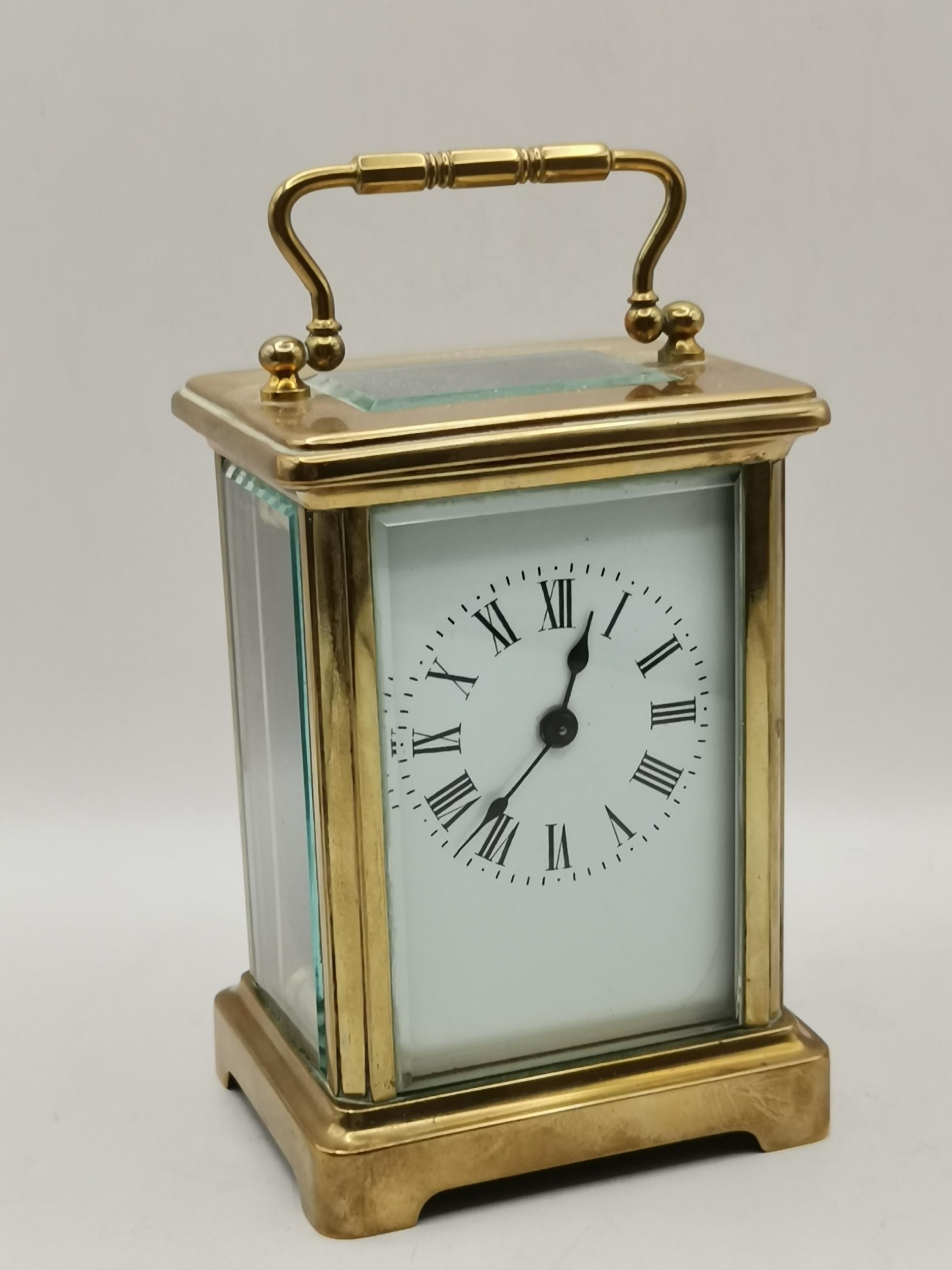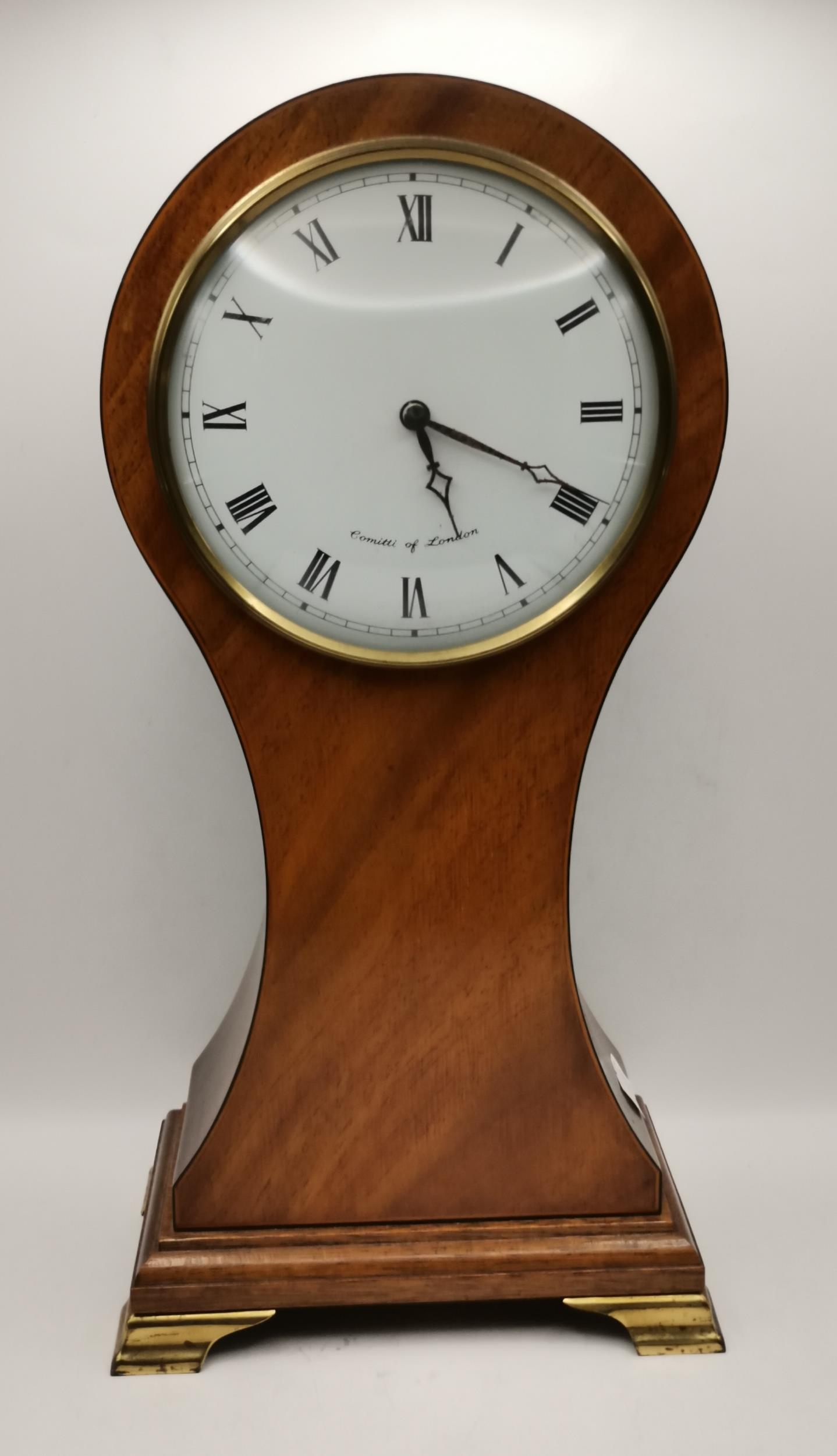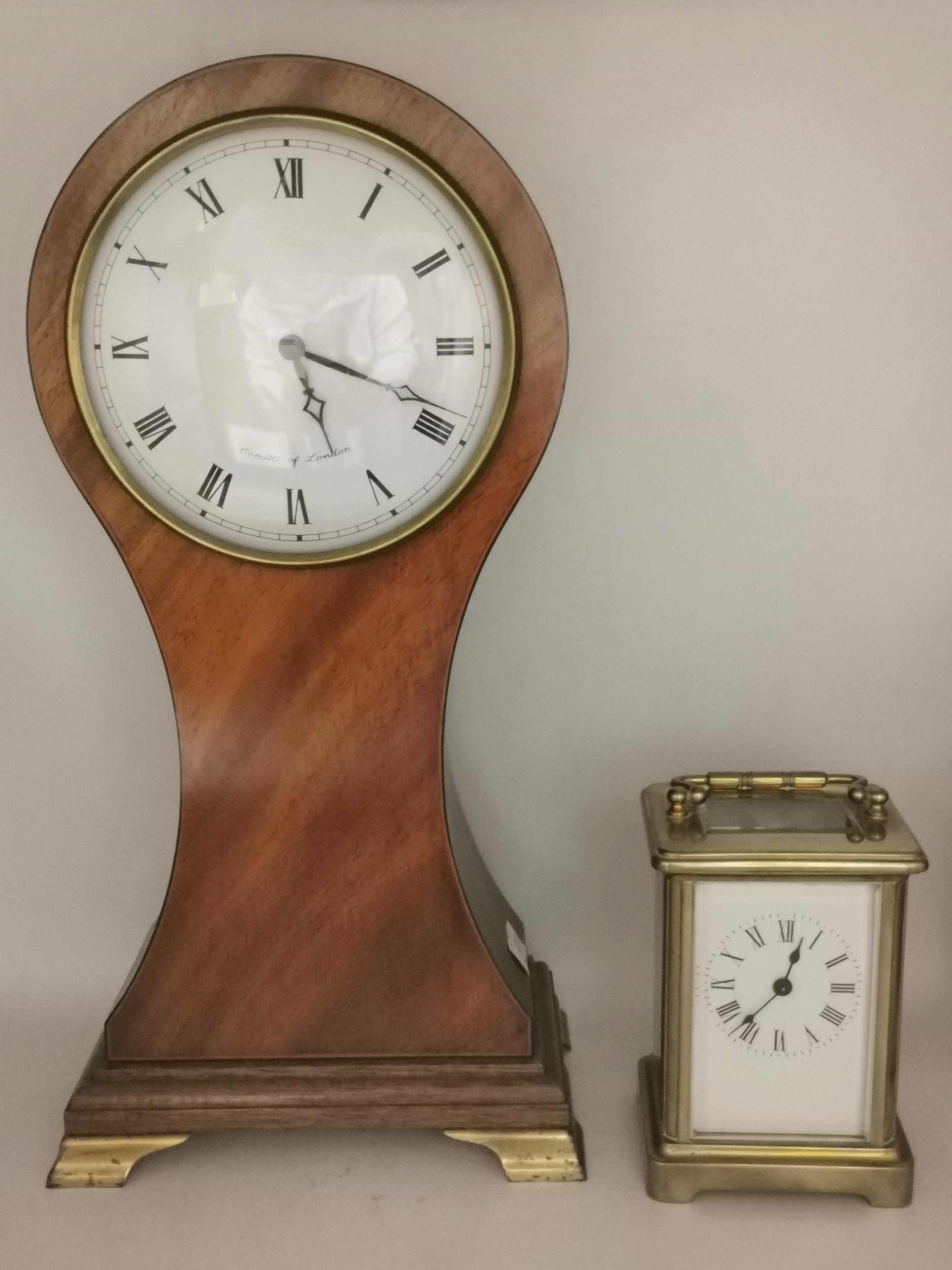 Comitti of London Mahogany Balloon Mantel Clock on brass feet plus Brass carriage clock