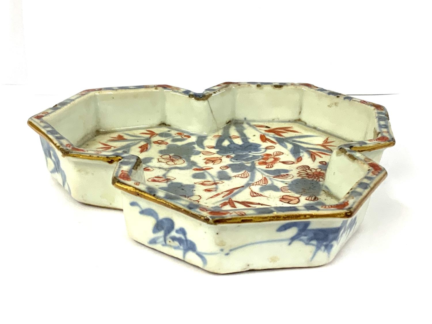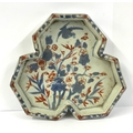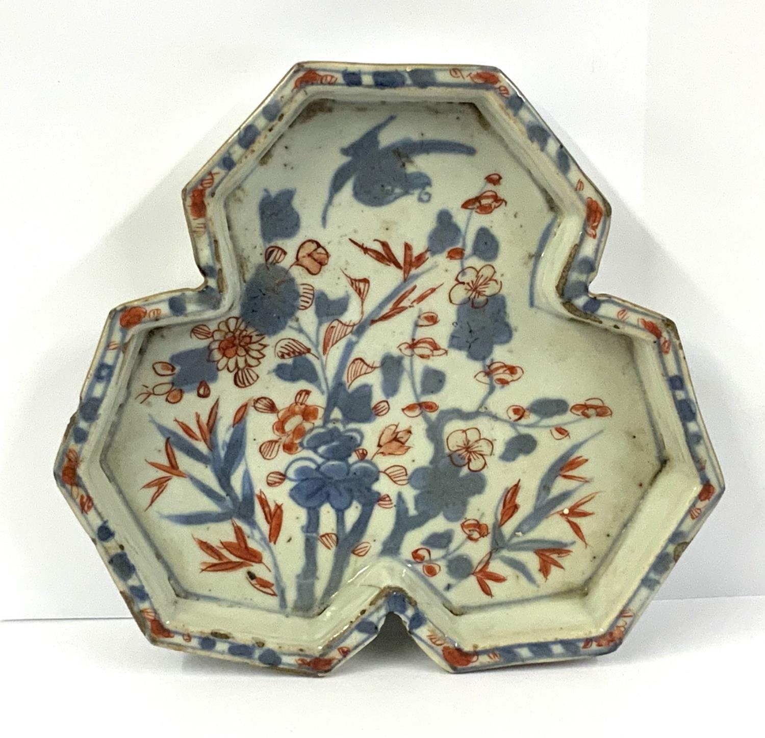 A small early Chinese Imari trefoil dish. 14.4cm. (Some chipping to rims and hairline).
