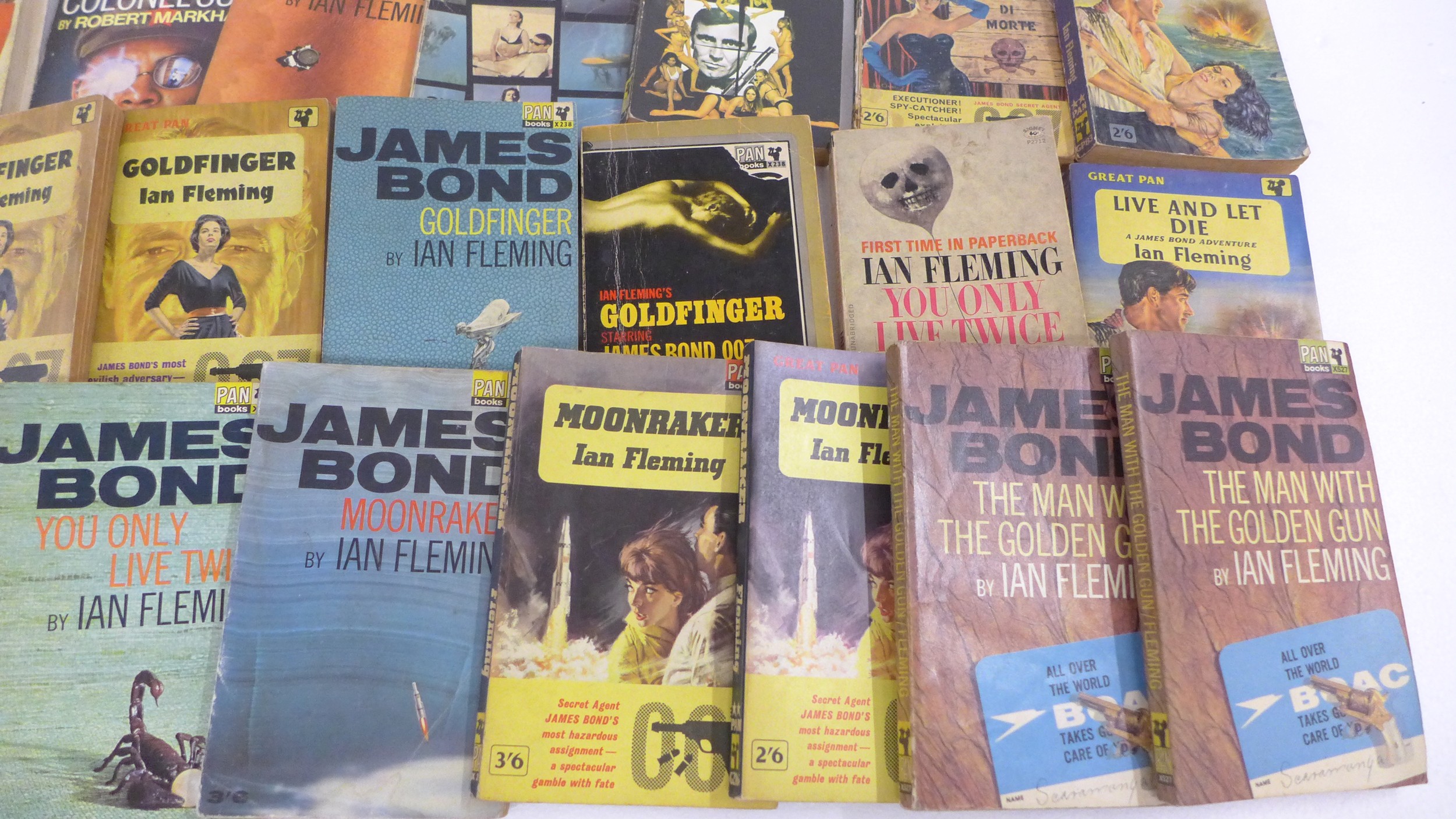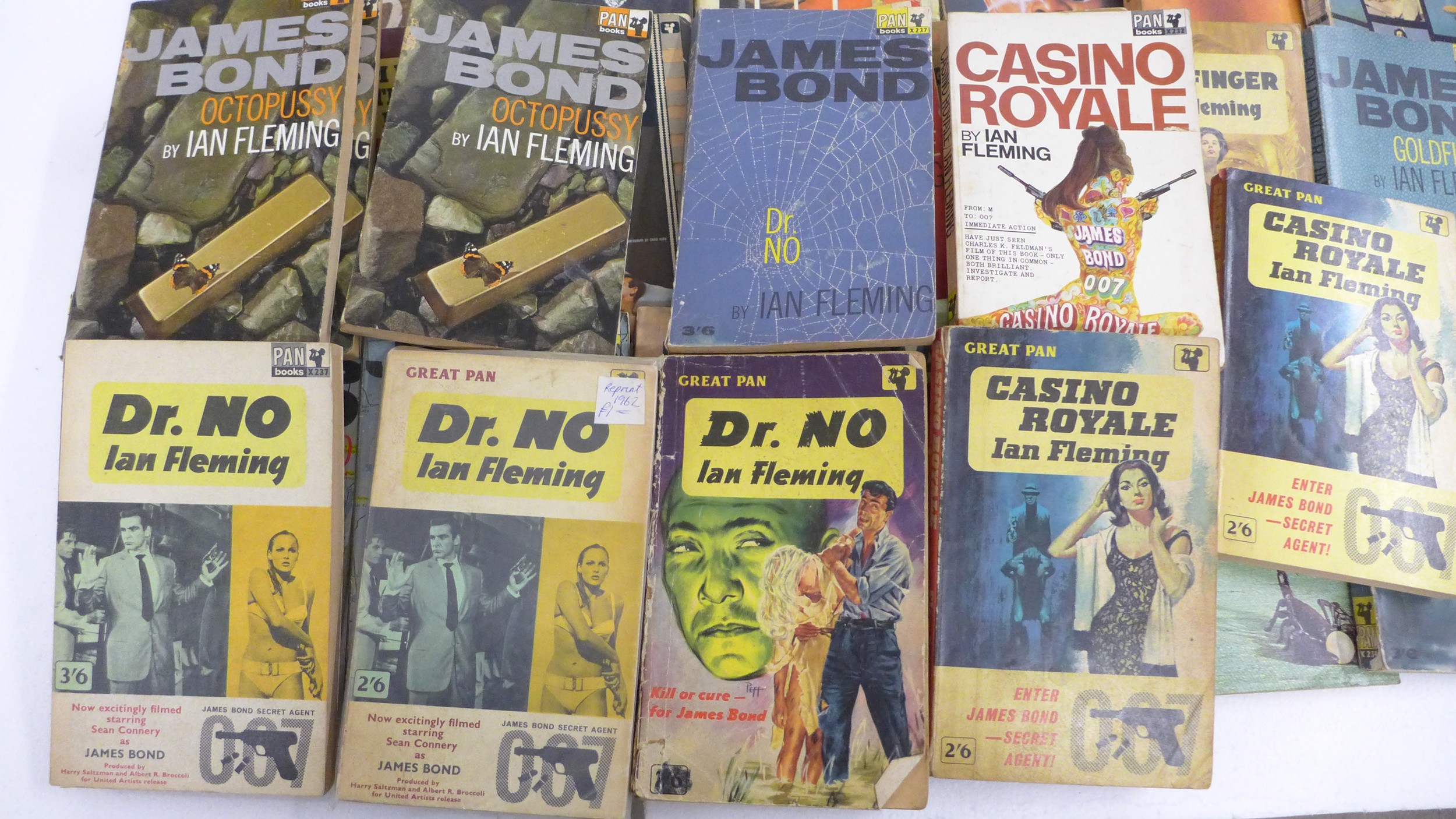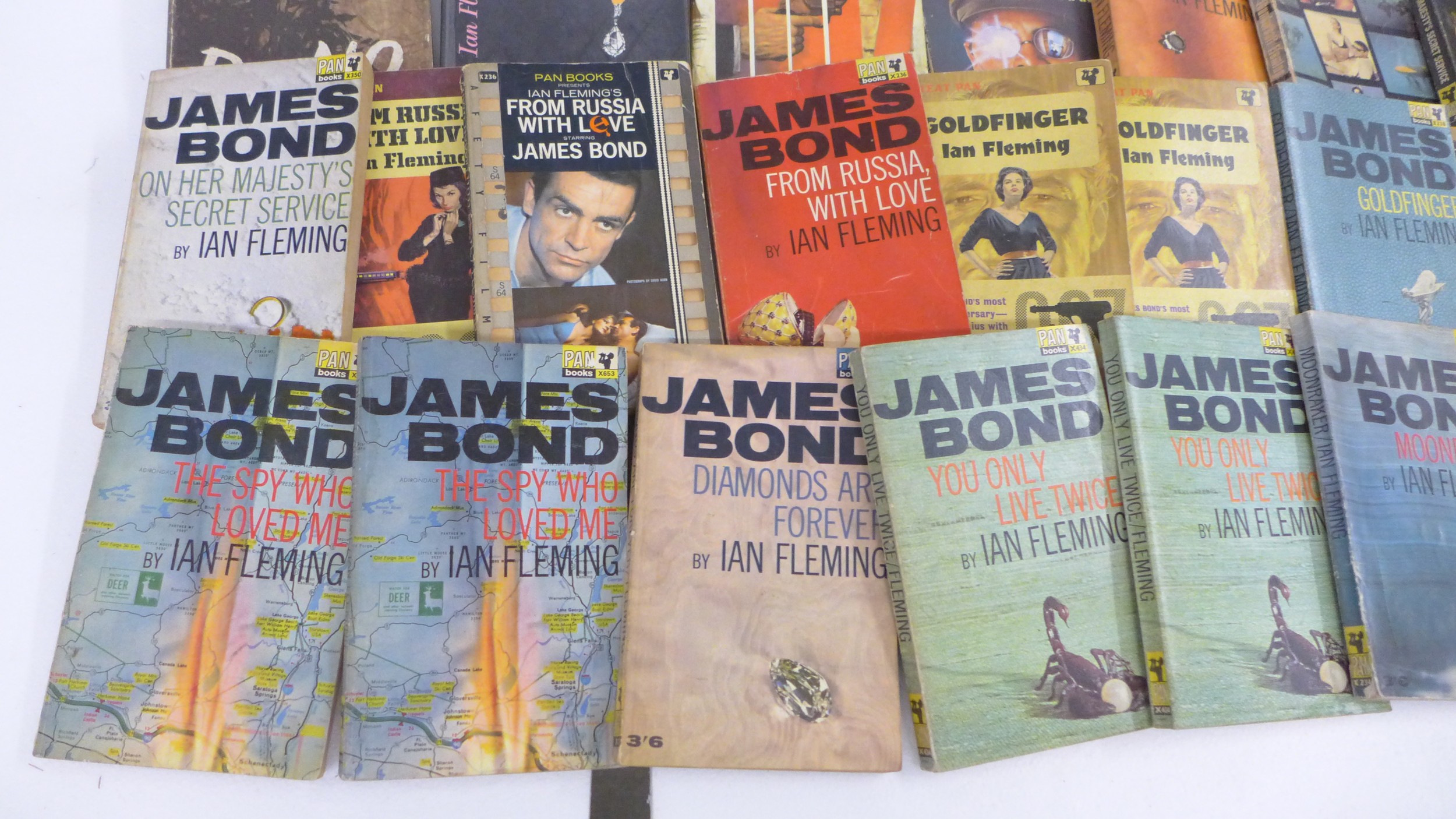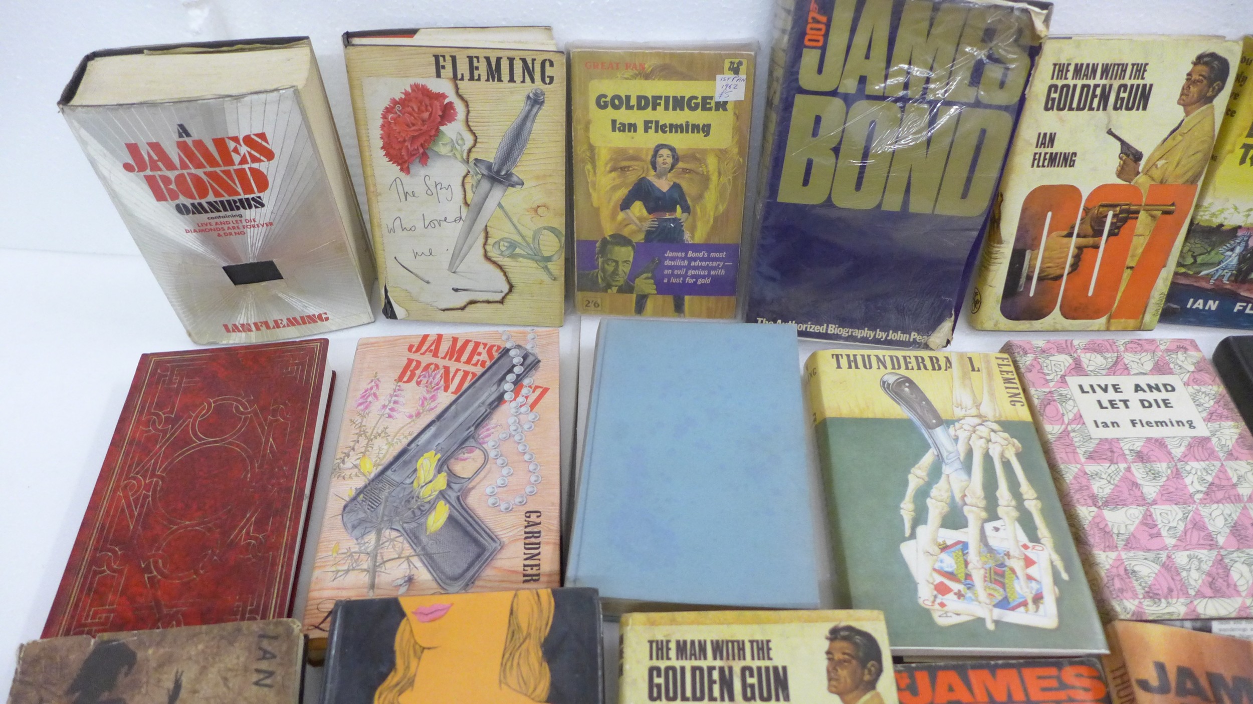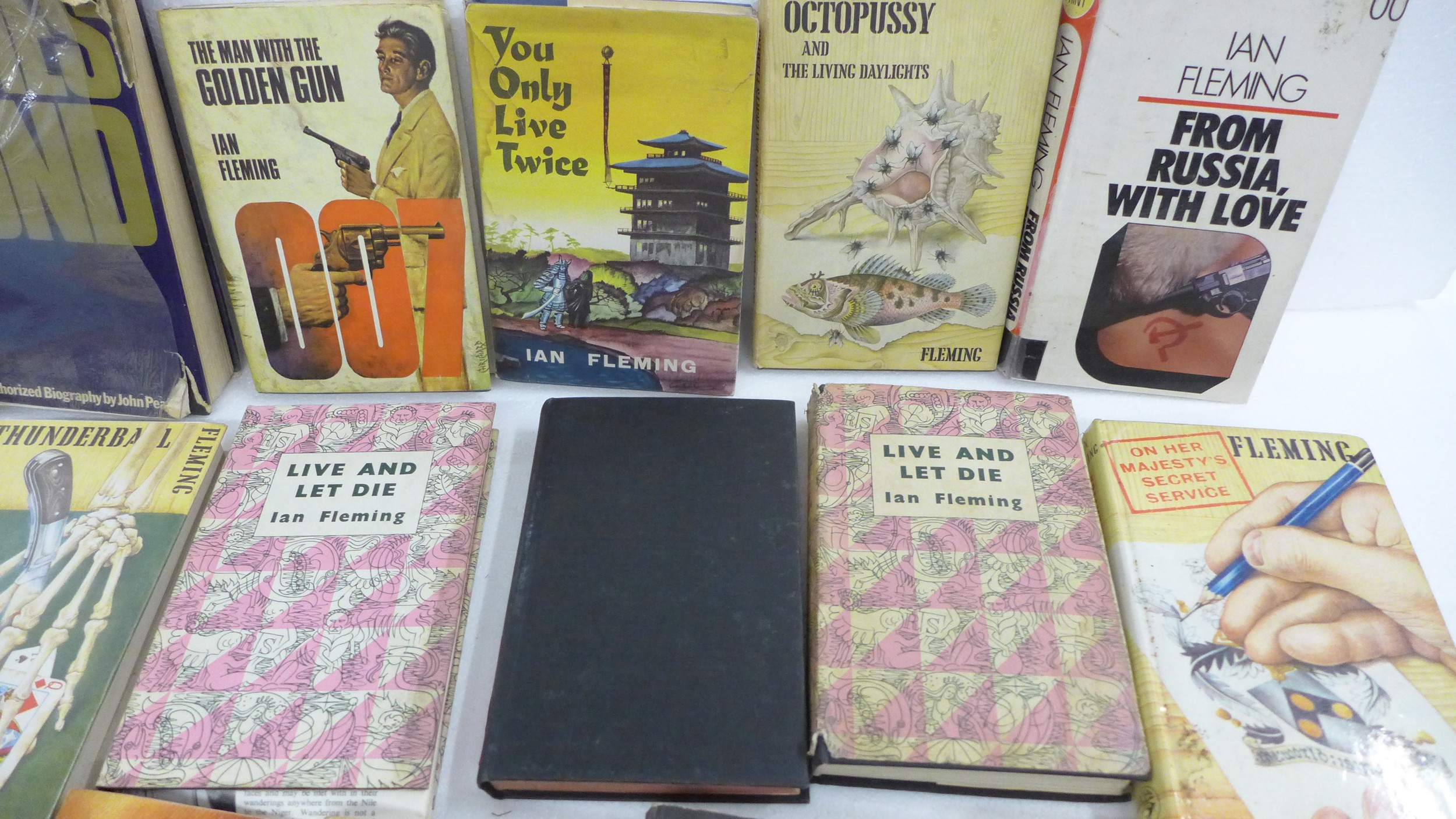 A collection of Ian Fleming James Bond novels, to include The Man With The Golden Gun and You Only Live Twice both editions issued by The Book Club, Dr No and Octopussy published by Jonathan Cape later pressings, Live And Let Die by The Reprint Society, and many other examples