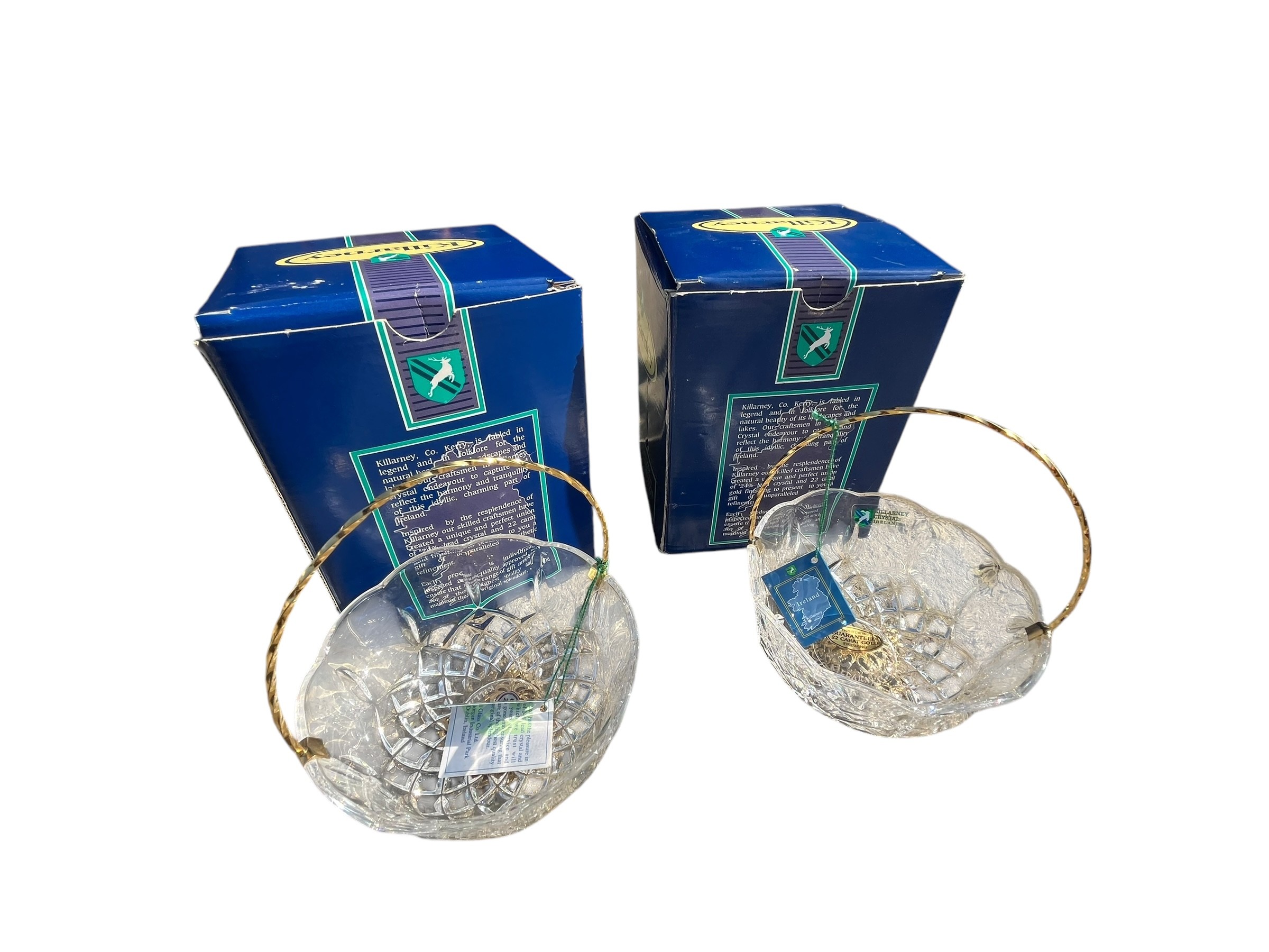 A PAIR OF BOXED KILLARNEY CRYSTAL BOWLS 5"dia